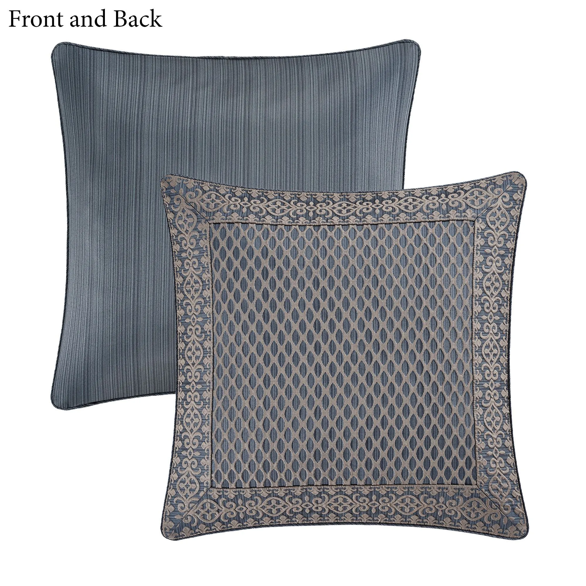 Piped European Sham has puff lattice framed with puff scrolls; zipper closure. Reverse is blue striae.