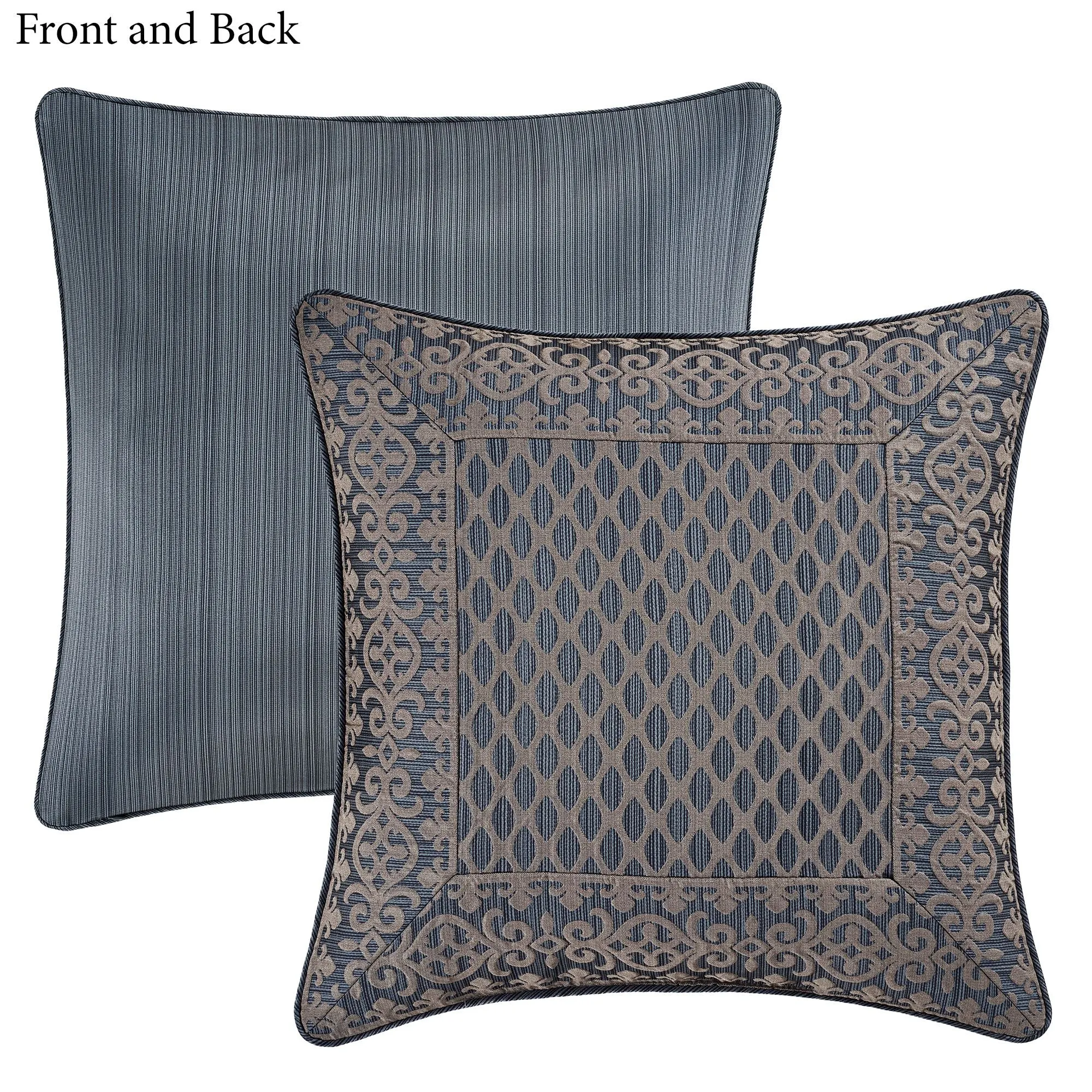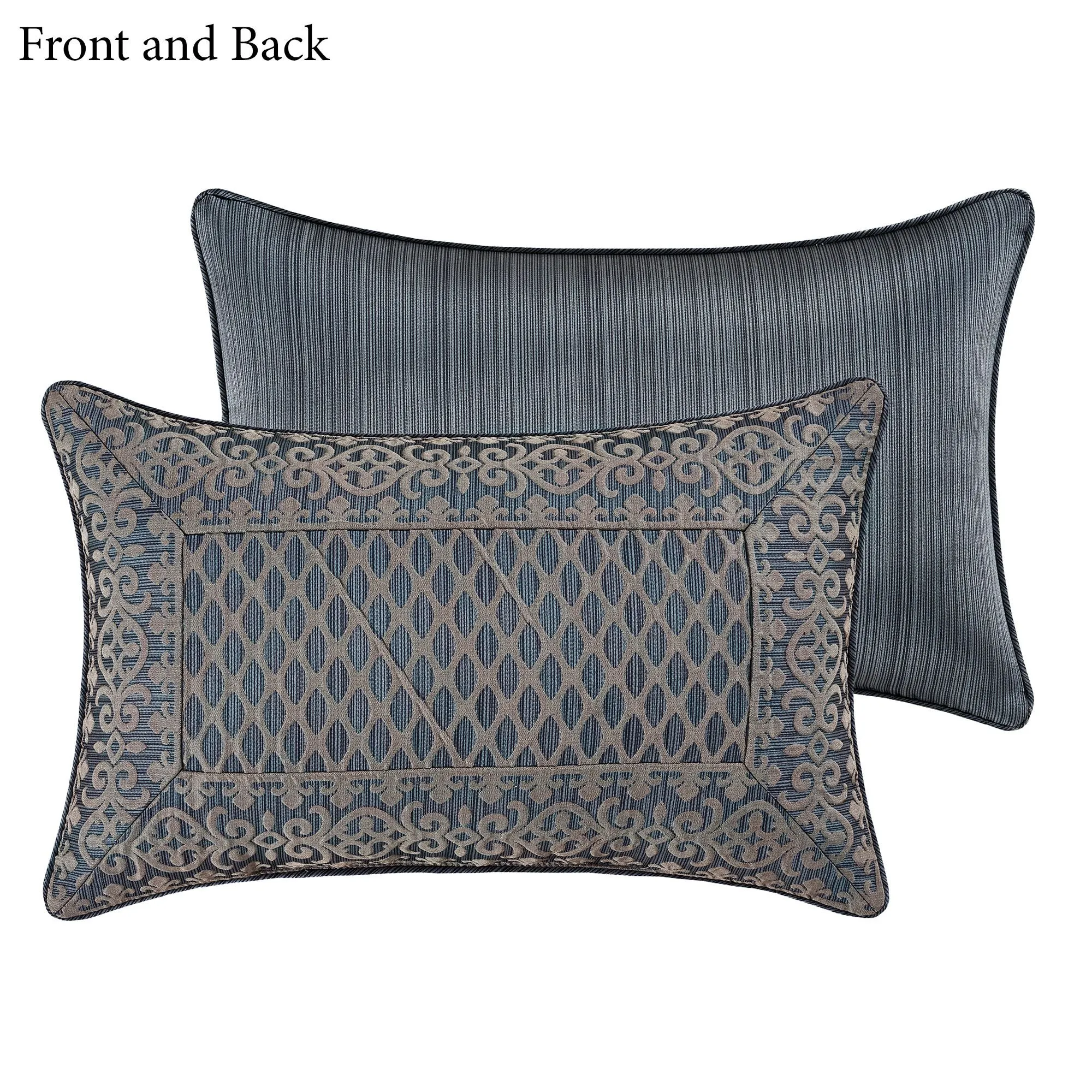 Scrolls, lattice, and striae designs beautifully enhance the Leah Bedding with timeless elegance. This polyester ensemble, by Five Queens Court, features woven puff jacquard motifs and includes the colors of blue and dark gray.
