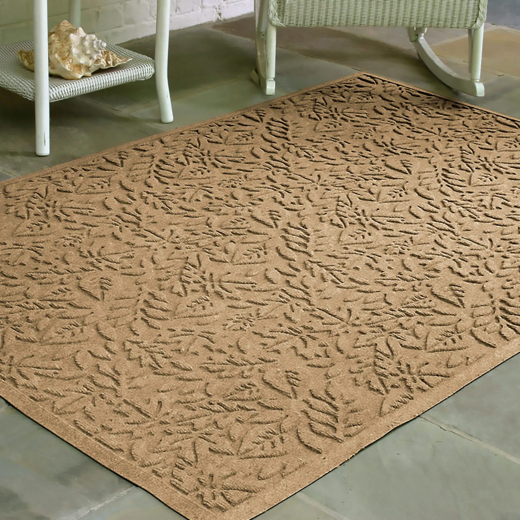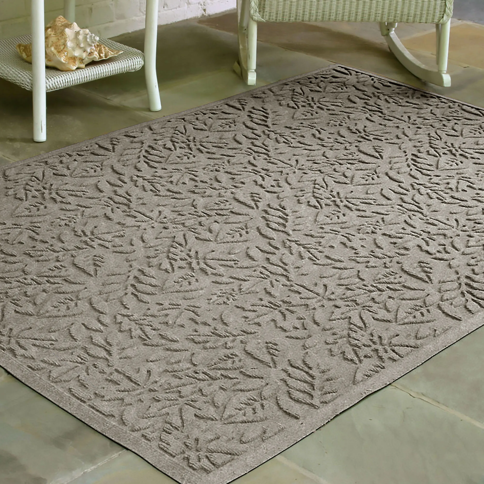 • WaterHog(R) mat features a leafy foliage design