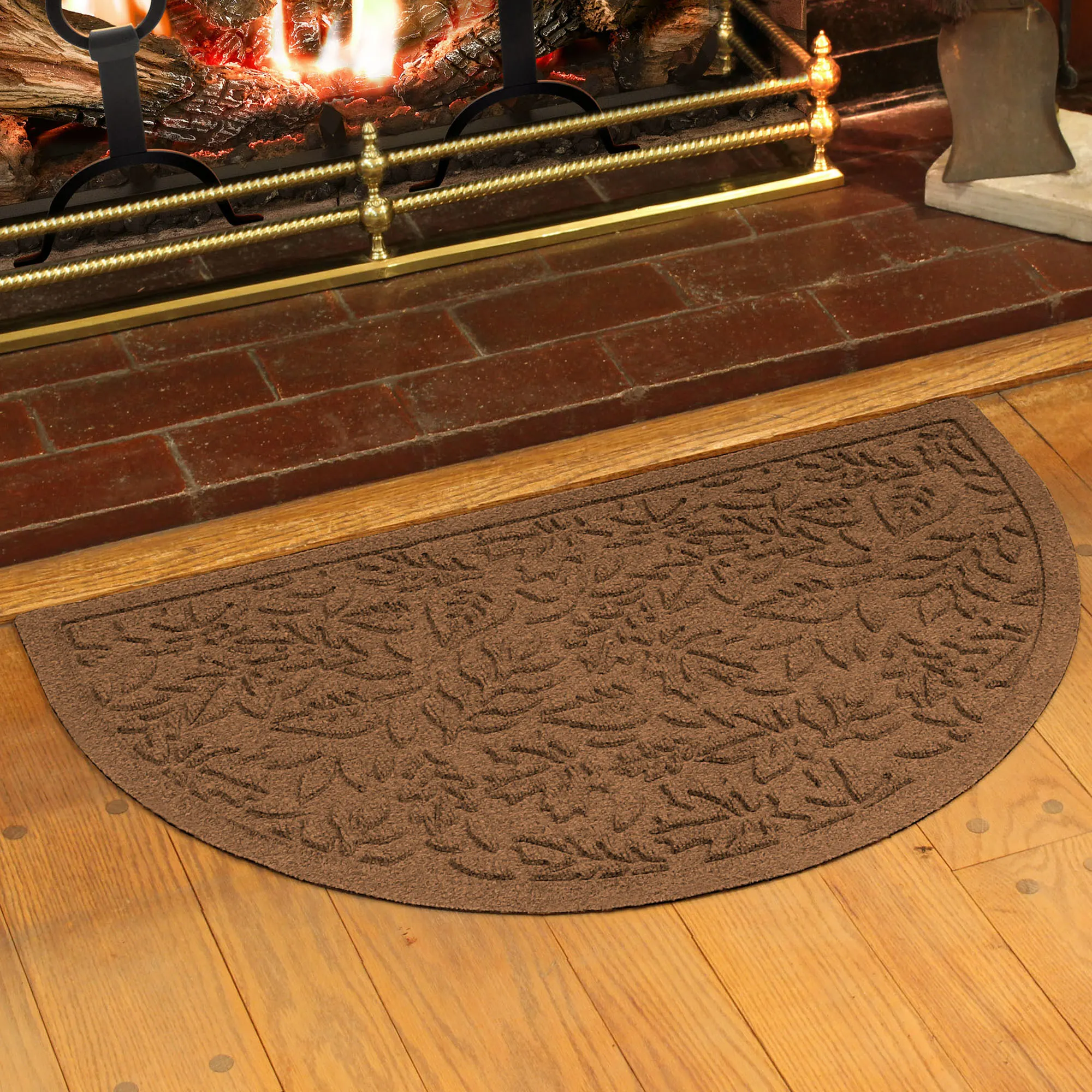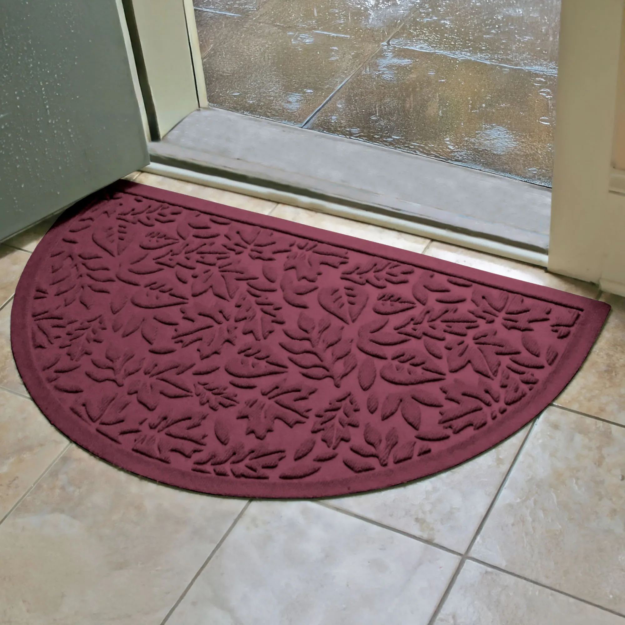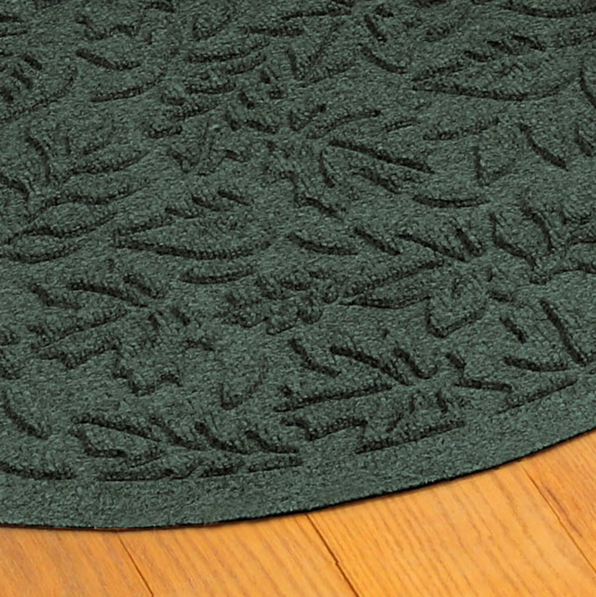 Display the all-over design of scattered Leaves. The antistatic PET polyester fiber slice mat has an all-over leafy foliage design, along with a nonskid SBR rubber backing that is slip-resistant and certified by the National Floor Safety Institute. The WaterHog(R) exclusive Water Dam border keeps dirt and water on the mat and not your floor. Premium-grade mat is mildew-, mold-, and rot-resistant. Specify Dark Green, Burgundy, Charcoal, Dark Brown, Gray, Khaki, Navy, or Slate Blue. Slice mat is 39"x24". Indoor or outdoor year-round use. Shake to remove loose dirt and hose off to clean.