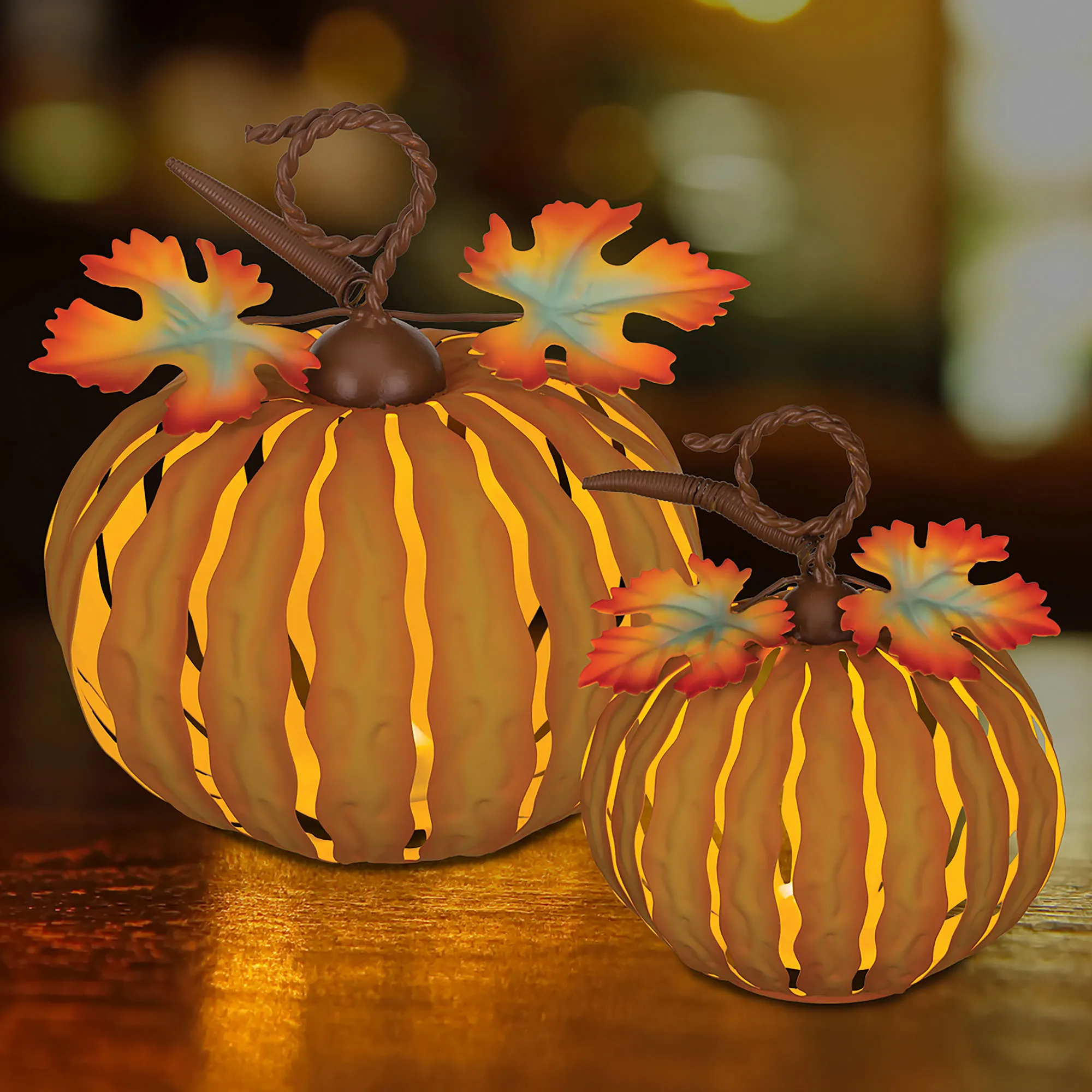 LED Lighted Indoor Outdoor Metal Fall Pumpkin Set