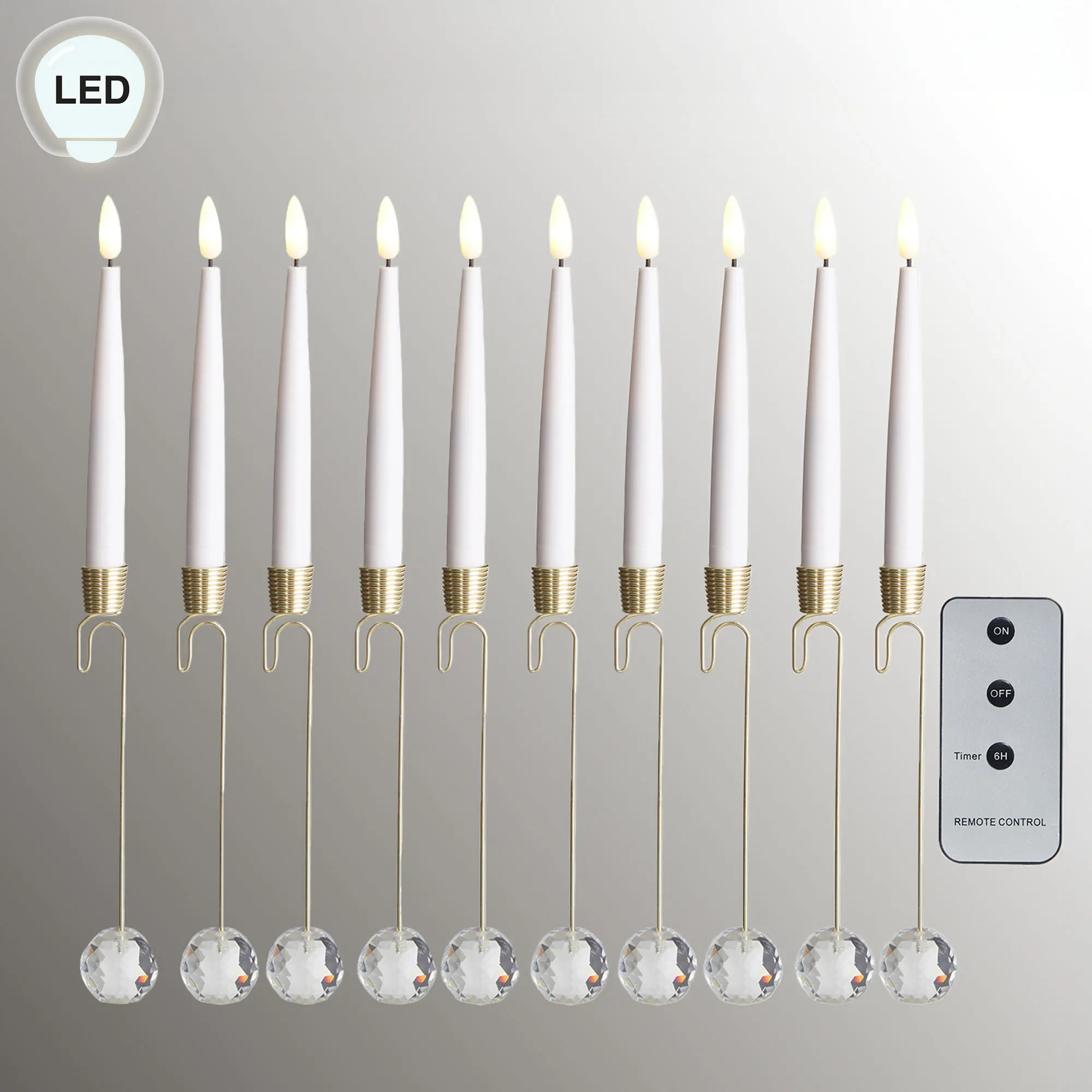 • Set includes 10 LED taper candles and a remote