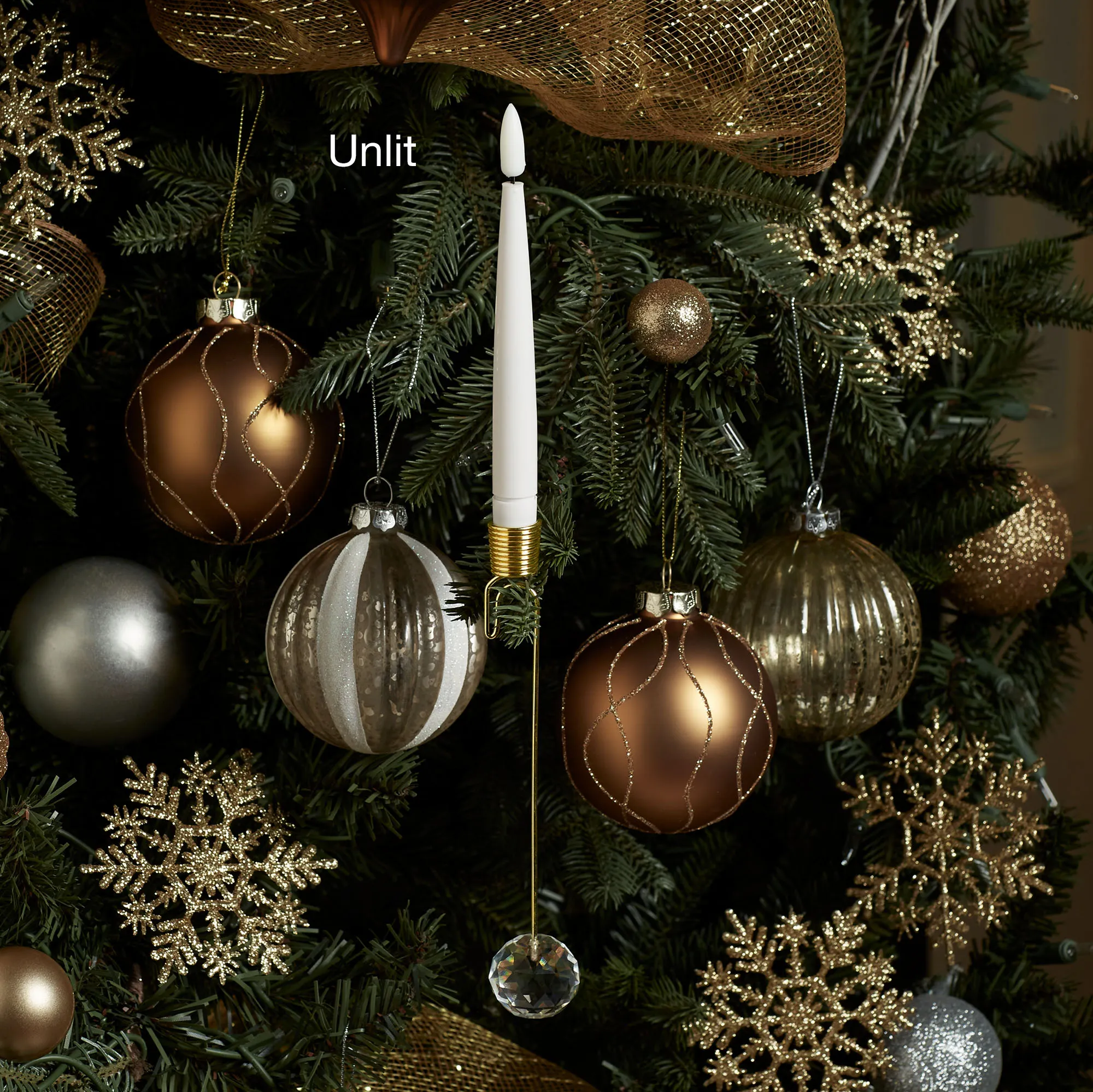 • Each candle has a faceted acrylic orb ornament at the bottom
