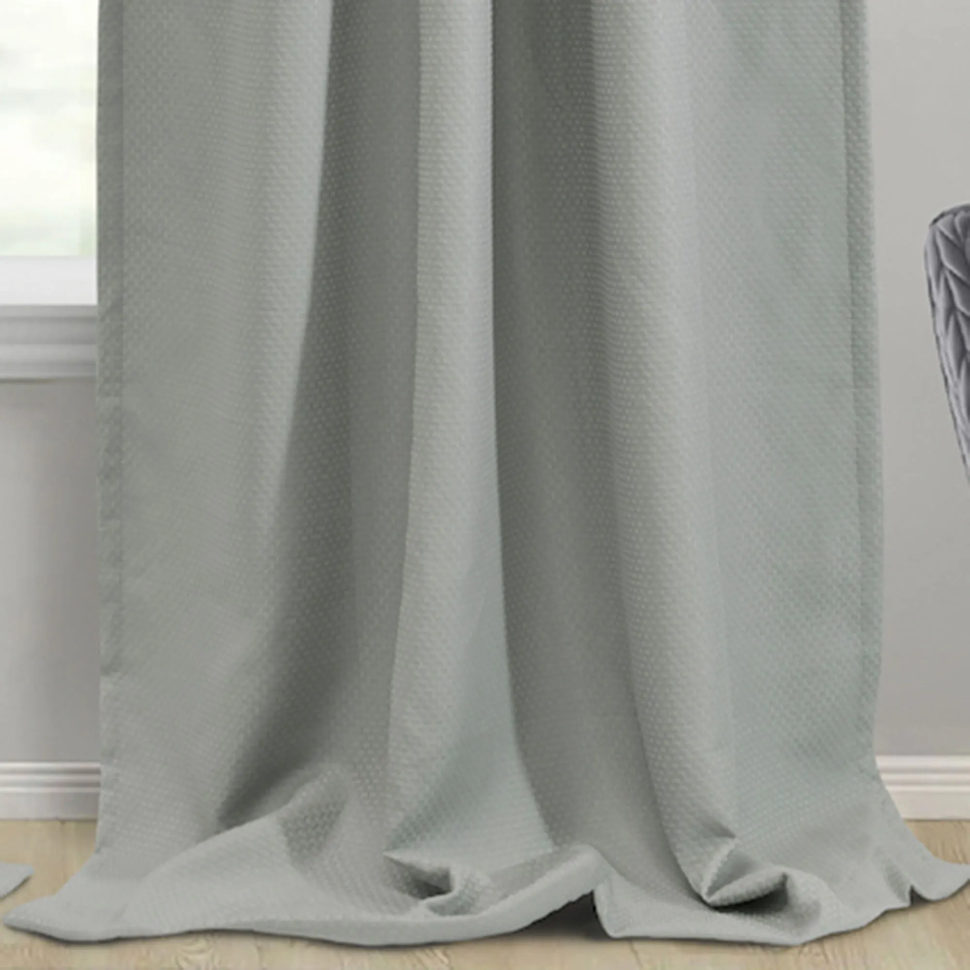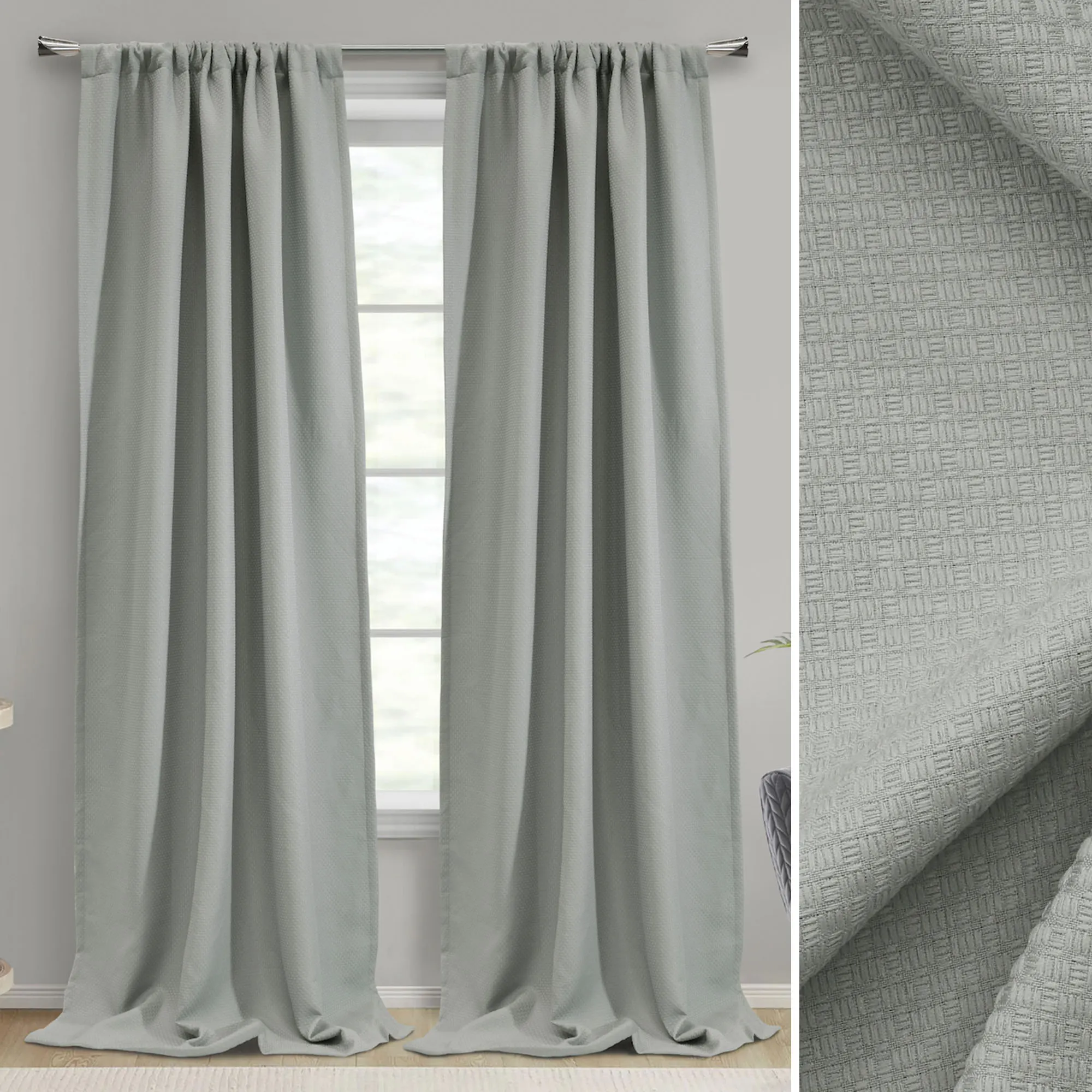 Subtle texture heightens the high-class air of the Ledford Curtain Panel. From Thermalogic(TM), the silver basket weave-textured polyester window panel features a room darkening lining of black yarn sandwiched between layers of colored yarn to help reduce noise and boost energy efficiency. Sold individually, each 52"W panel can hang via the 3"L back tabs or the 3" rod pocket. Machine washable. Imported.