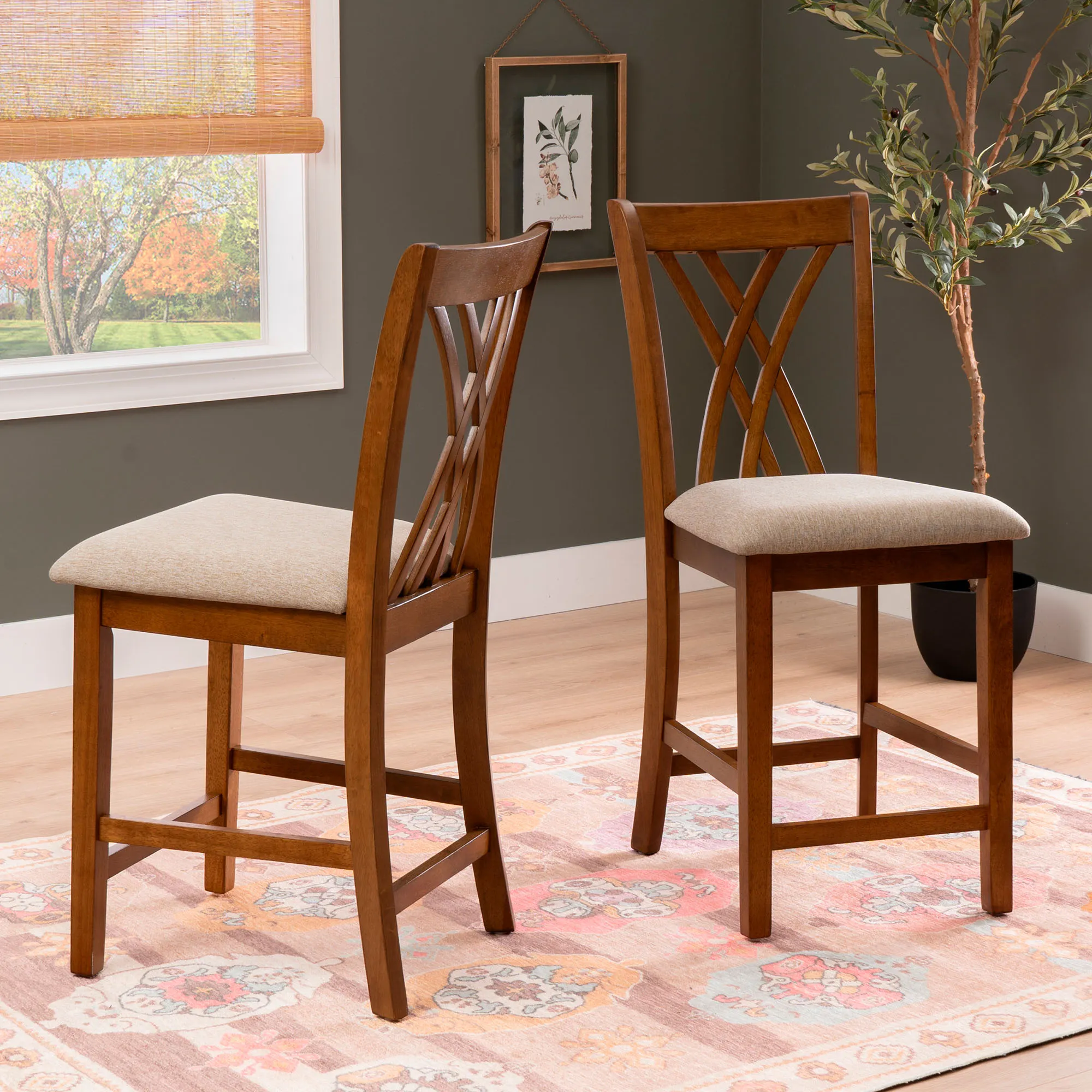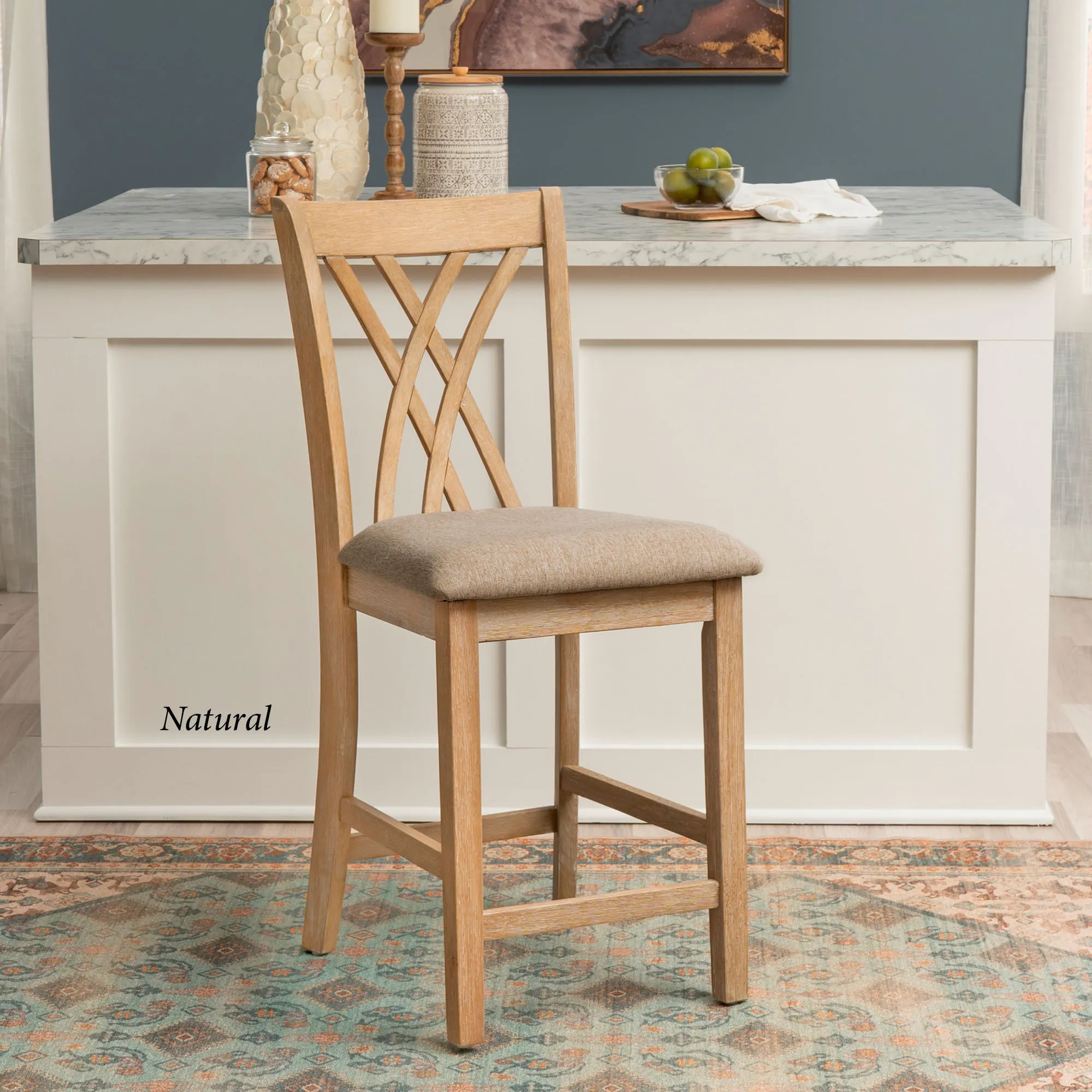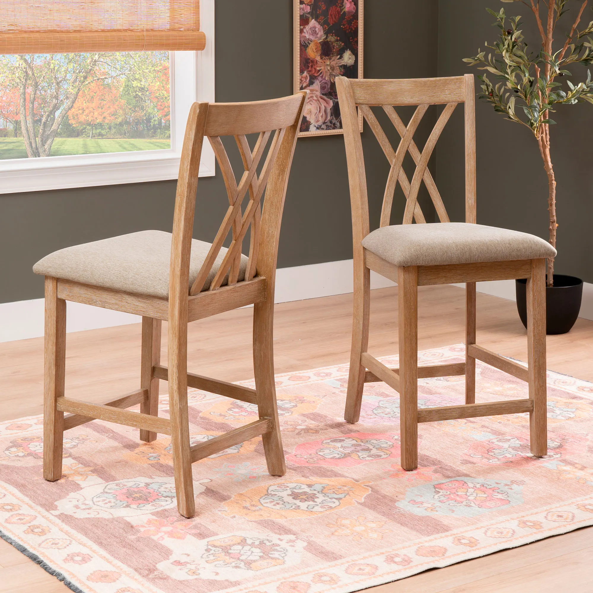 Leilani Crossing Back Upholstered Wood Counter Stool Set of 2