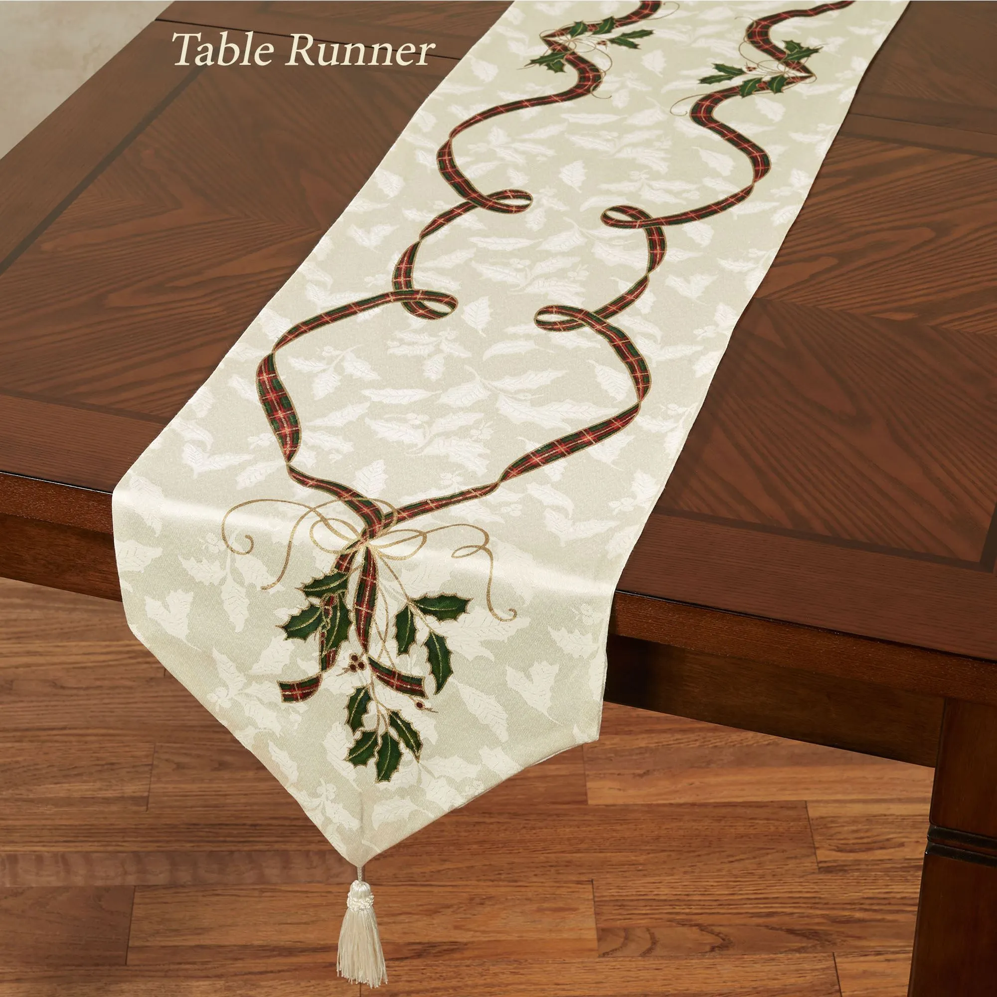 • Woven jacquard holiday table linens