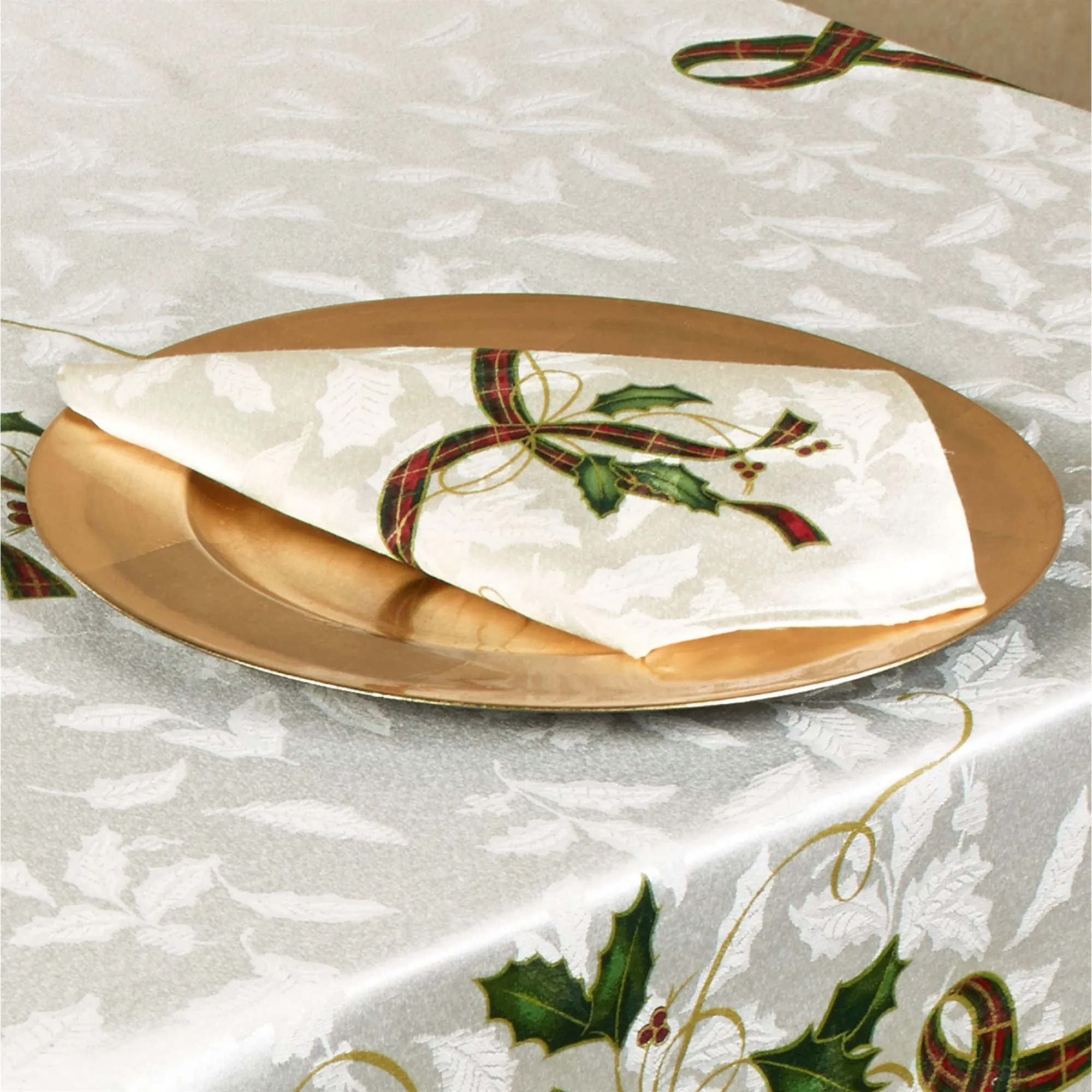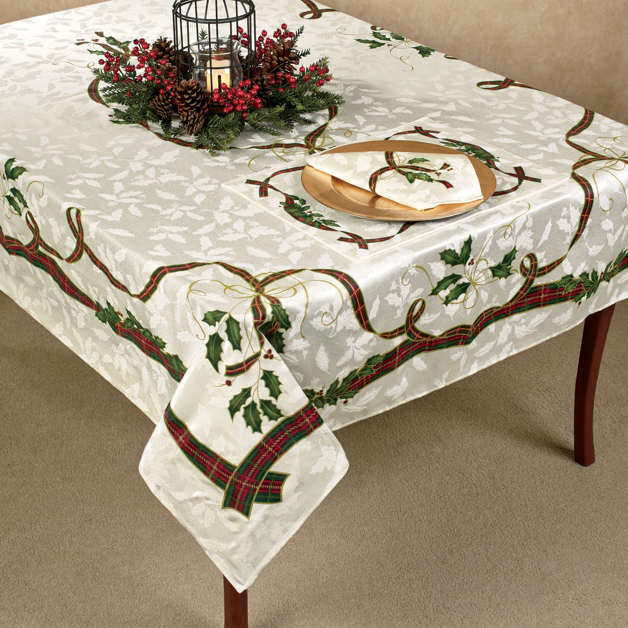 Lenox Holiday Nouveau Holly Oblong Tablecloth and Table Linens