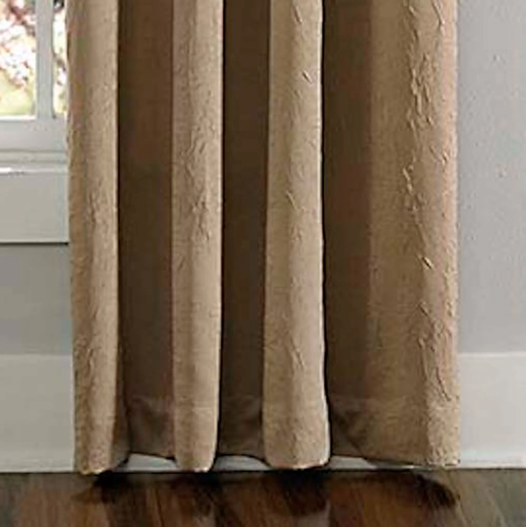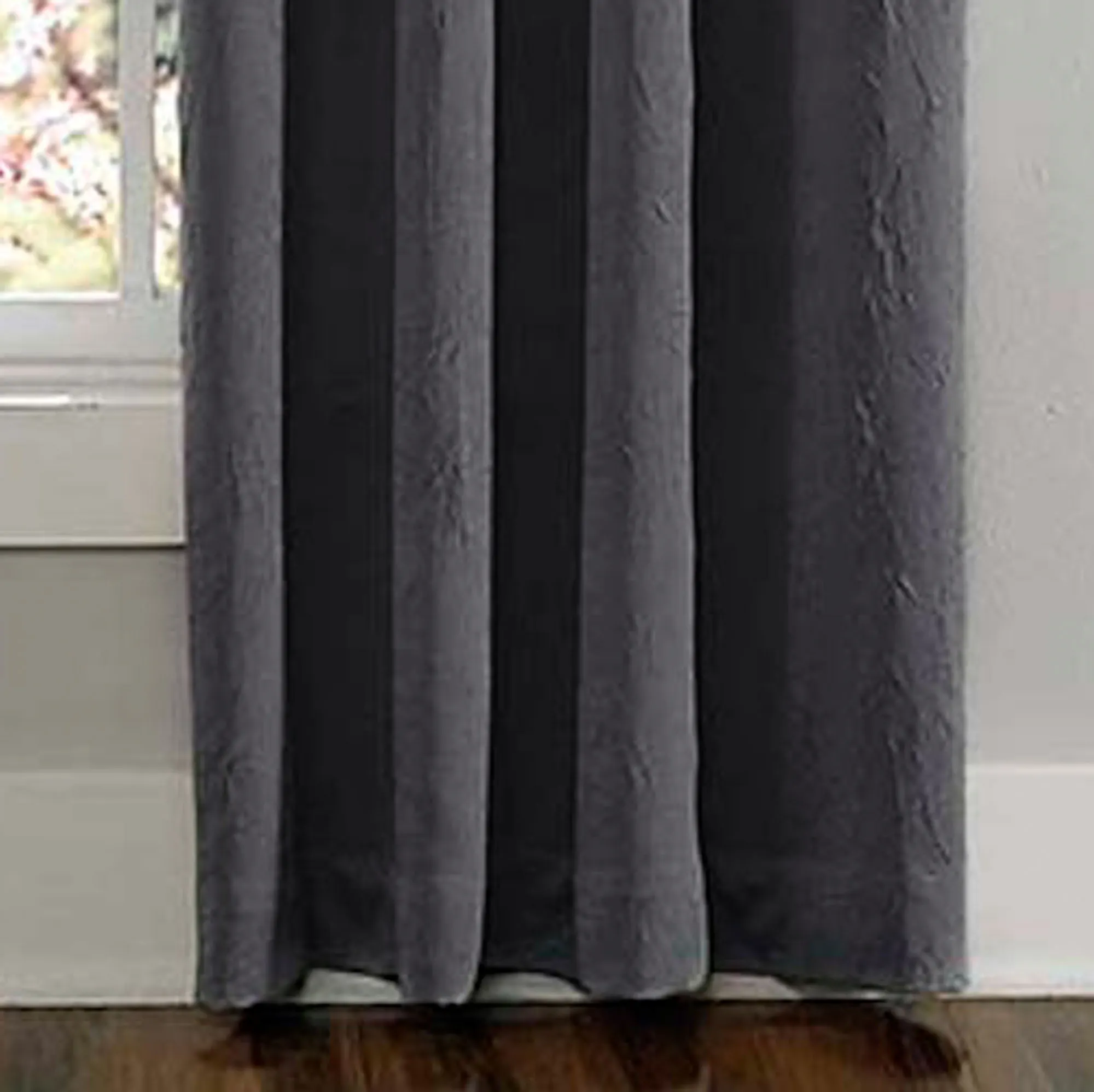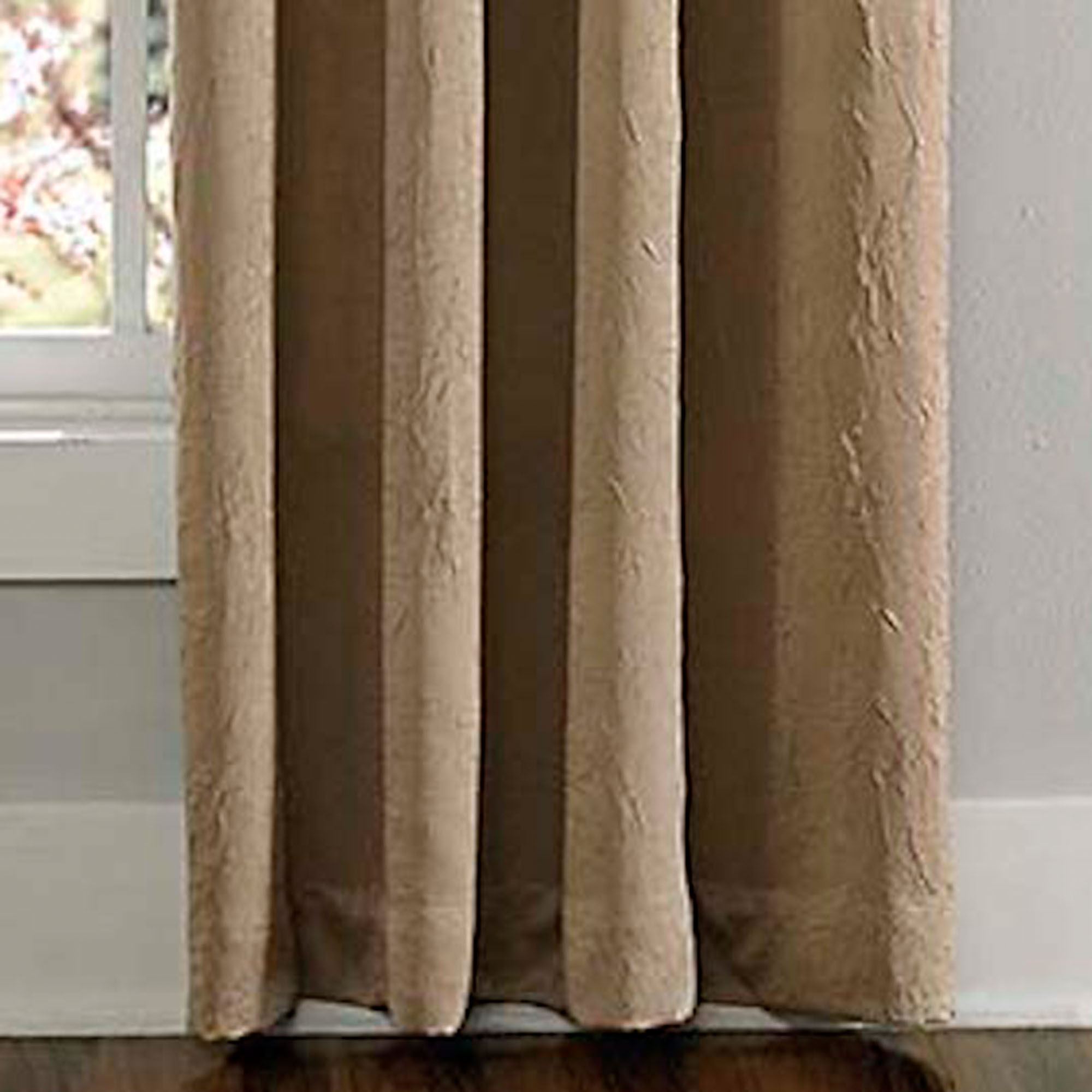 The Lenox Grommet Curtain Panel features a subtle crushed texture with room darkening properties. This polyester window panel has a woven back that will help block drafts and maintain room temperature, saving you energy while reducing unwanted light pollution. Eight 1.5" dia. nickel-finished metal grommets line the top of each panel. Grommet curtain panels are sold individually; each is 50"W. Washable. Imported.