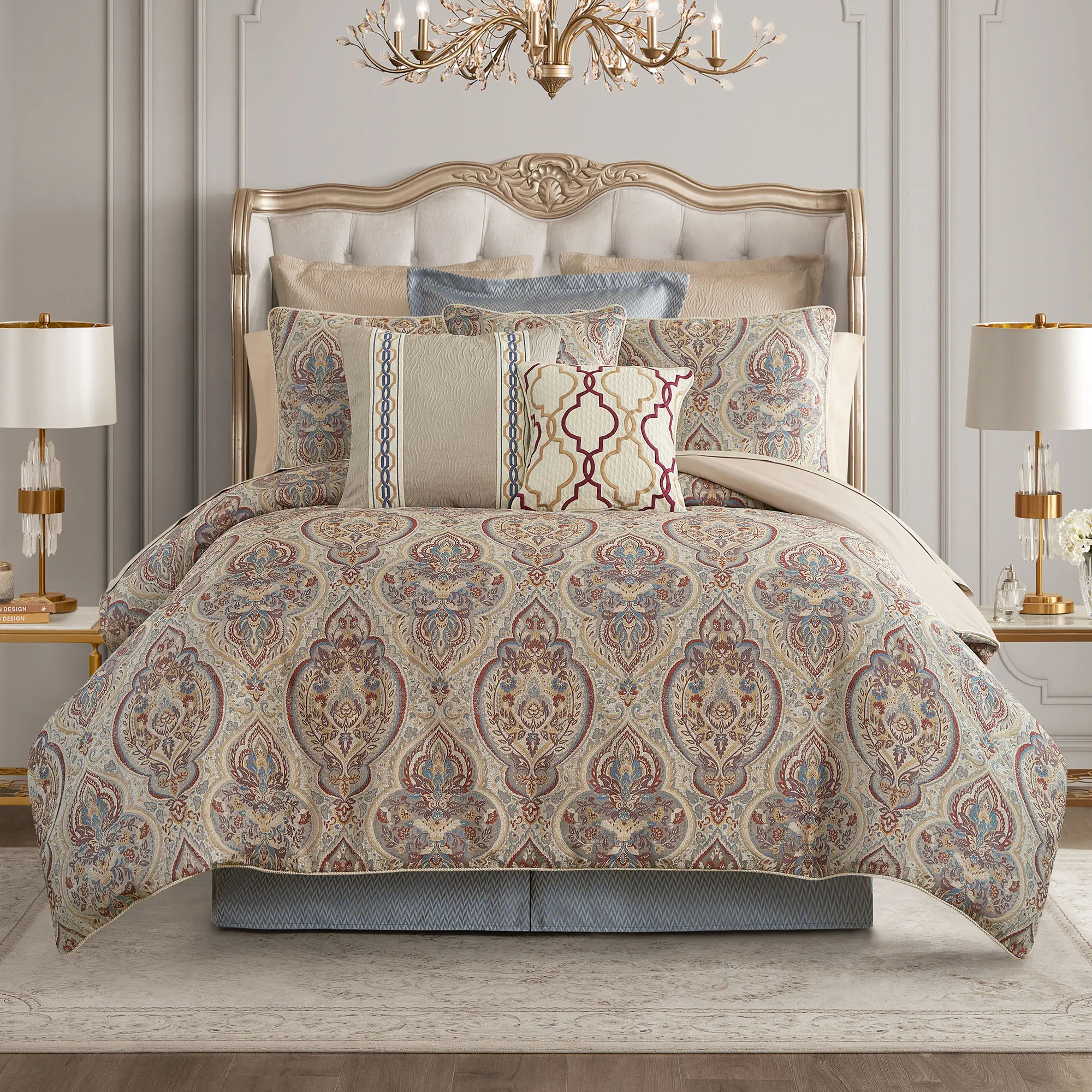 Lewiston Jacquard Woven Damask Comforter Set Luxury Bedding from Waterford Linens