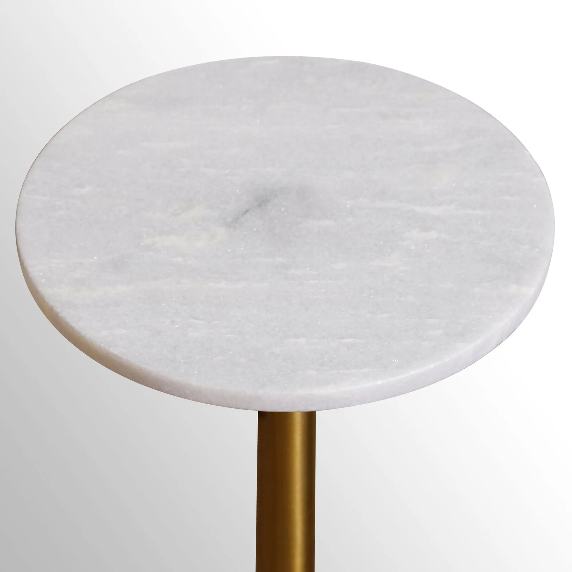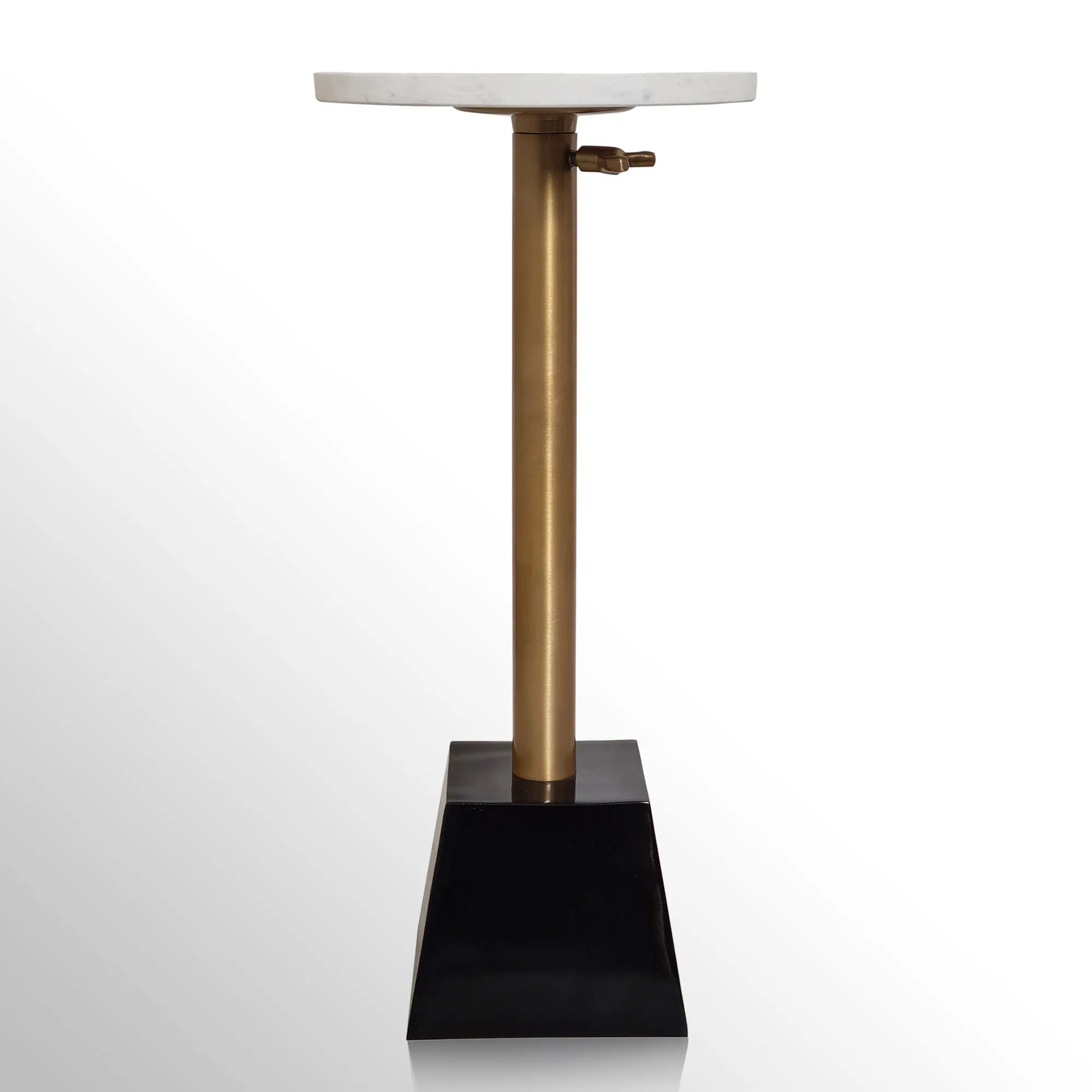 The Lifestyle Drink Table mirrors your love of high-class, chic style. Designed by Dann Foley, the modern table features a glossy black base, brushed bronze aluminum rod, and round white marble table top. Simply use the turn key beneath the table top to adjust the table's height to your needs. Due to the marble's natural appearance, variations may occur. Overall, the drink table measures 10"dia.x22"-32.5"H and weighs approx. 20 lbs.