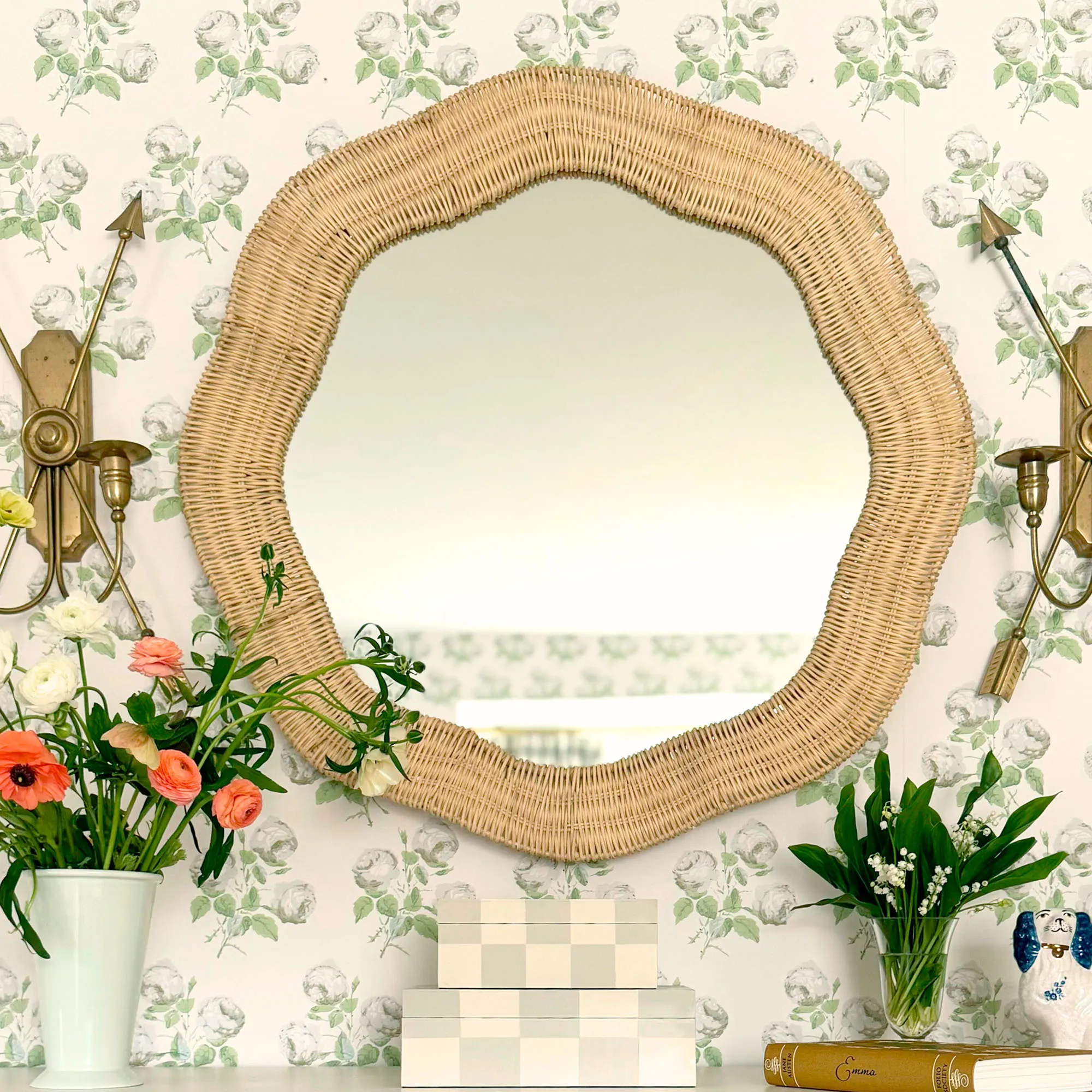 Linden Handcrafted Rattan Scalloped Round Wall Mirror by Erin Gates