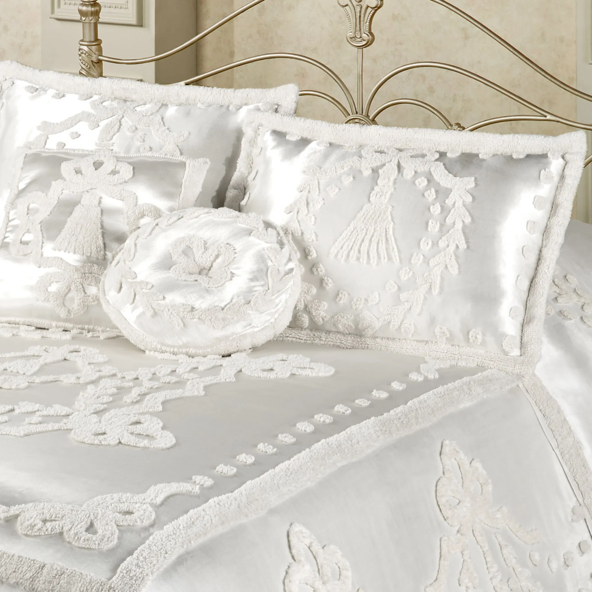 Lisette White Chenille Satin Bedding Accessories