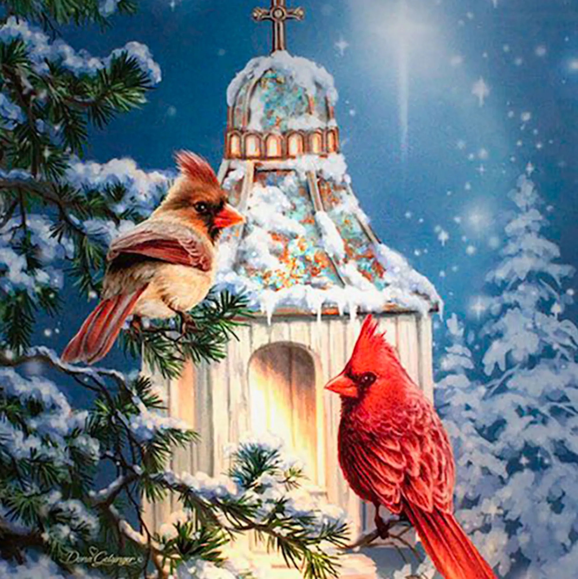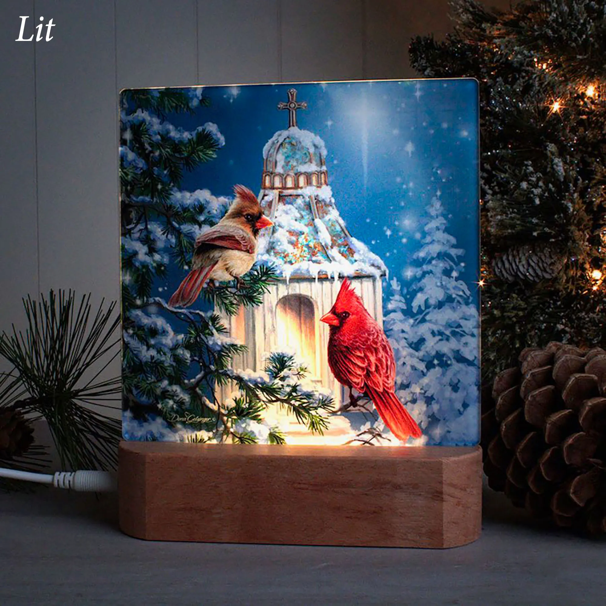 Dona Gelsinger Little Cardinal Chapel Christmas LED Acrylic Tabletop Nightlight