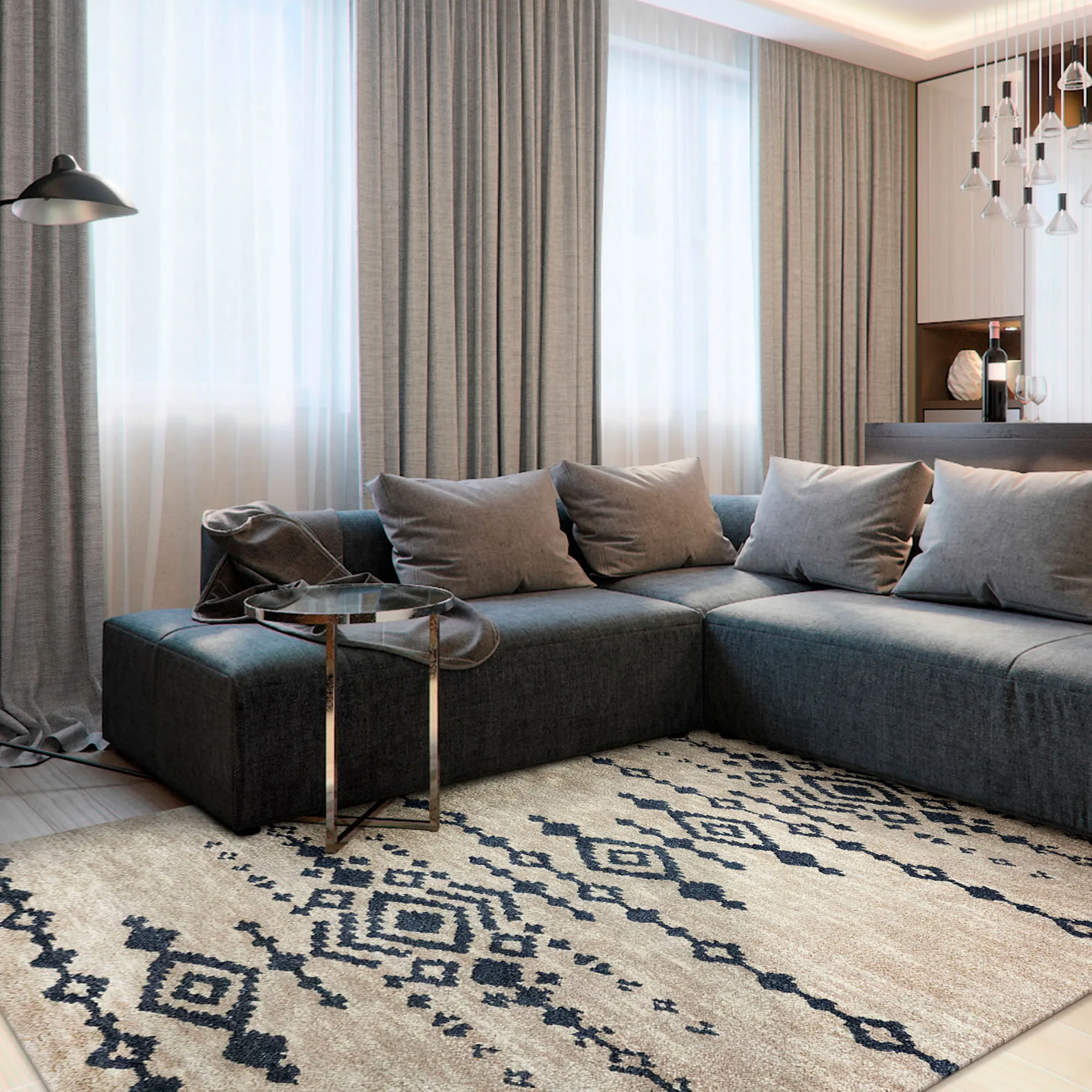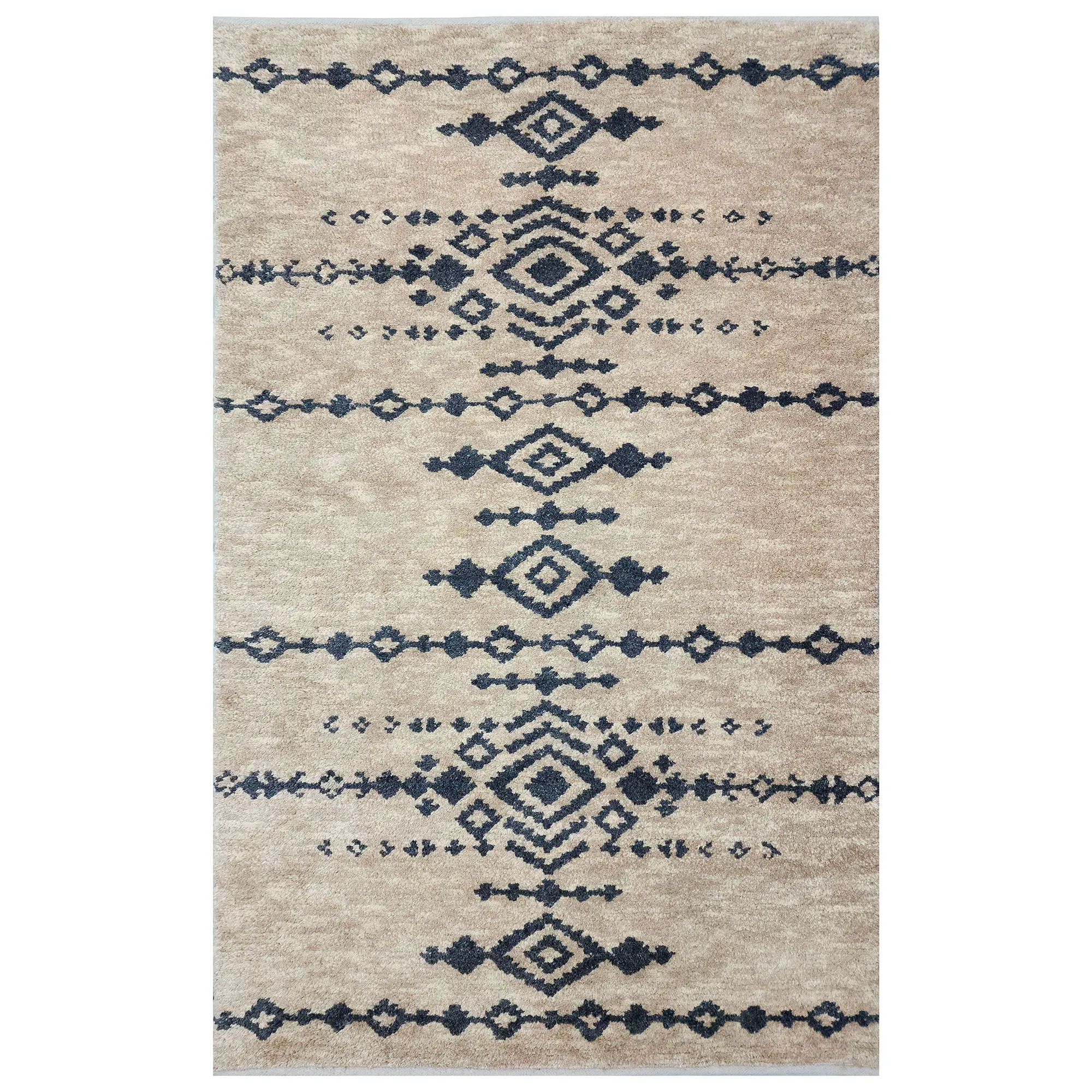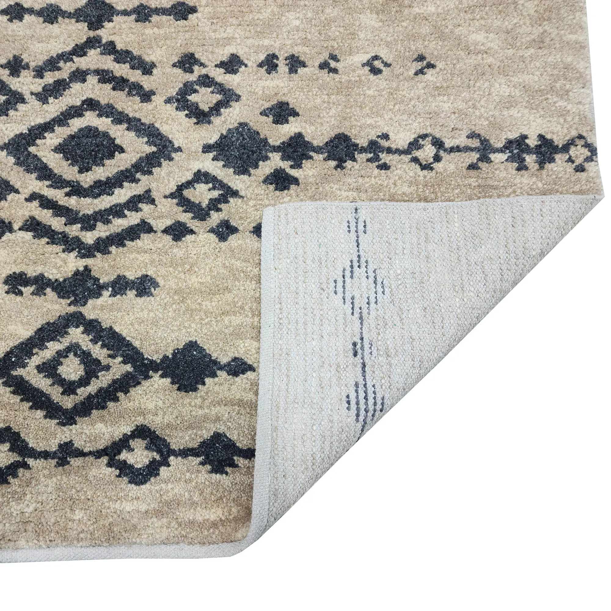 Logan Hand Knotted Wool Natural and Dark Blue Diamond Design Area Rugs