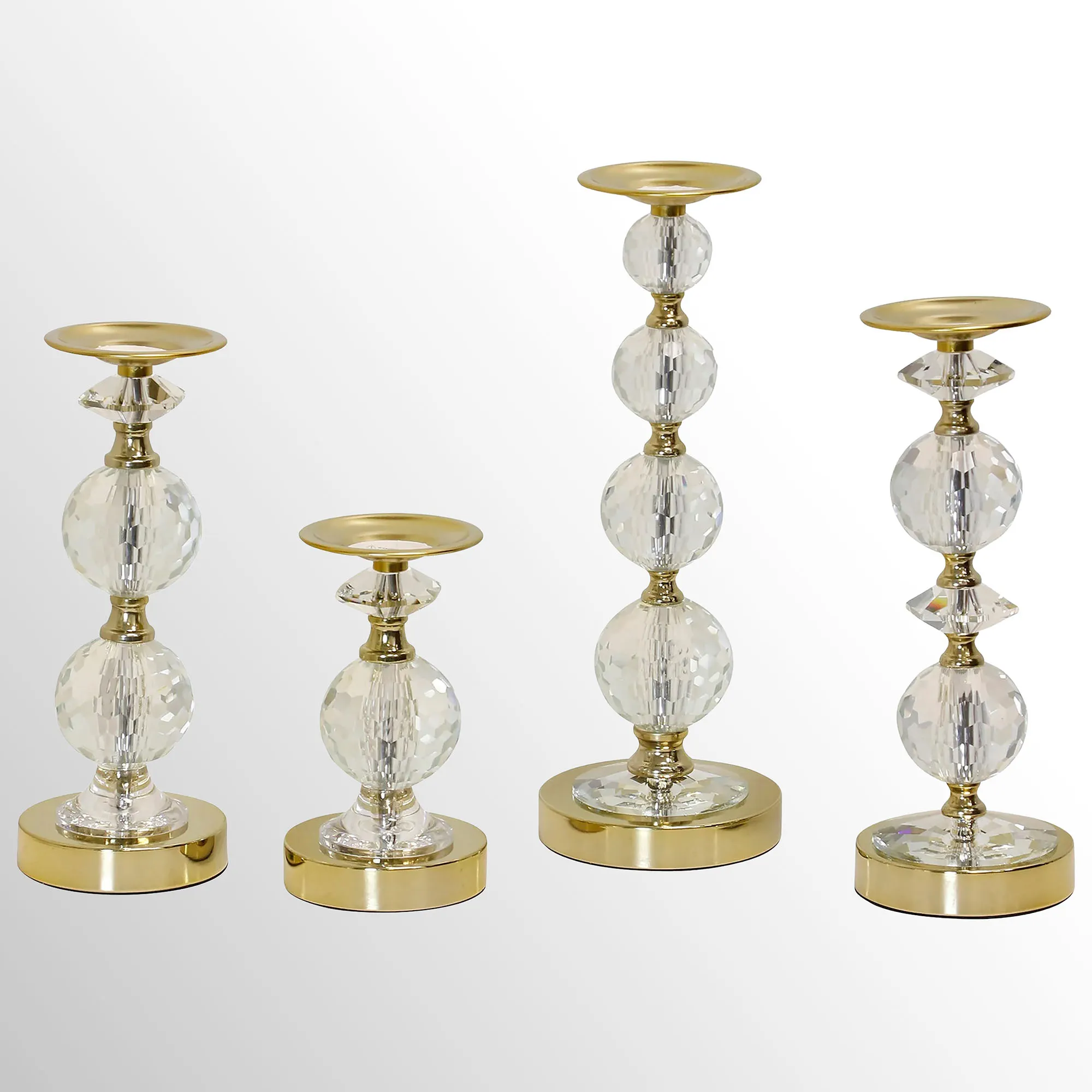 Lola Gold Metal Faceted Crystal Pillar Candleholder Set of 4