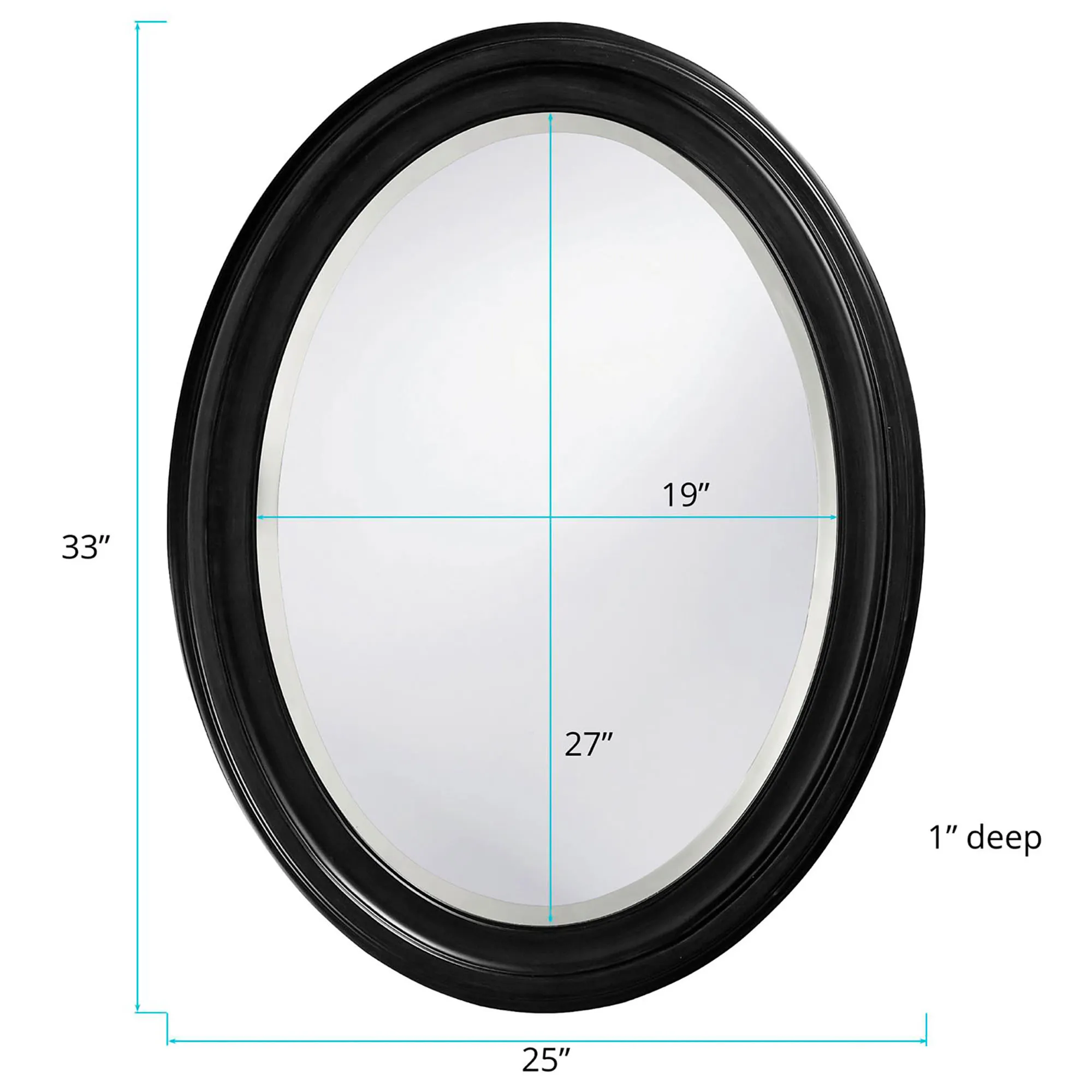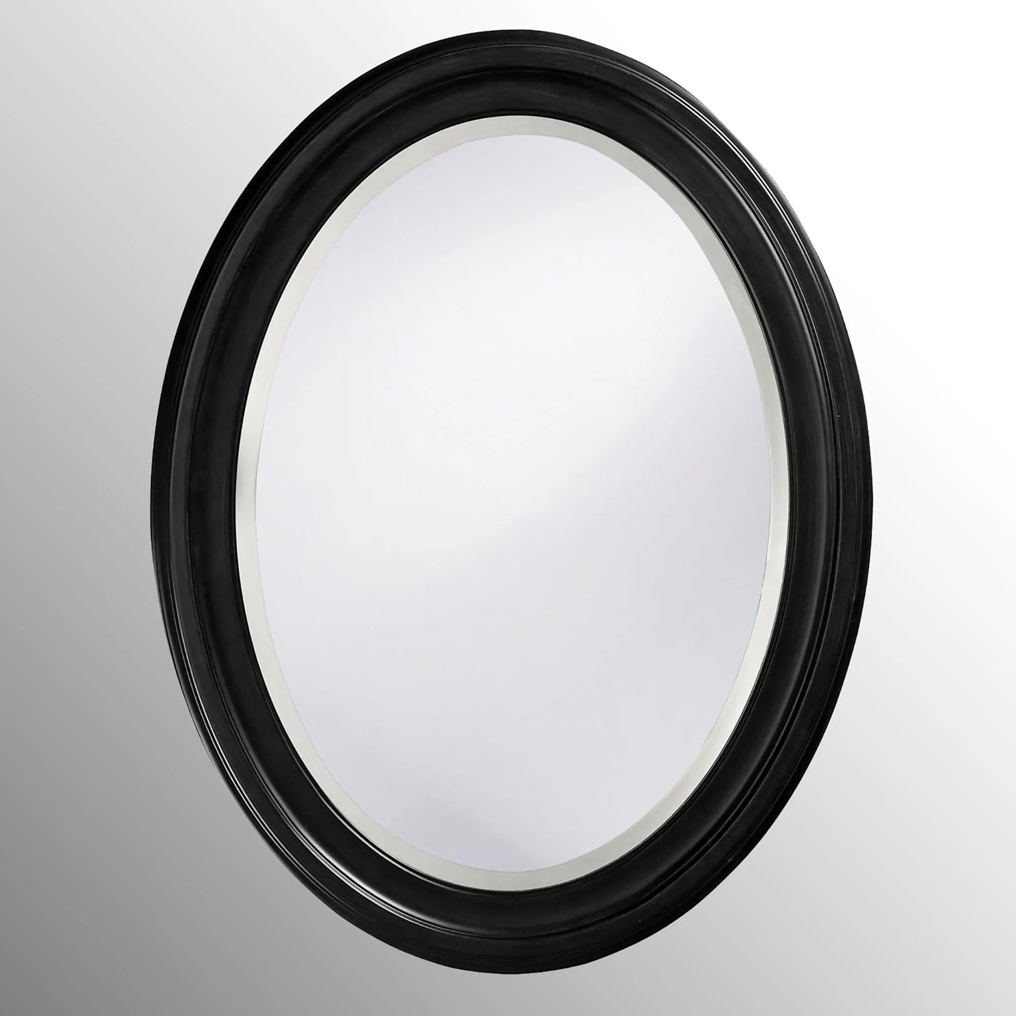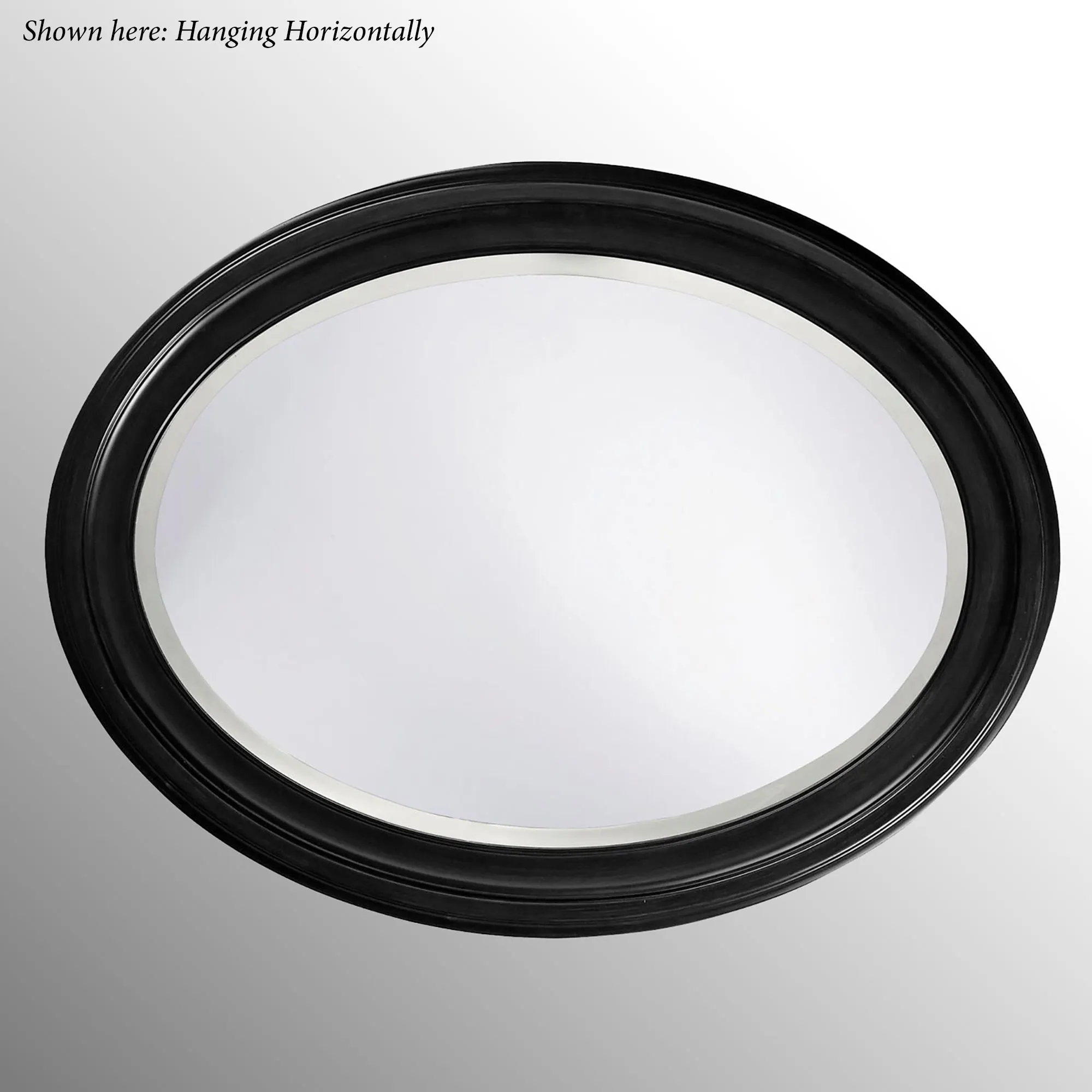 The Loree Black Oval Wall Mirror would be perfect for your bath or bedroom. Made of solid wood and beveled glass, the simple lines of this handcrafted wall mirror make it a suitable fit anywhere in your home. Overall, 25"x33".