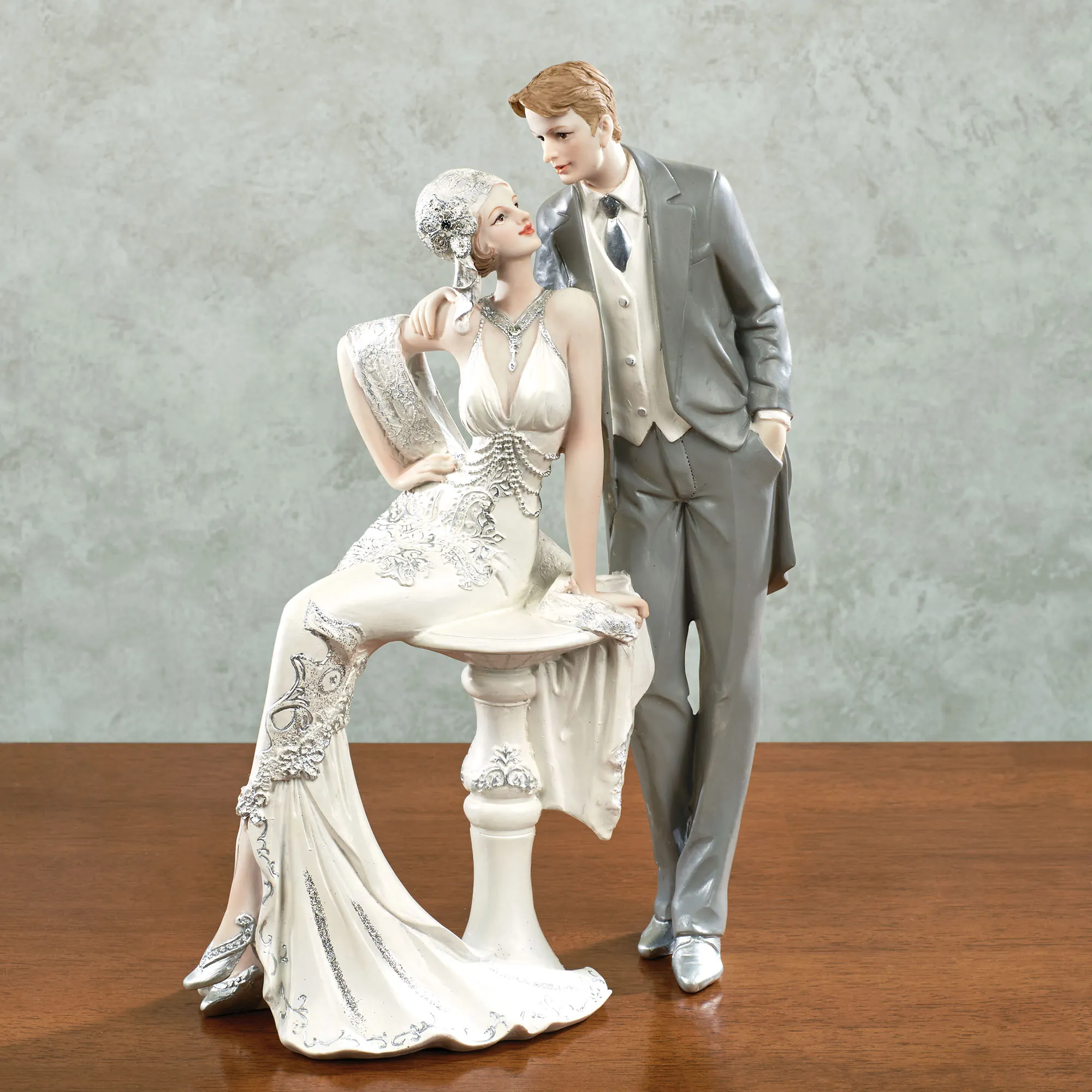 • Wedding figurine features a 1920s-style bride and groom