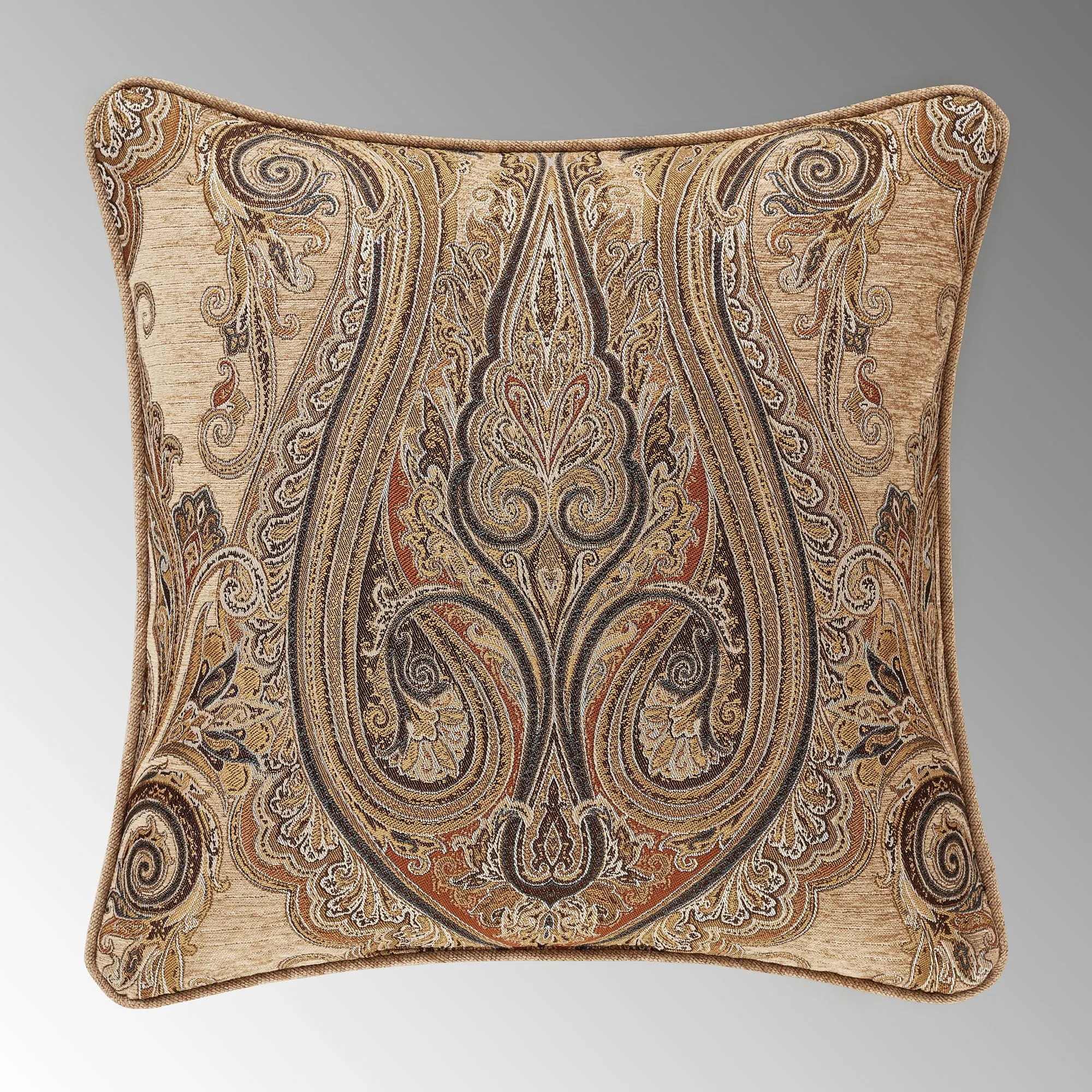 The Luciana Comforter Bedding exudes elegance with woven jacquard damask. Made of polyester, this luxurious oversized comforter, by J. Queen New York, features a jacquard woven scrolling damask pattern in shades of gold, beige, steel blue, rust, chocolate, and platinum gray on honey chenille. Backing is solid beige polyester microfiber. Fill is polyester. Dry clean. Imported. Sorry, the rectangle and tufted square pillows shown are not available.