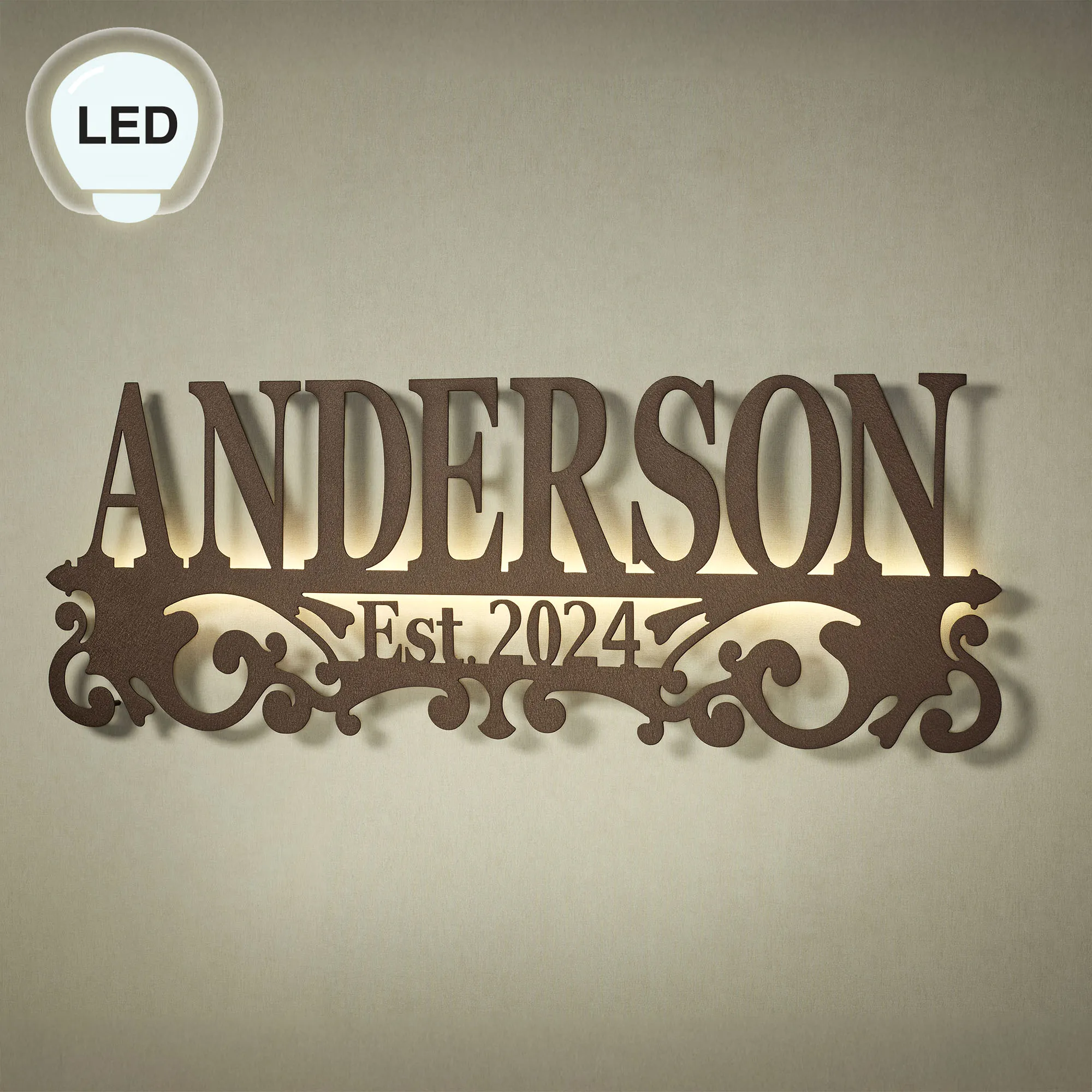 The Lucius LED Established Personalized Wall Art Sign is 14-gauge steel. Made in the USA.