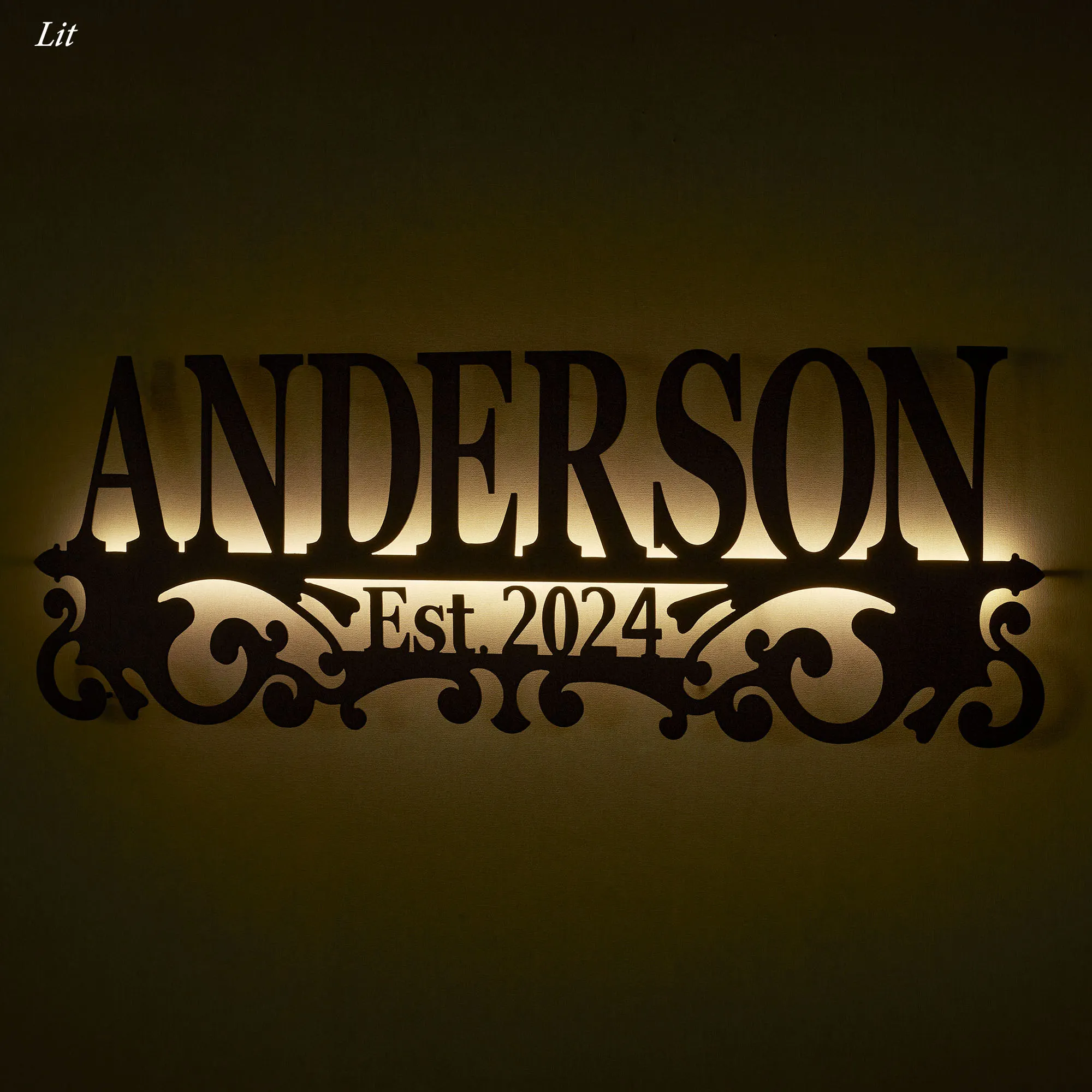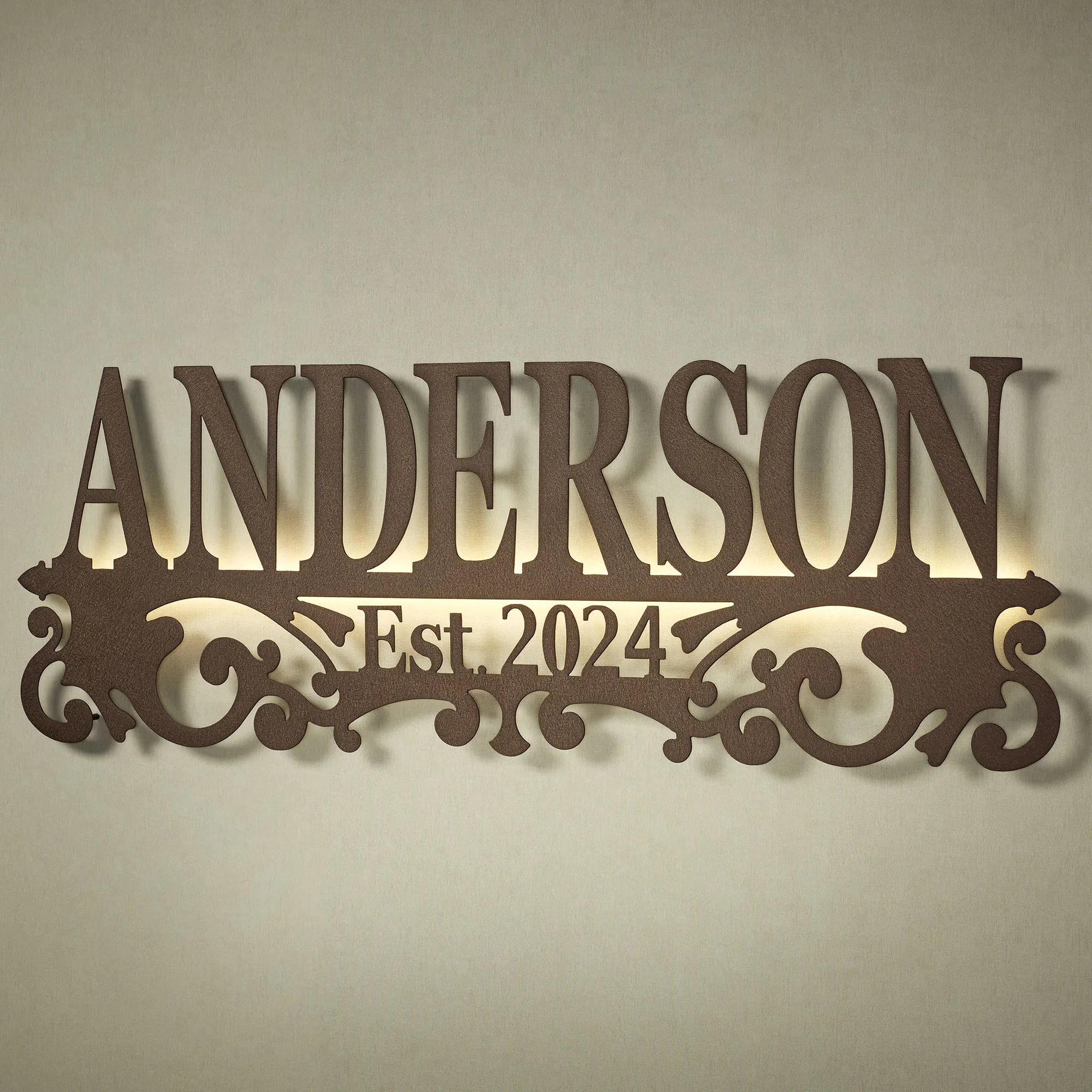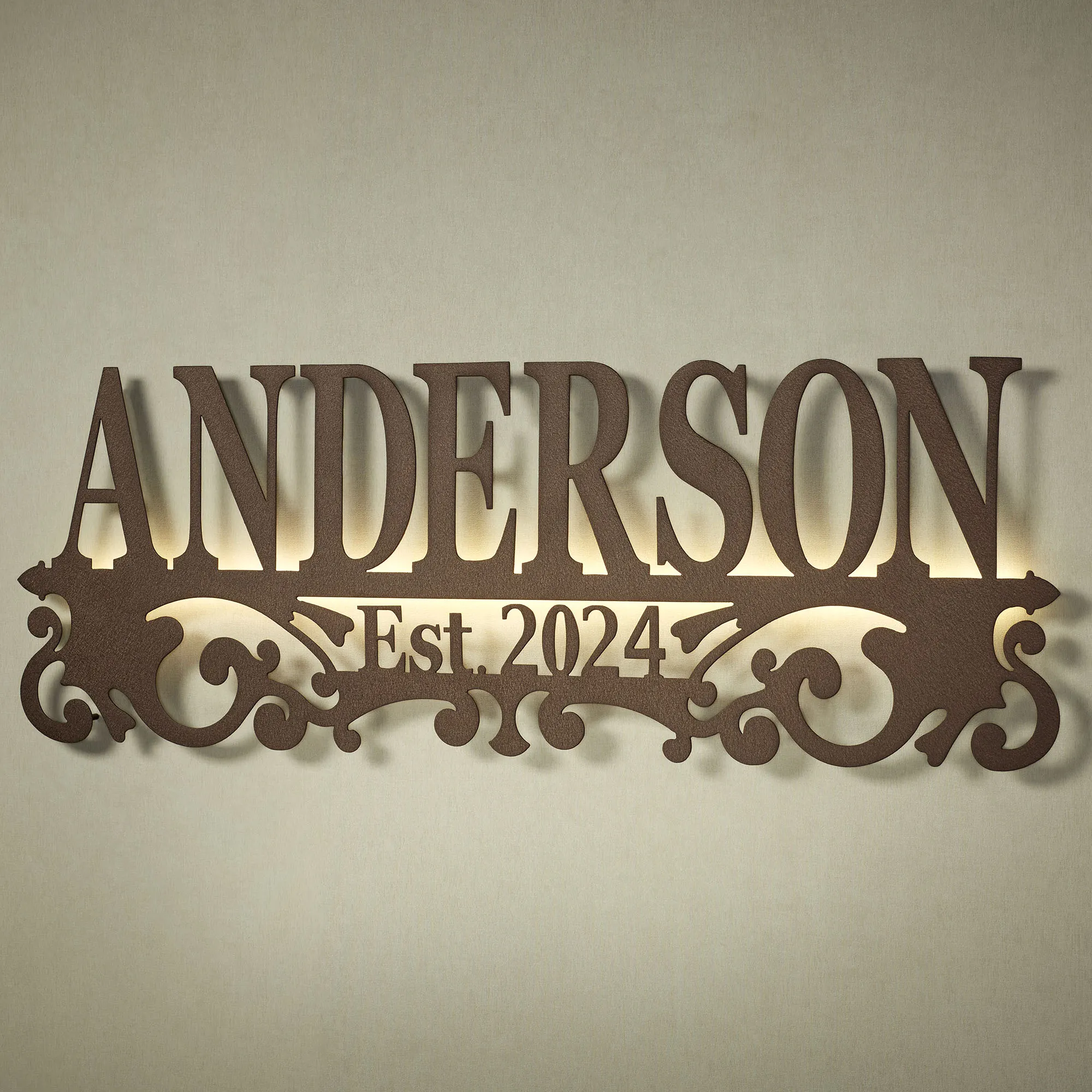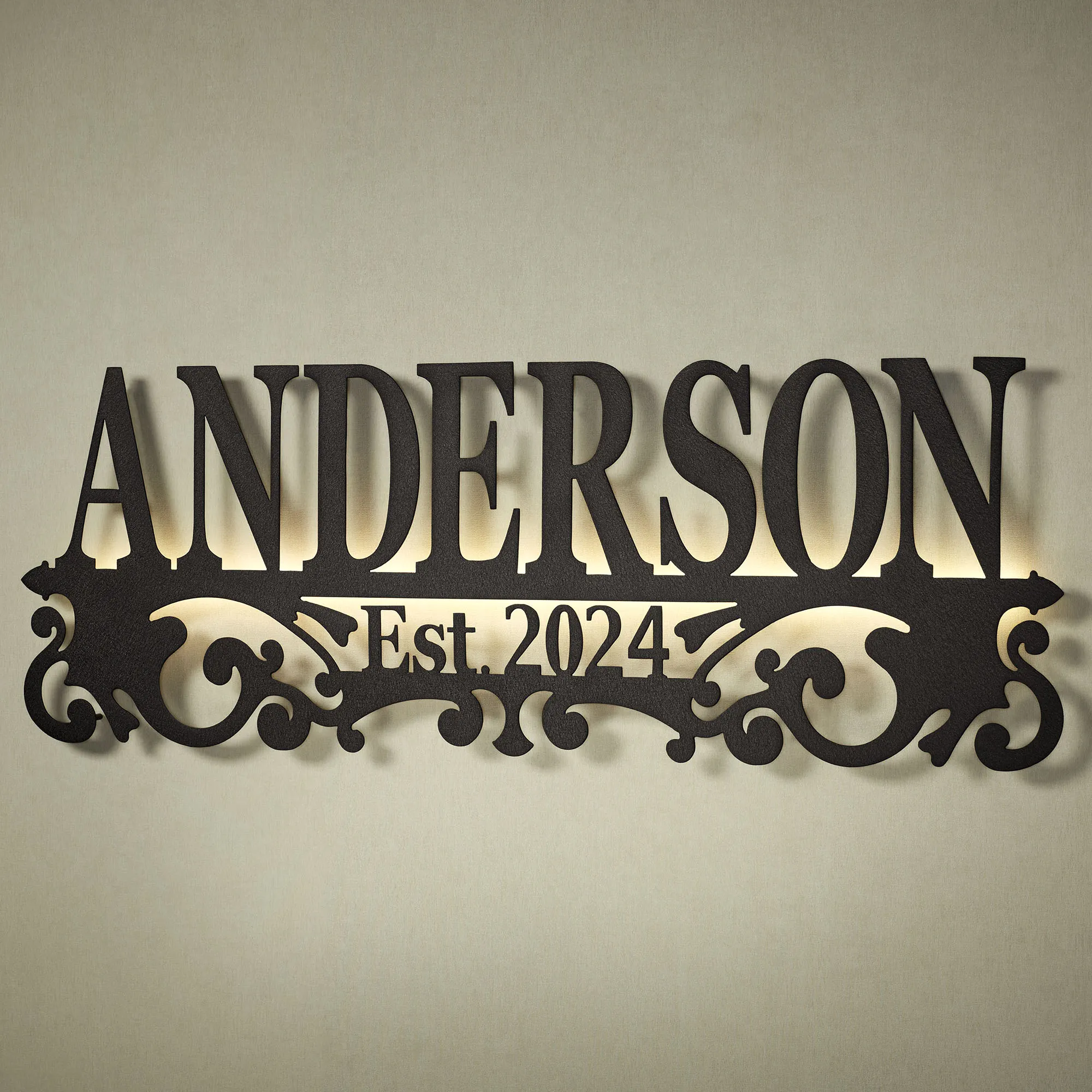 Lucius LED Lighted Established Year Personalized Metal Wall Art Sign by JasonW Studios