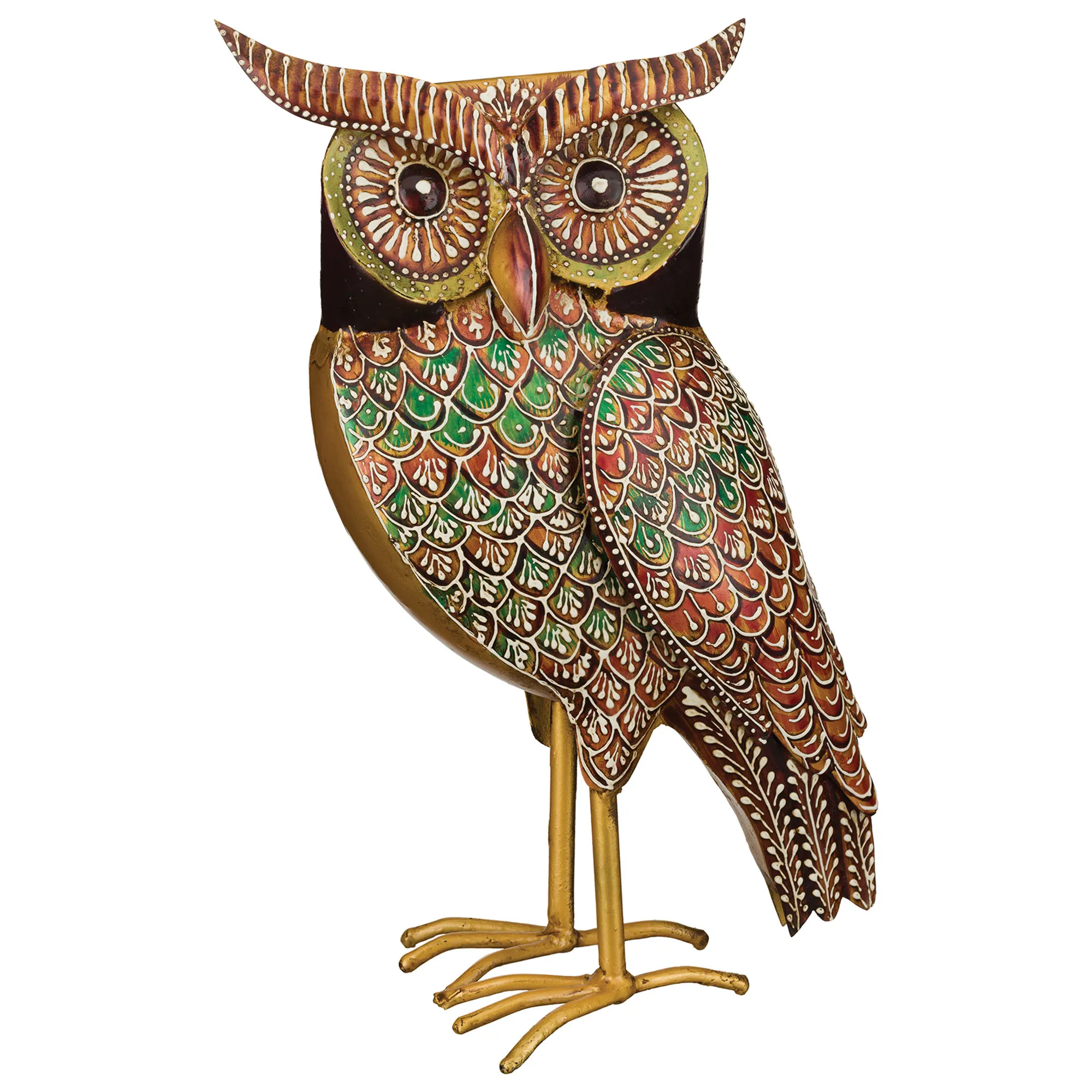 Luna Handpainted Henna Style Owl Indoor Outdoor Metal Sculpture