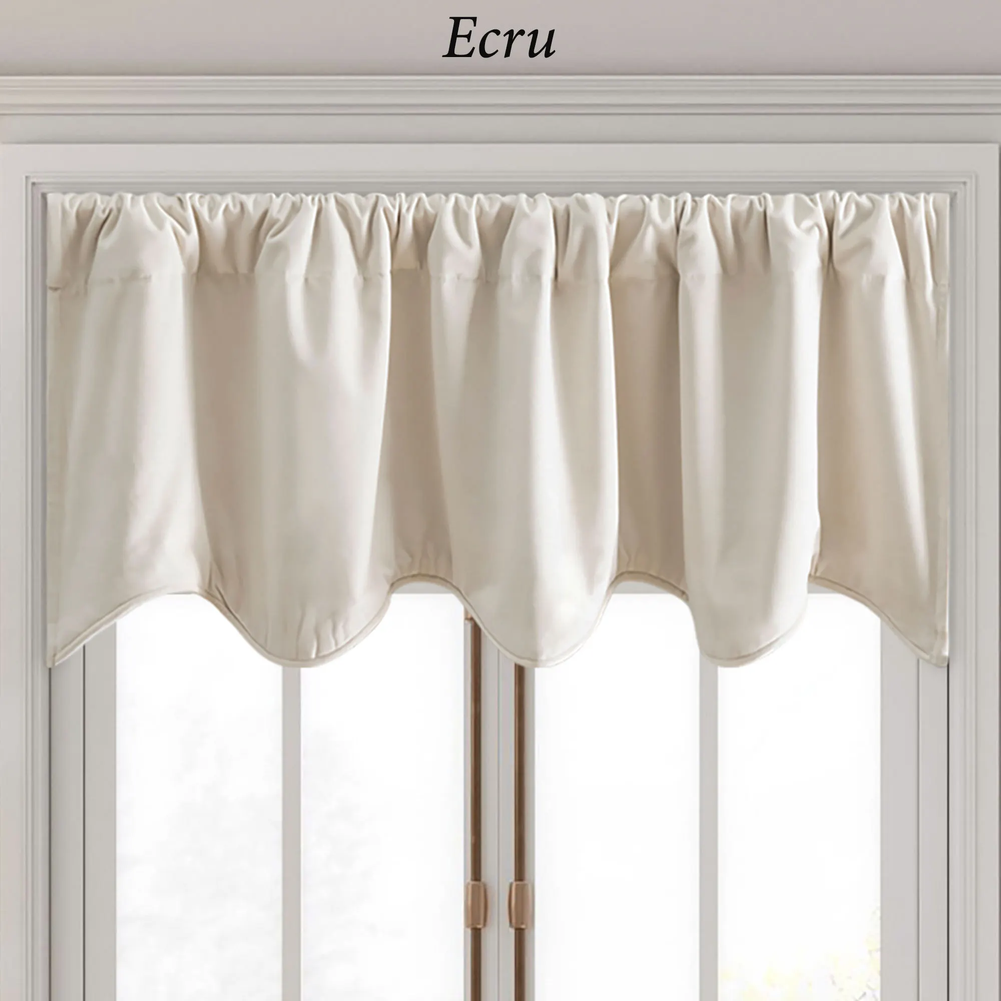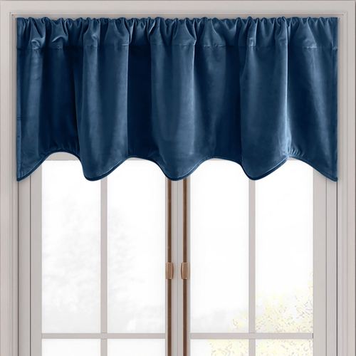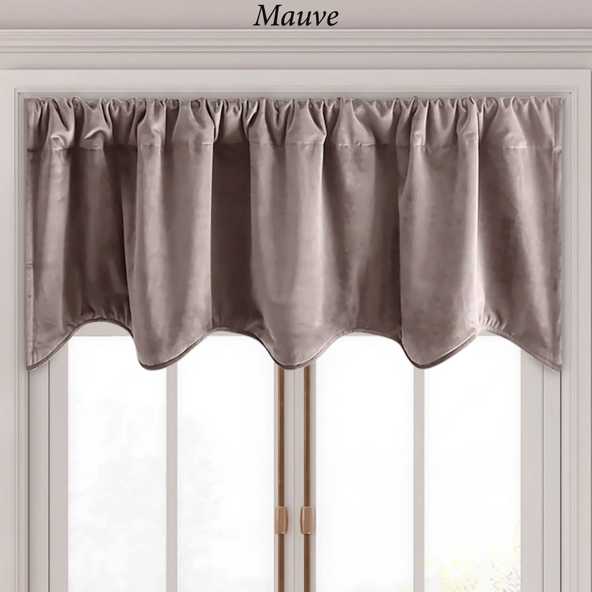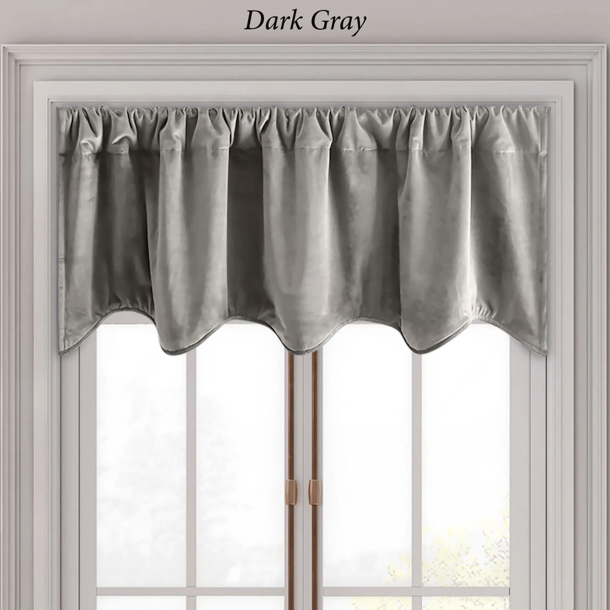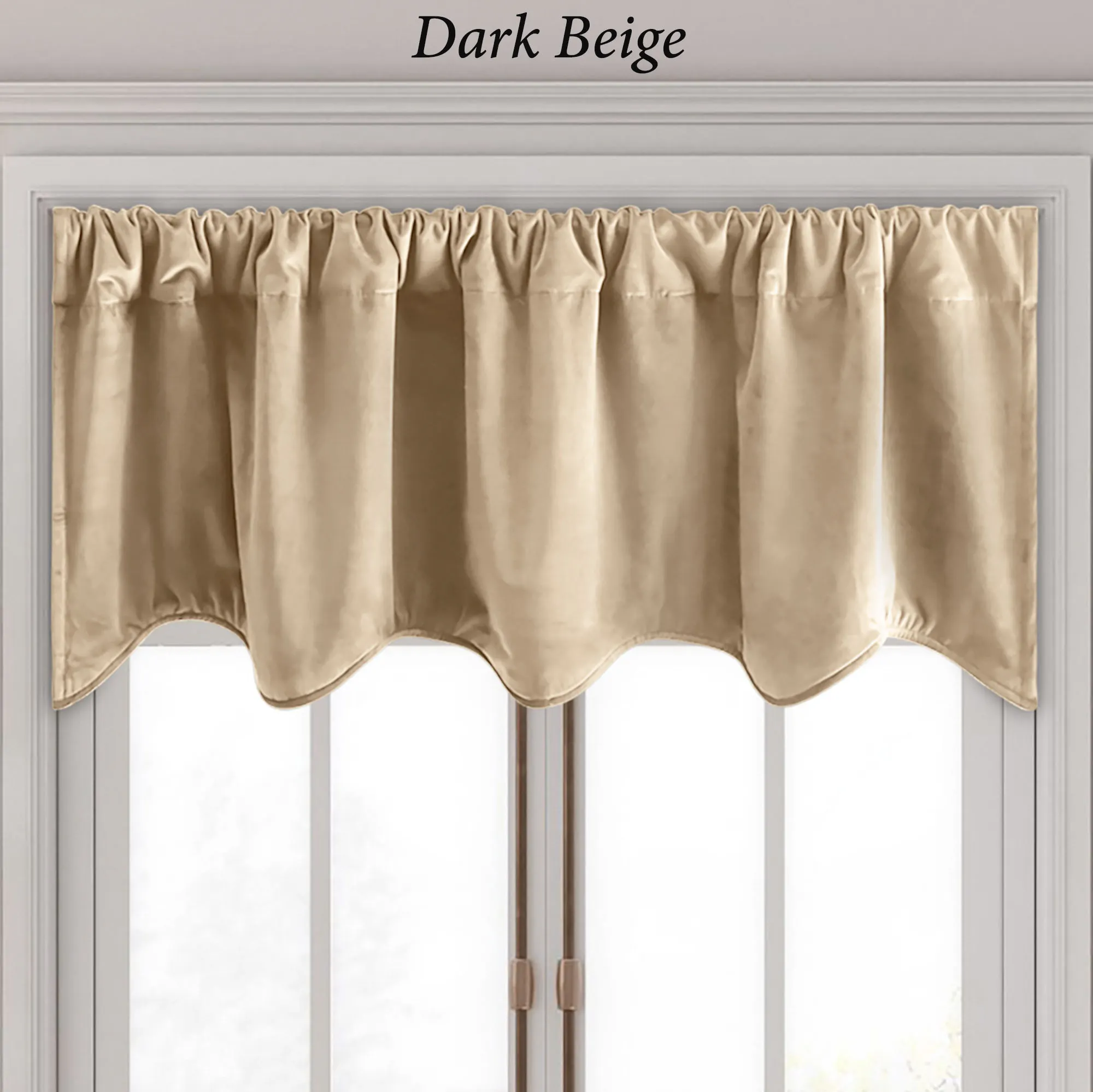 The Lush Velvet Scalloped Valance adorns your window with luxury and elegance. The soft, polyester window valance is lined and has piping along the bottom. Valance has a 3" rod pocket and is 50"Wx17"L. Machine washable. Imported.