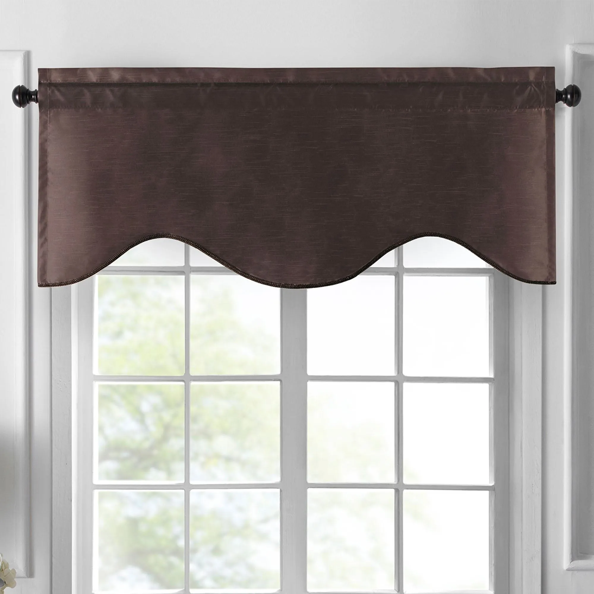 The sophisticated Luverne Window Treatment has a luxurious sheen and a rich texture that will beautifully embellish any room. Window treatment is made from polyester faux silk dupioni. Rod pockets are 3". Choose Curtain Panel or Shaped Valance. The lined Curtain Panel has room darkening, thermal, and noise reducing properties. The lined Shaped Valance has gimp trim. Specify Slate Blue, Light Cream, Gold, or Light Taupe. Machine wash panel and shaped valance. Imported.