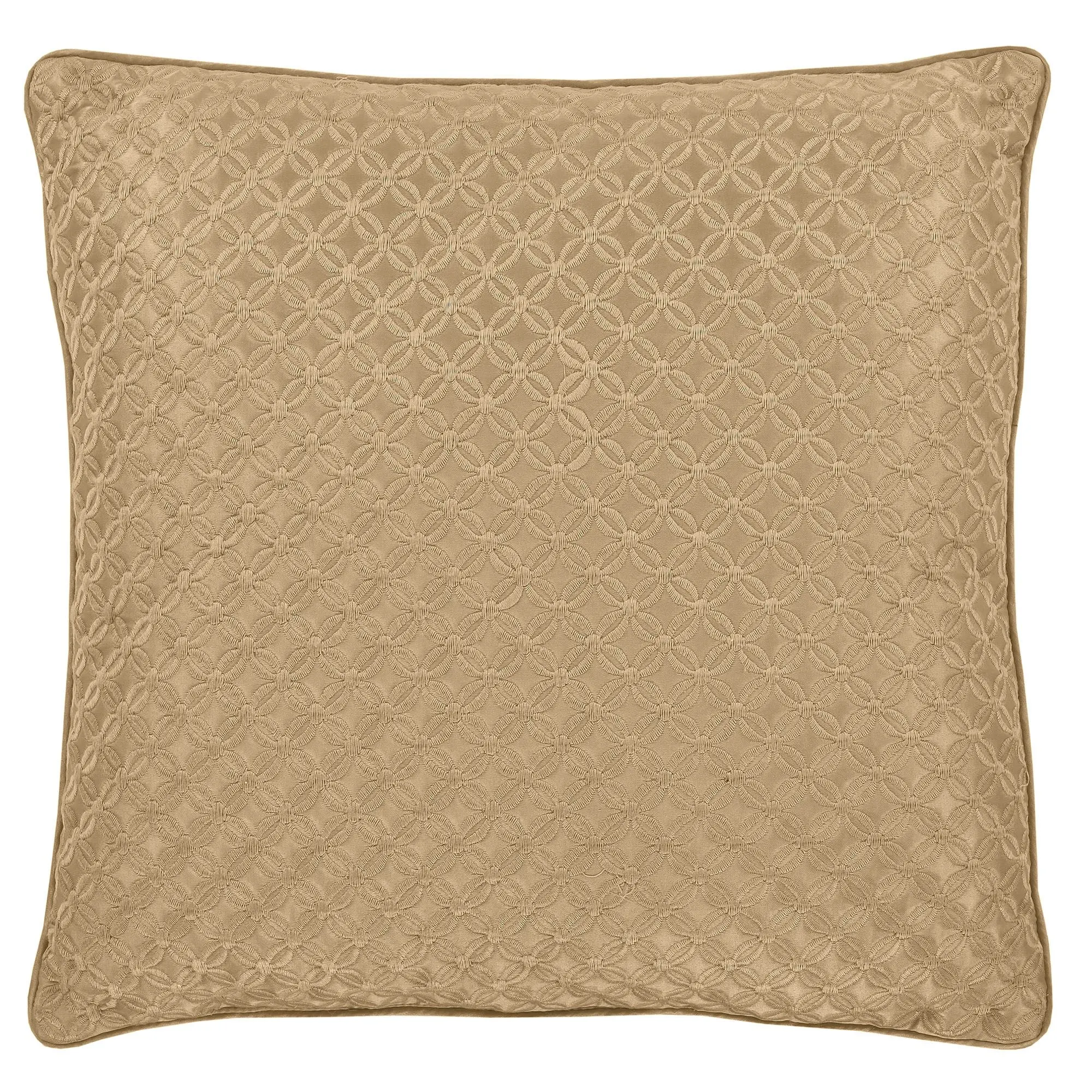 Piped European Sham has a fanning quilted center framed in embroidered foulards; zipper closure.