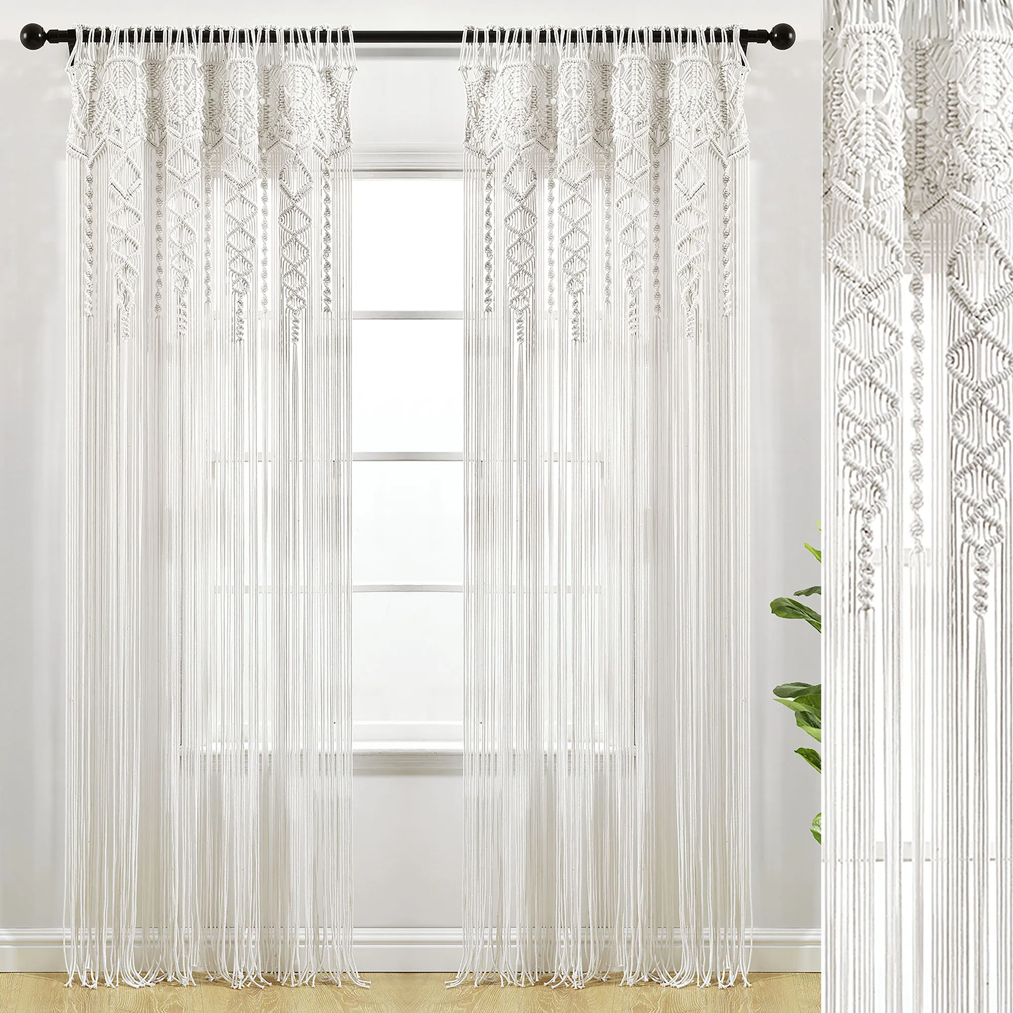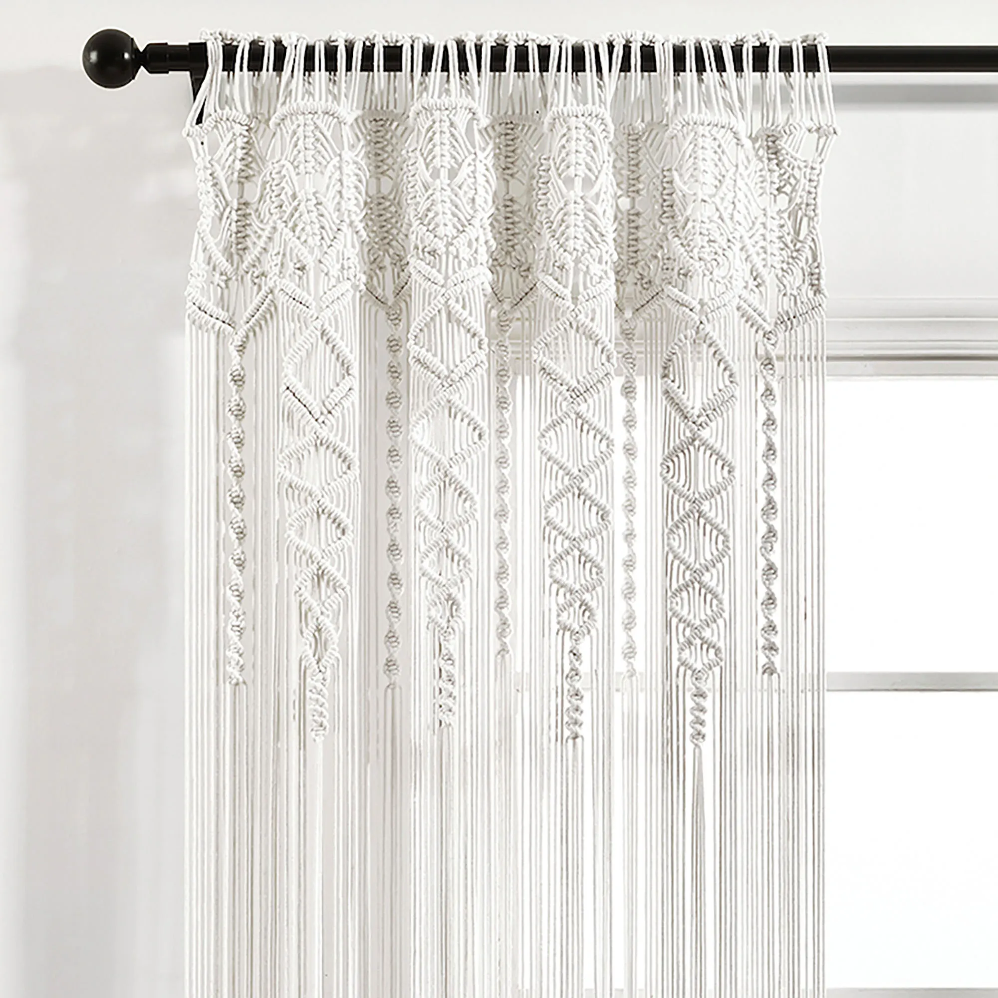 The Macrame Fringed Curtain Panel is made of cotton. Imported.