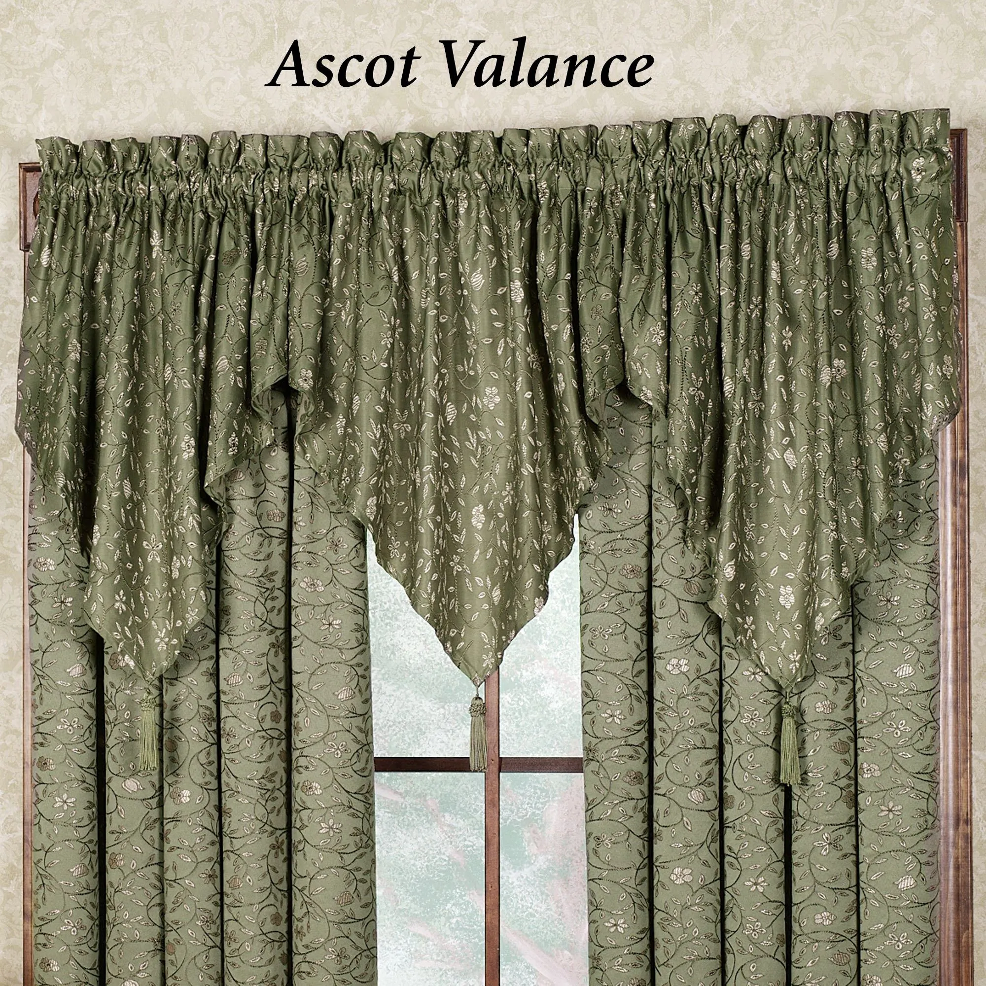 Also available: Tailored Curtain Panel is a vining floral jacquard on a solid background; 1.5" rod pocket. Two panels are shown in the More Views image. Ascot Valance, shown in More Views, is vining florals on solid with coordinating tassel.