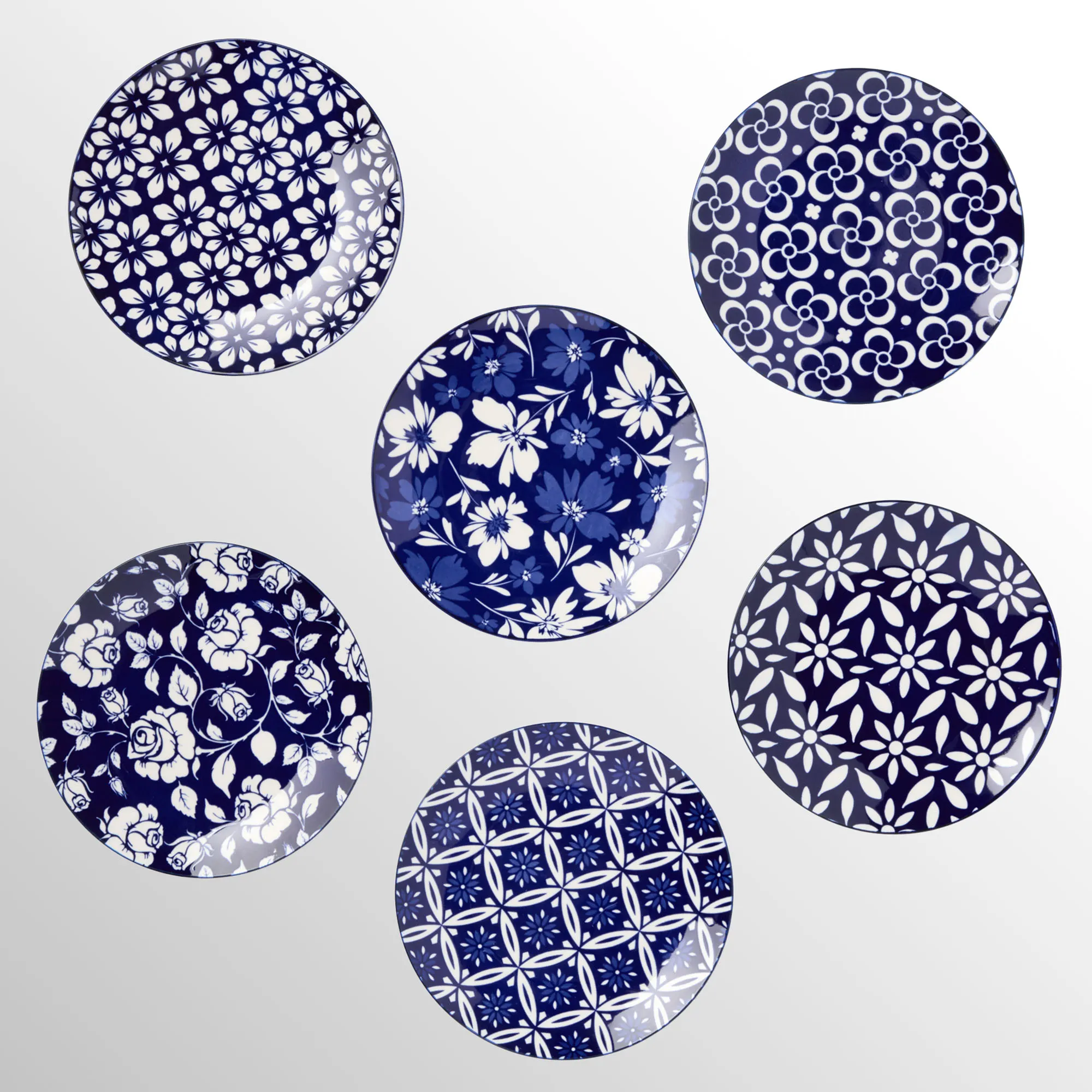 Madison Blue and White Floral Ceramic Dessert Plate Set of 6