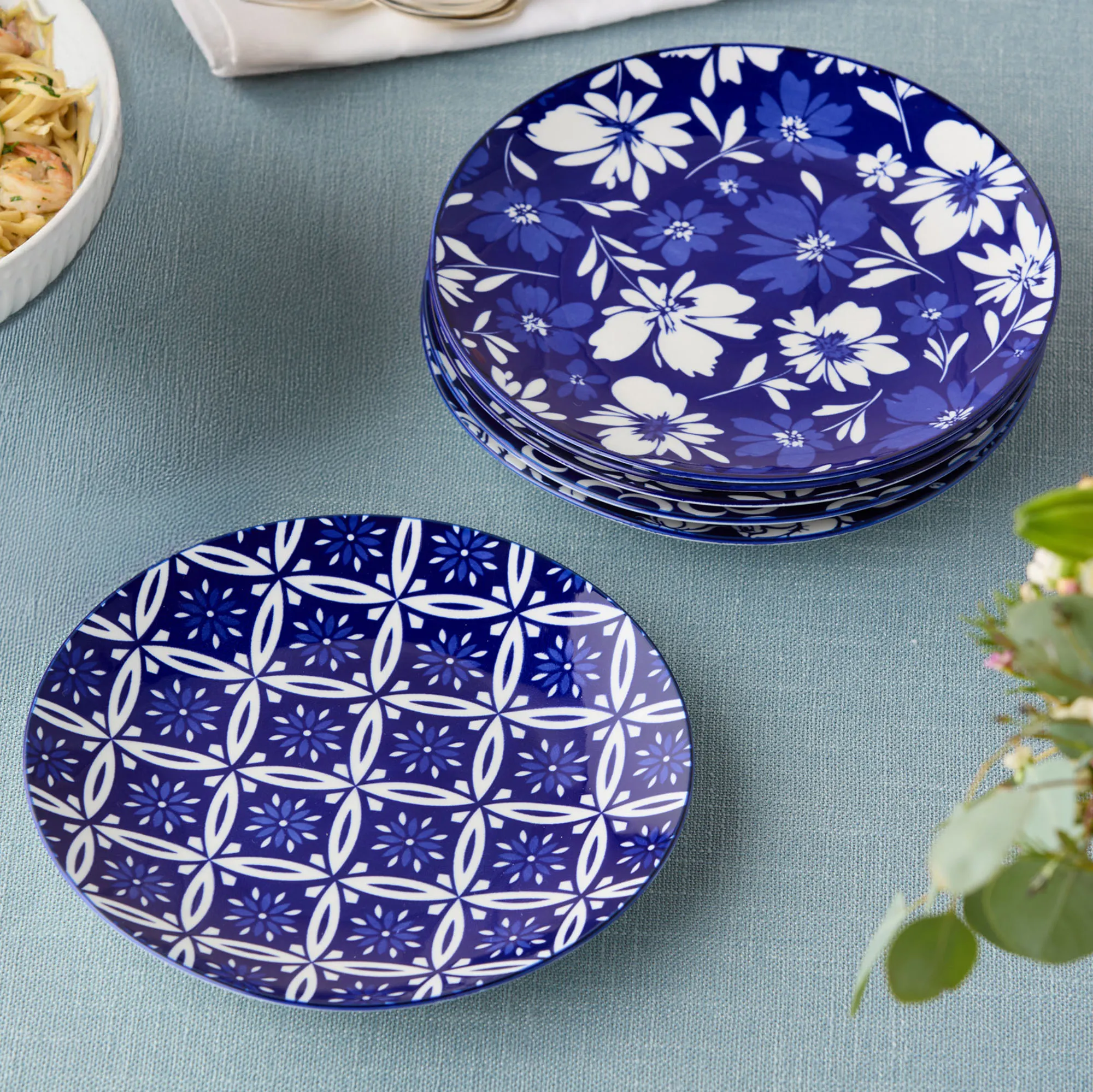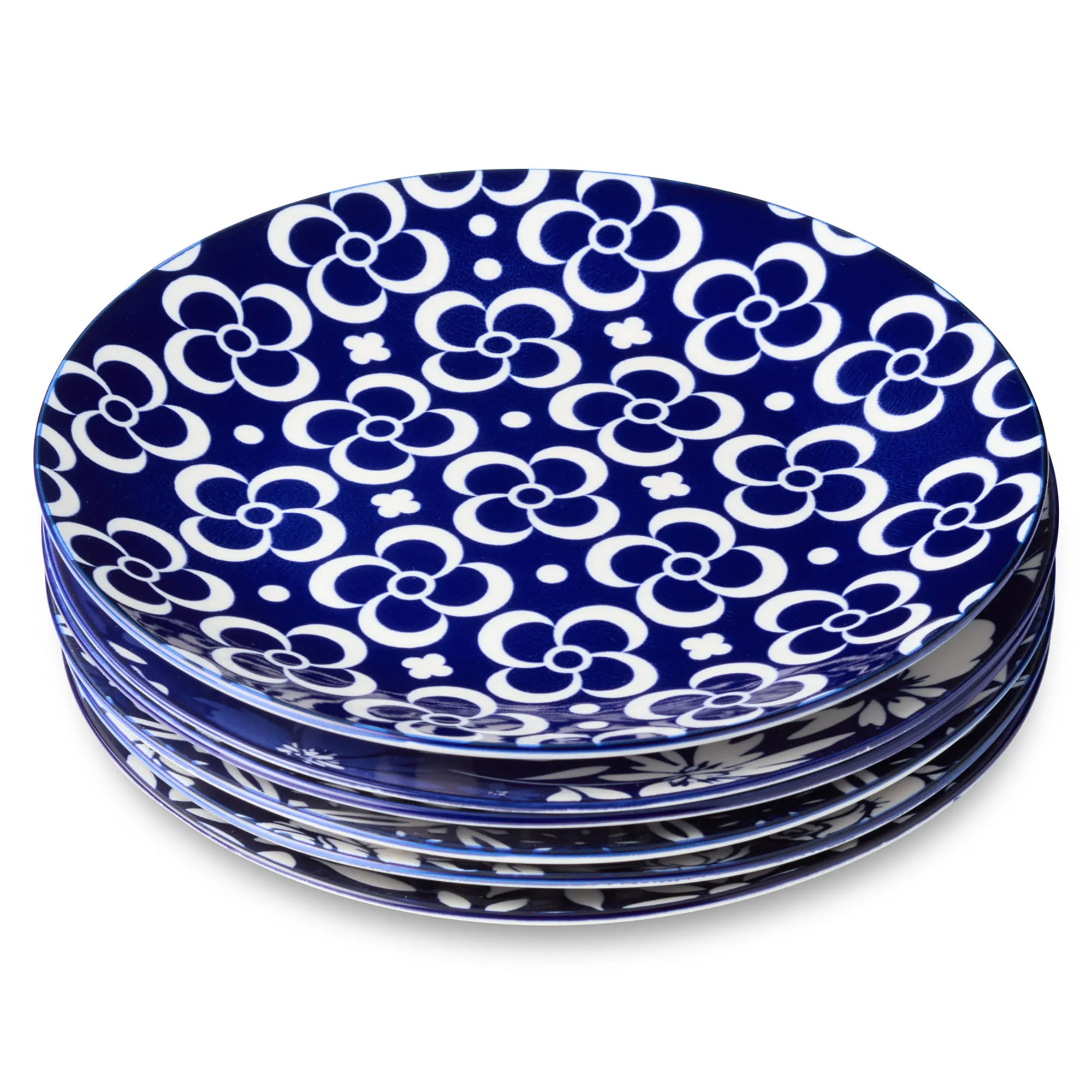 • Various blue and white flower motifs