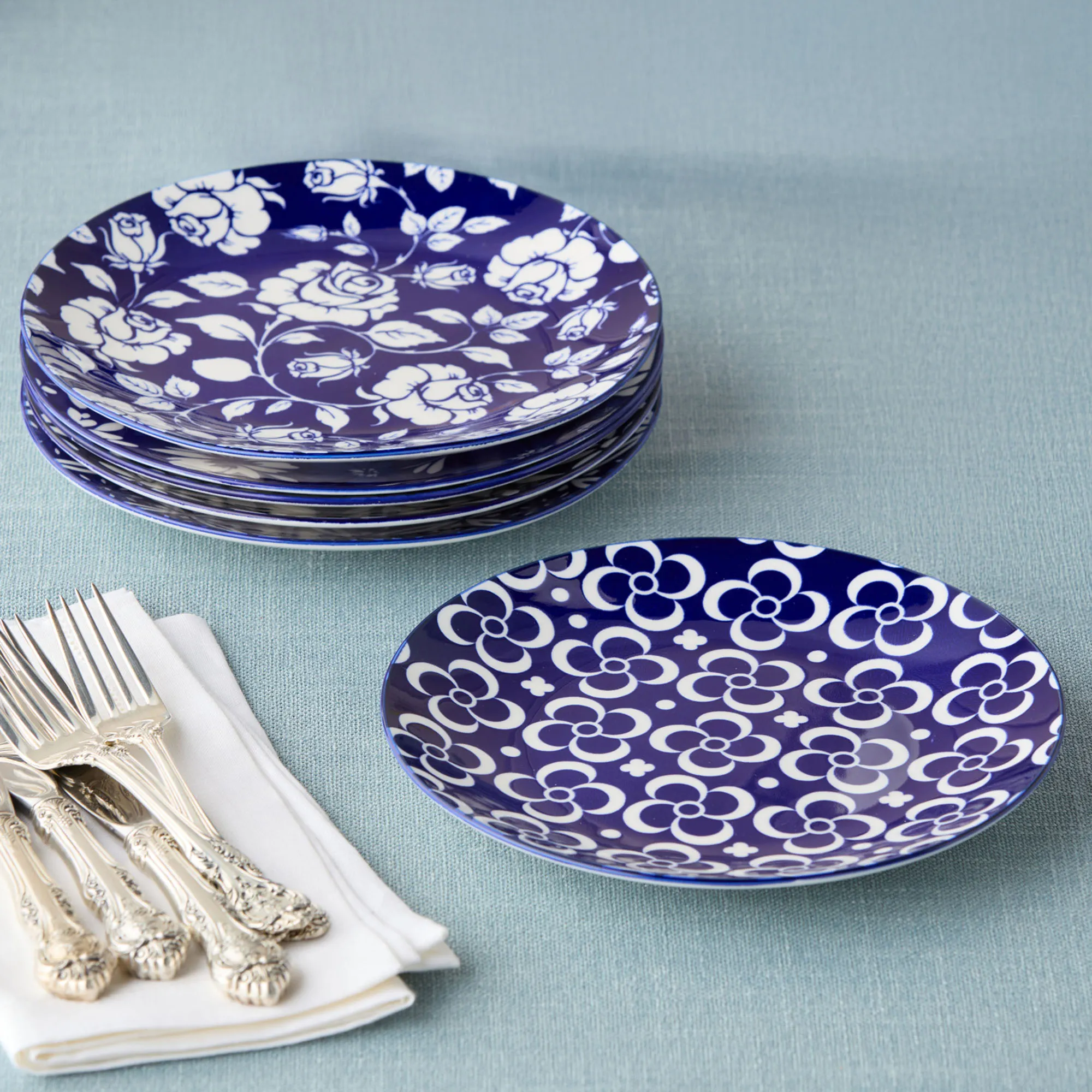 Madison Dessert Plates Blue/White Set of Six