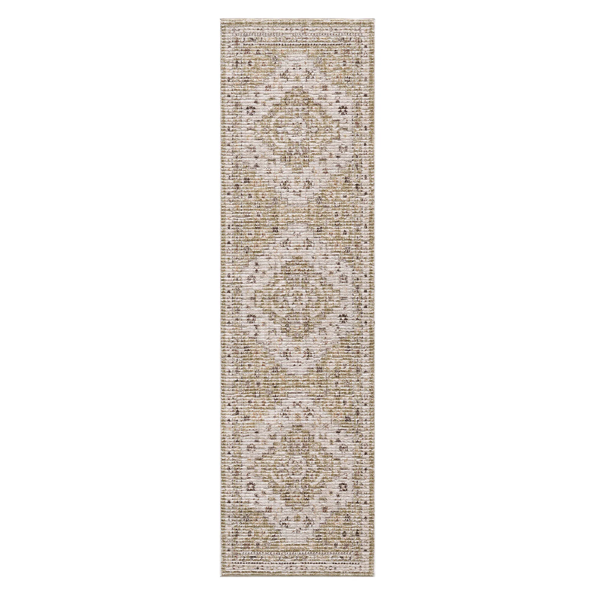 Traditional Turkish-inspired styling and inviting neutral shades bring luxurious flair to the Maida Rug. Power-loomed from polyester, the .5" thick rug features central angular medallion designs surrounded by elaborate layered borders brimming with classic floral and geometric motifs. Multi-tonal hues of ivory, tan, eucalyptus, mauve, and maroon complement a variety of decor styles. We recommend professional cleaning by a rug cleaner. Imported.