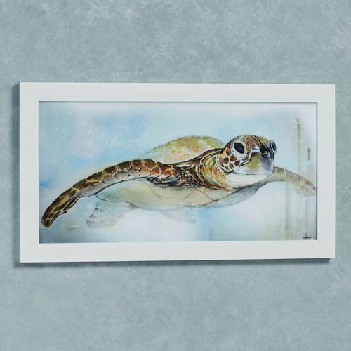 The Majestic Sea Turtle Framed Wall Art has an epoxy overlay and a polystyrene frame.