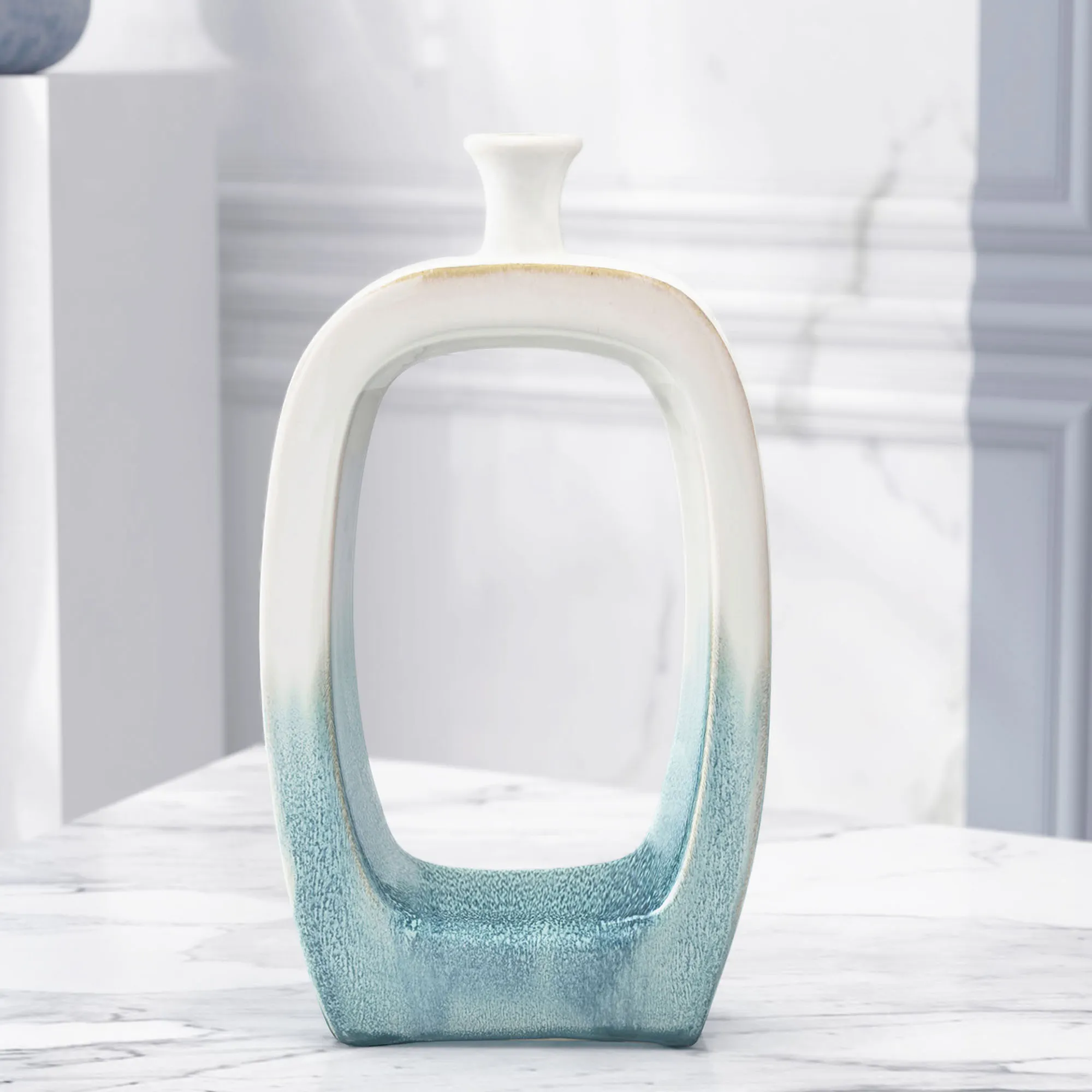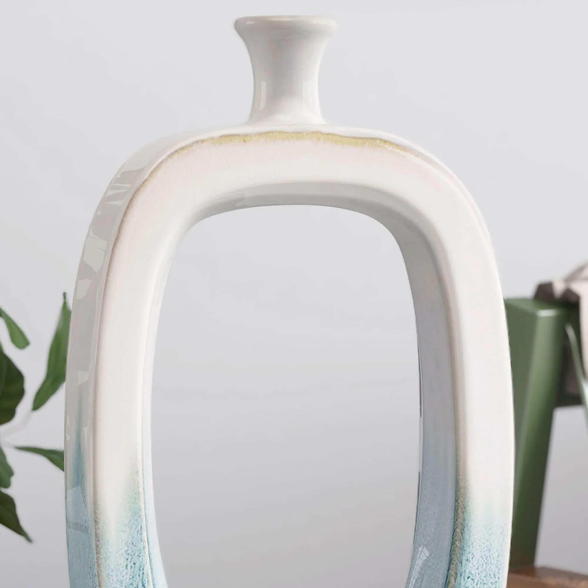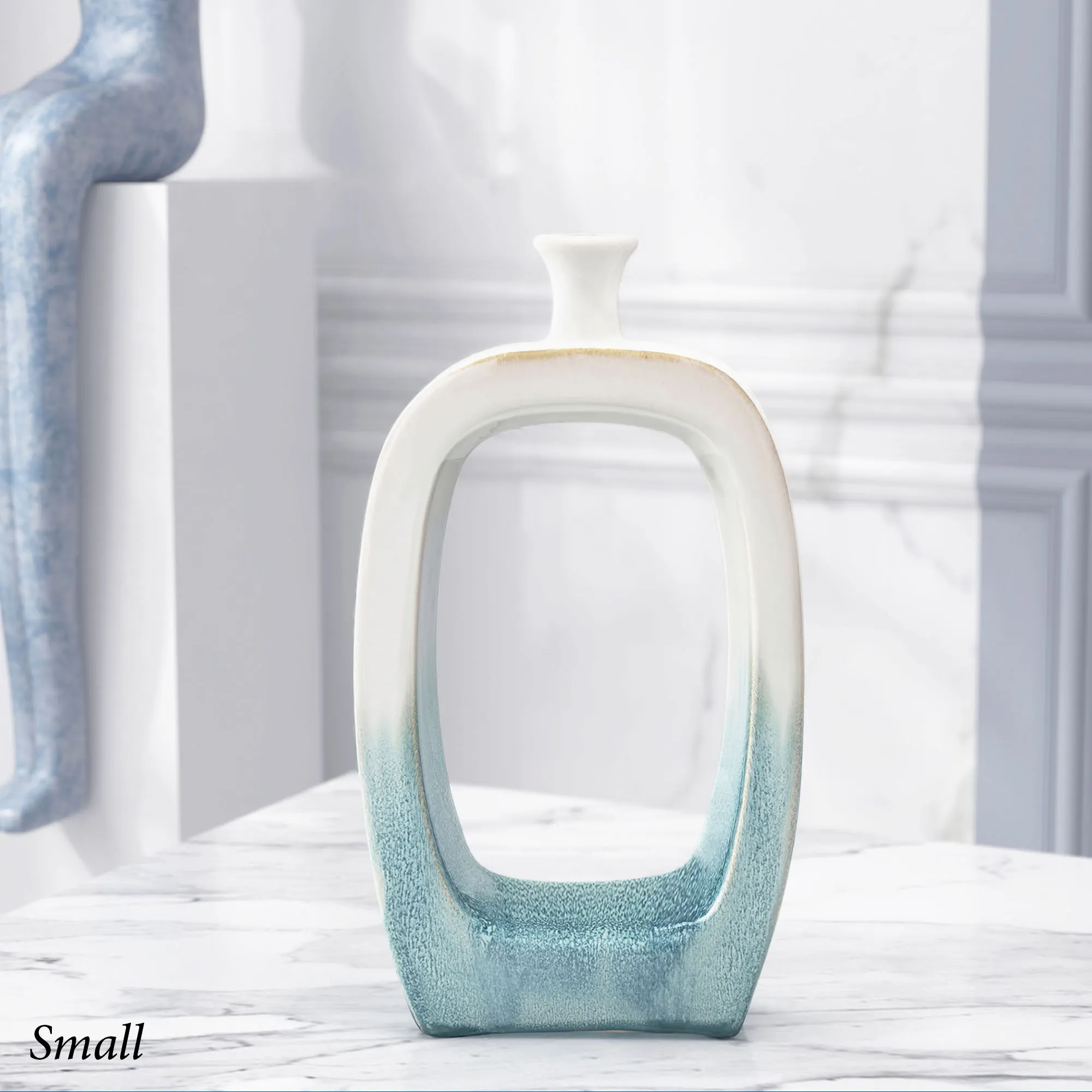 Makara White and Aqua Ombre Openwork Ceramic Vase