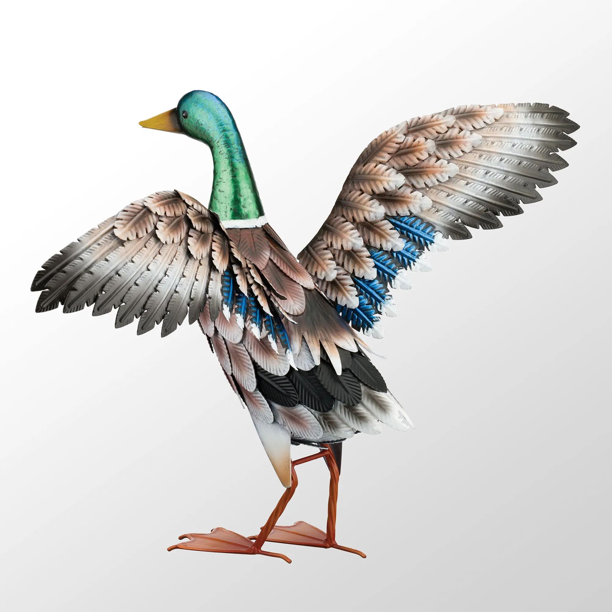 The Mallard Duck Sculpture artfully captures the beauty of this graceful bird. Beautifully handcrafted of metal, this duck has intricate pressed feather details, a powder-coat finish, and a realistic look. Colors include shades of gray, black, blue, green, yellow, brown, and white. Indoor or outdoor year-round use. Measures 24.5"Wx16"Dx20"H.