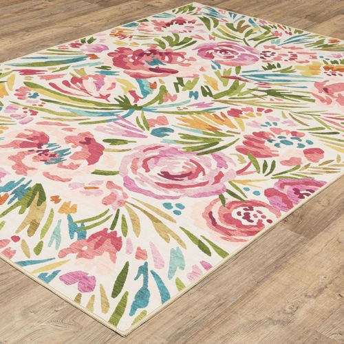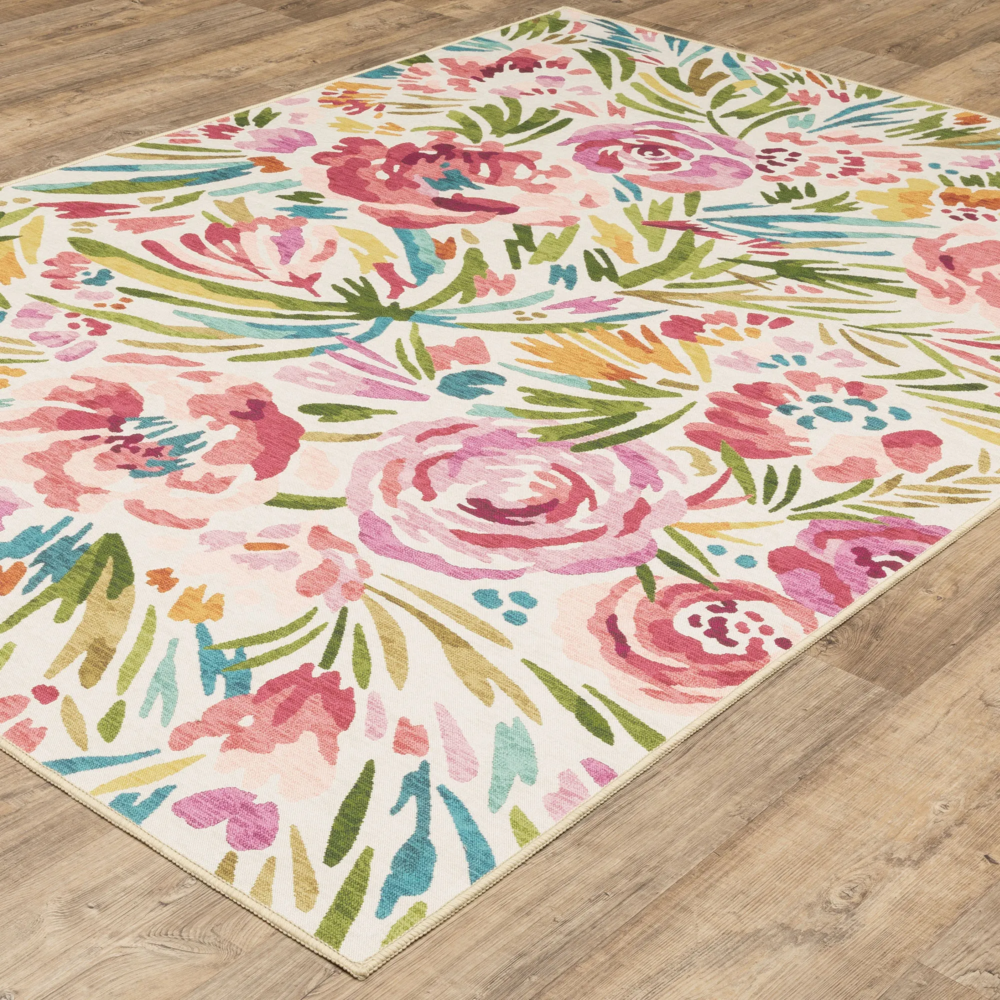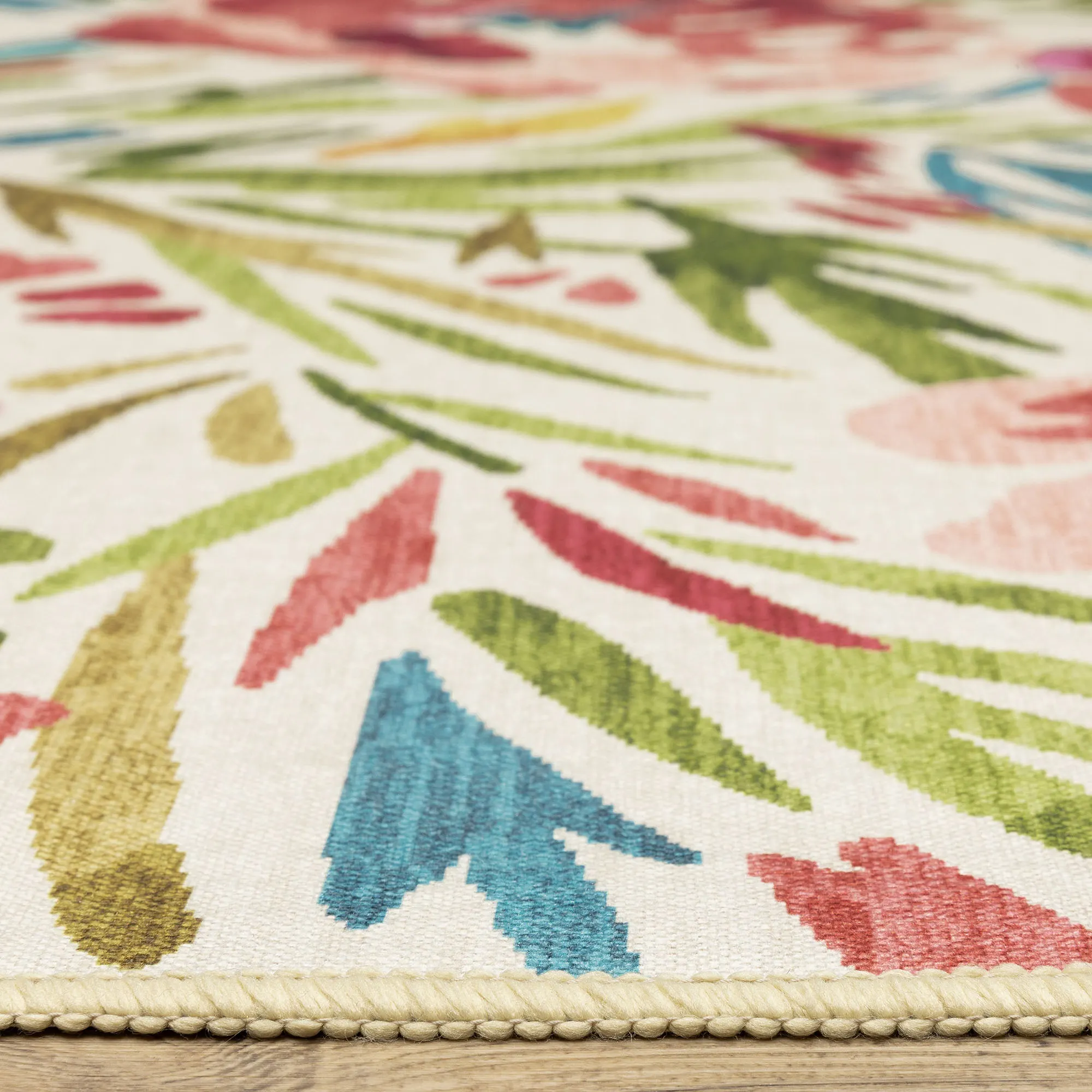 Maloney Machine Washable Stain Resistant Colorful Floral Indoor Outdoor Rugs
