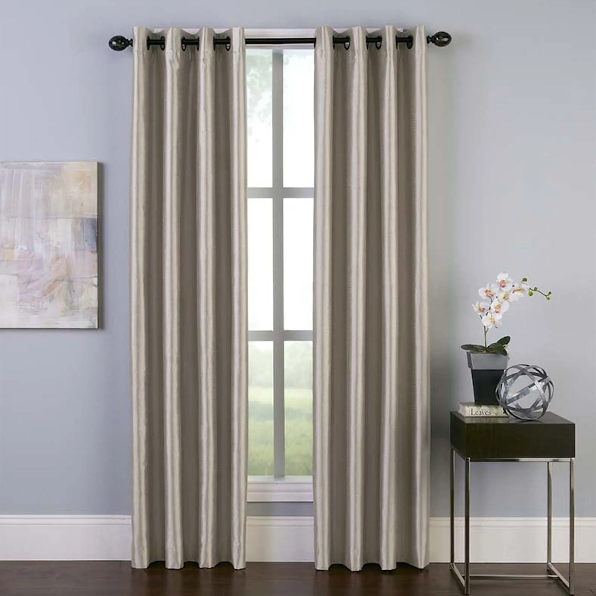 Malta Faux Silk Room Darkening Grommet Curtain Panel