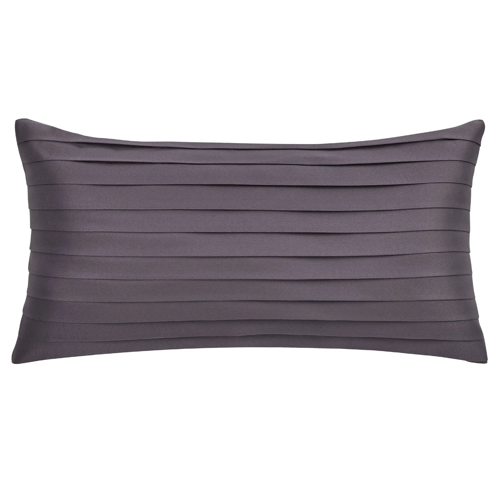 Pillows: Spot clean. Tailored Rectangle is pleated grape. The reversible, handmade Round is pleated grape with a button-tuft center and a 3" side gusset. The tailored 18" Square has embroidered quatrefoil outlines on grape. The piped 20" Square has damask and reverses to scrolls and stripes.
