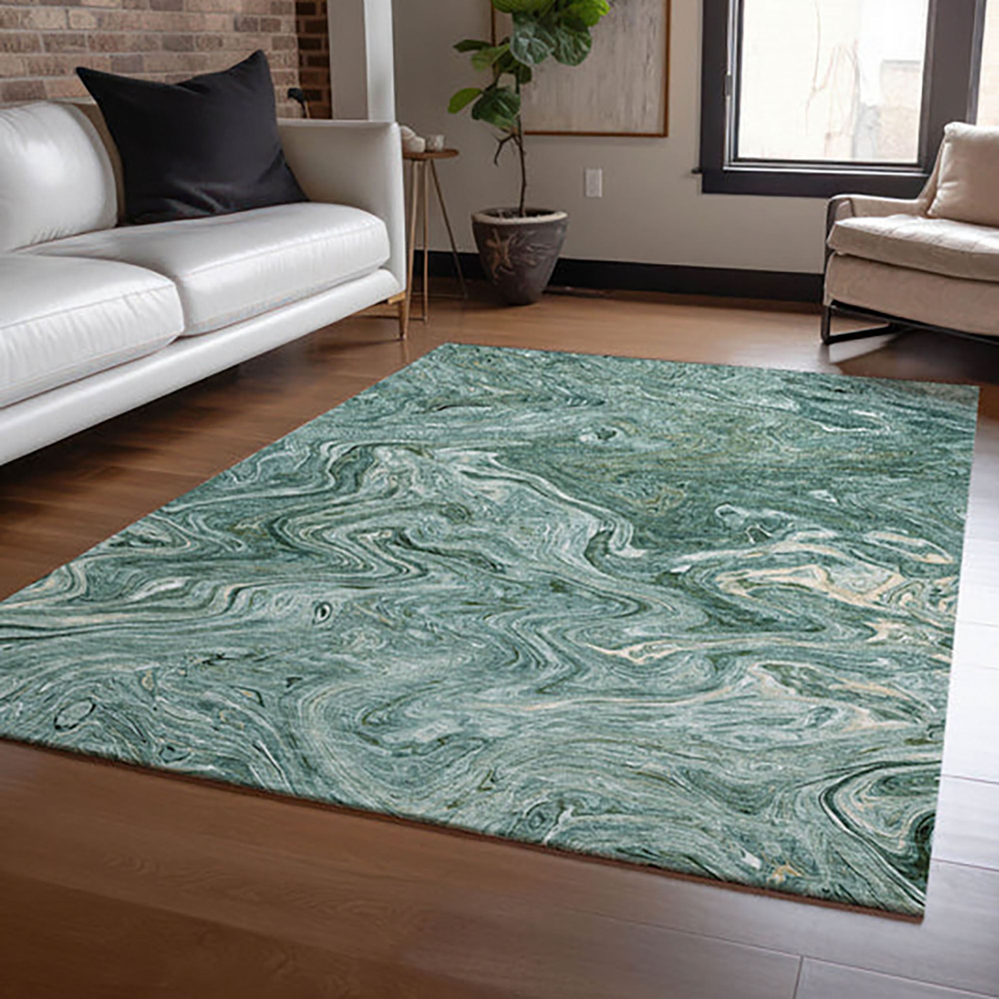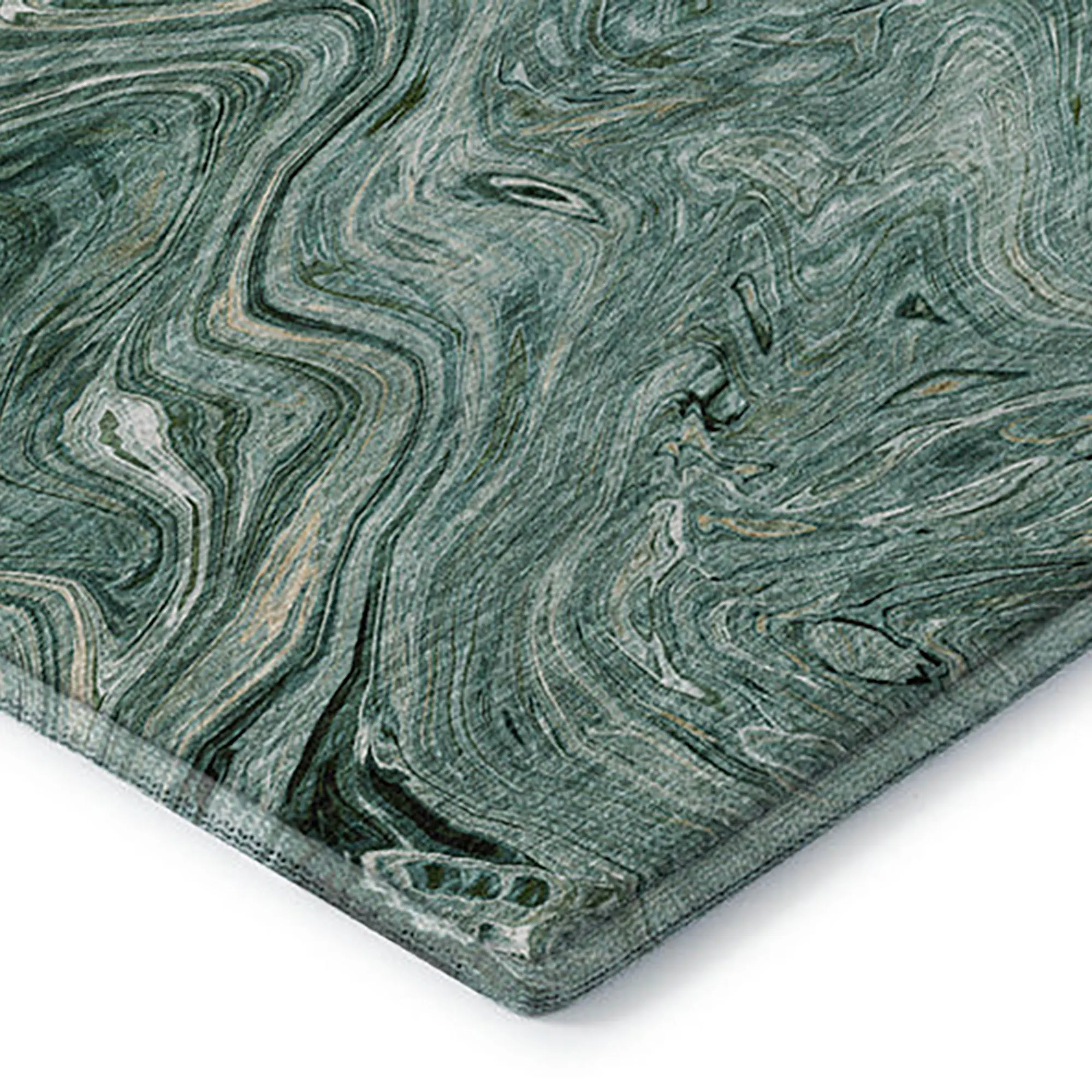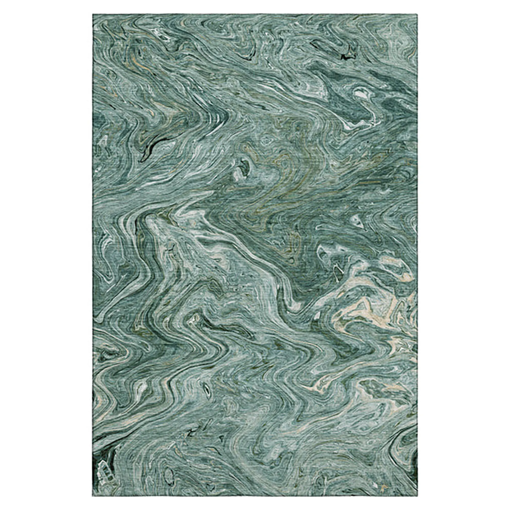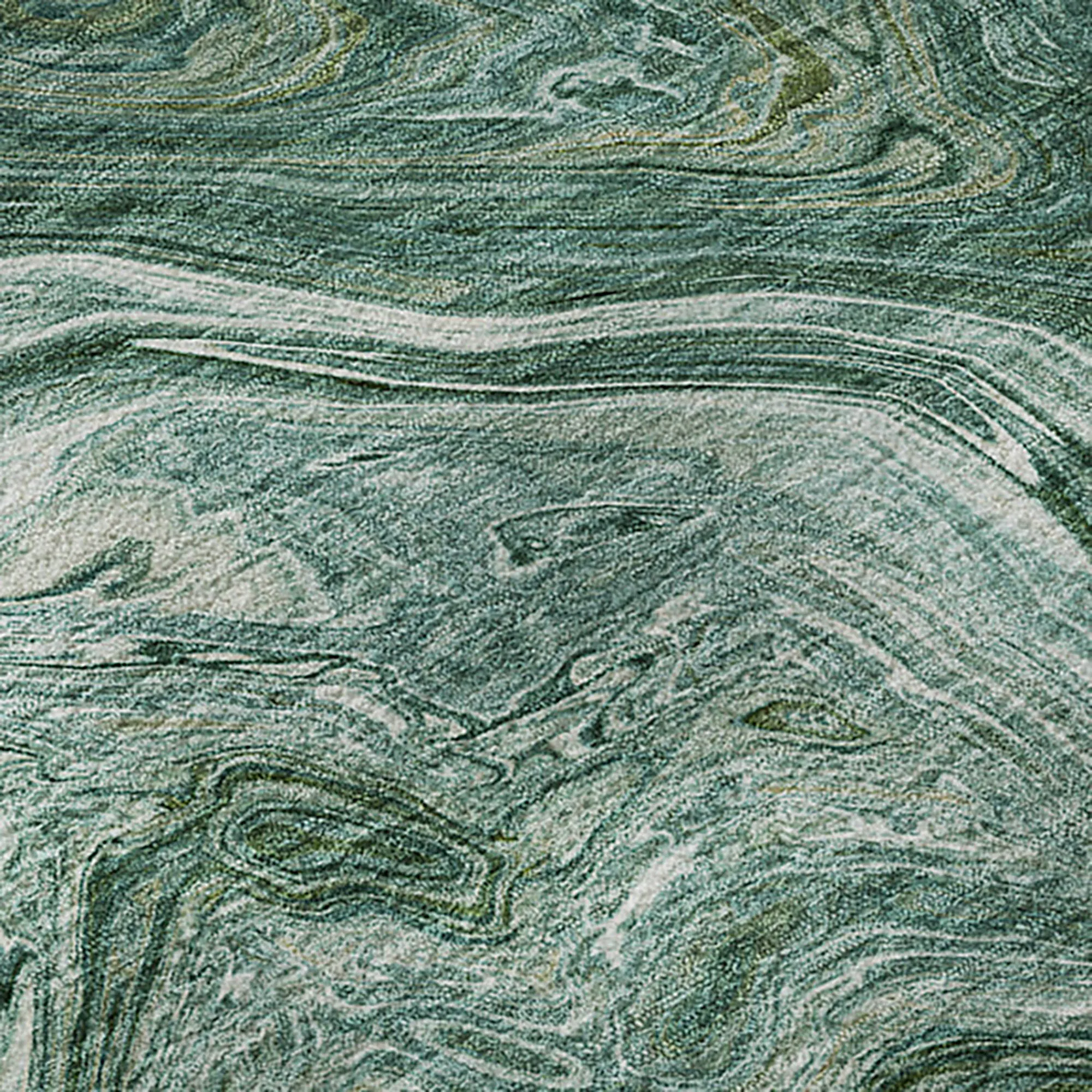 Tonal hues flow and run through the Marbled Maze Rug to create an artistic masterpiece upon the floor of your indoor or covered outdoor space. Power-loomed from polyester, the .5" thick plush rug features a printed swirling marbled abstract look that resembles a poured paint puddle. Teal has aqua, green, and ivory colors. Taupe has beige, brown, mocha, and ivory tones. Backing is a nonskid rubber-coated cotton. The machine washable rug can be used in your indoor or covered outdoor space. Machine wash or spot clean and rinse with a garden hose. Imported/USA.