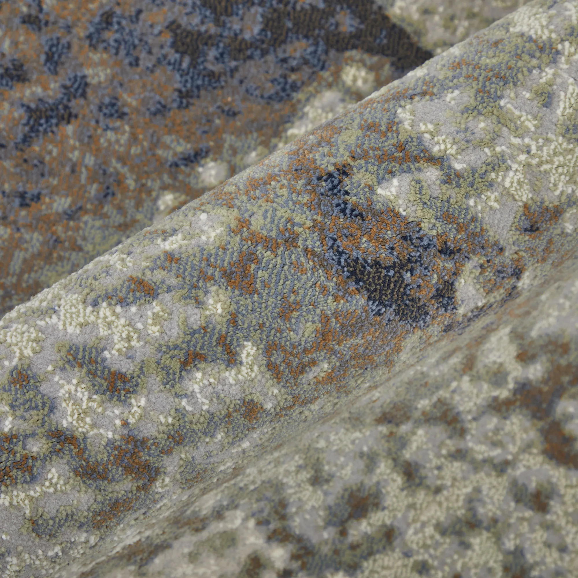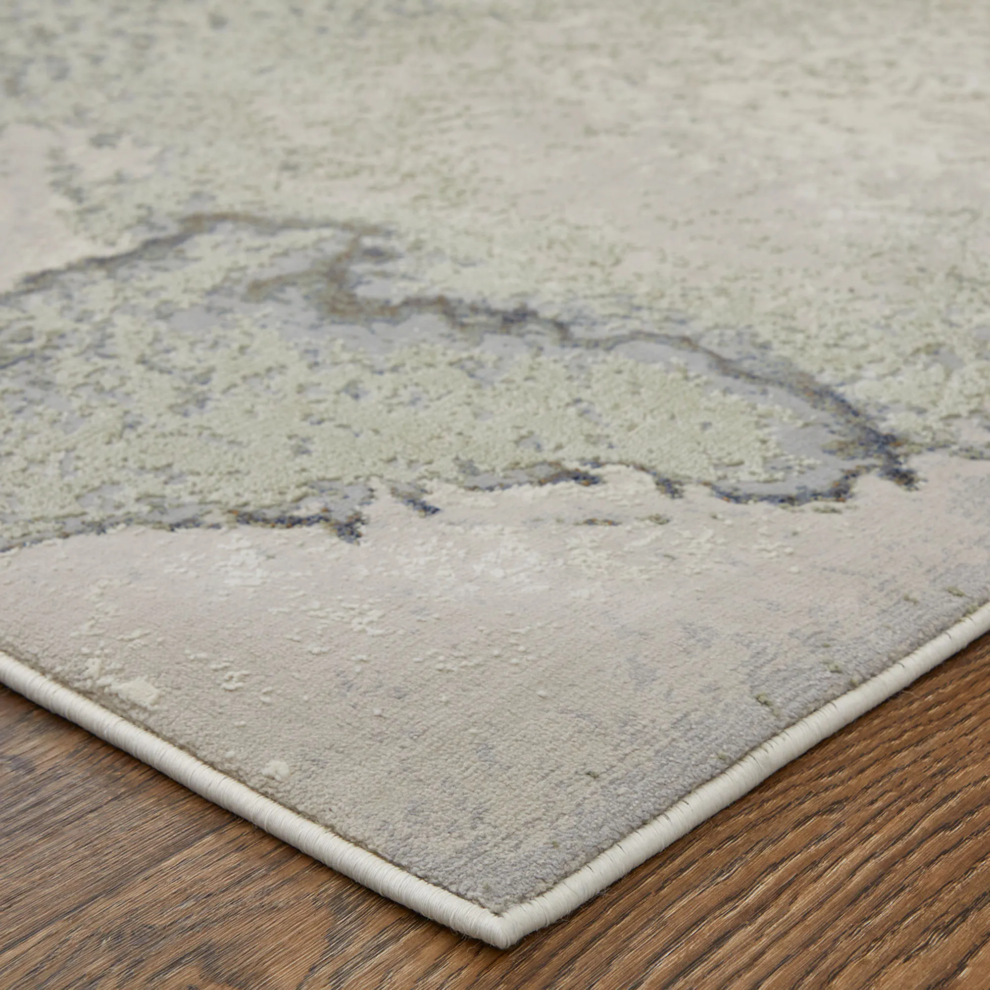 Splatter designs add intrigue to the Marcel Rug. The power-loomed polypropylene/polyester area rug, .39" thick, has a cut high-low abstract design. The rug is stain-, fade-, and water-resistant and is kid- and pet-friendly. Colors include shades of taupe, gray, green, ivory, beige, and blue. Backing is latex. We recommend professional cleaning by a rug cleaner. Imported.