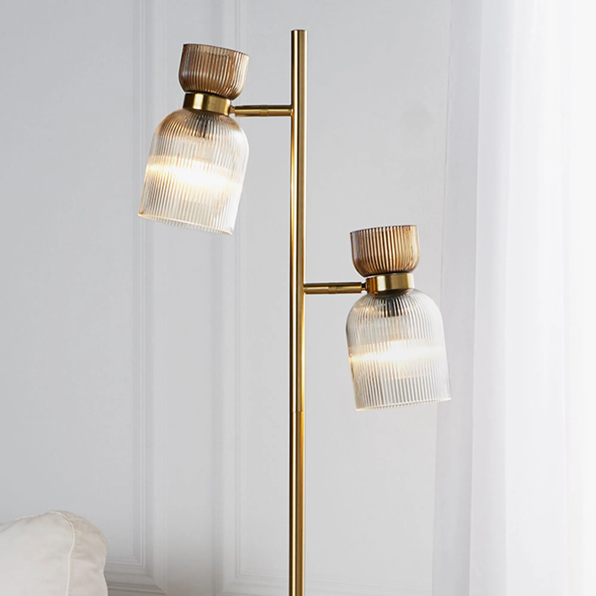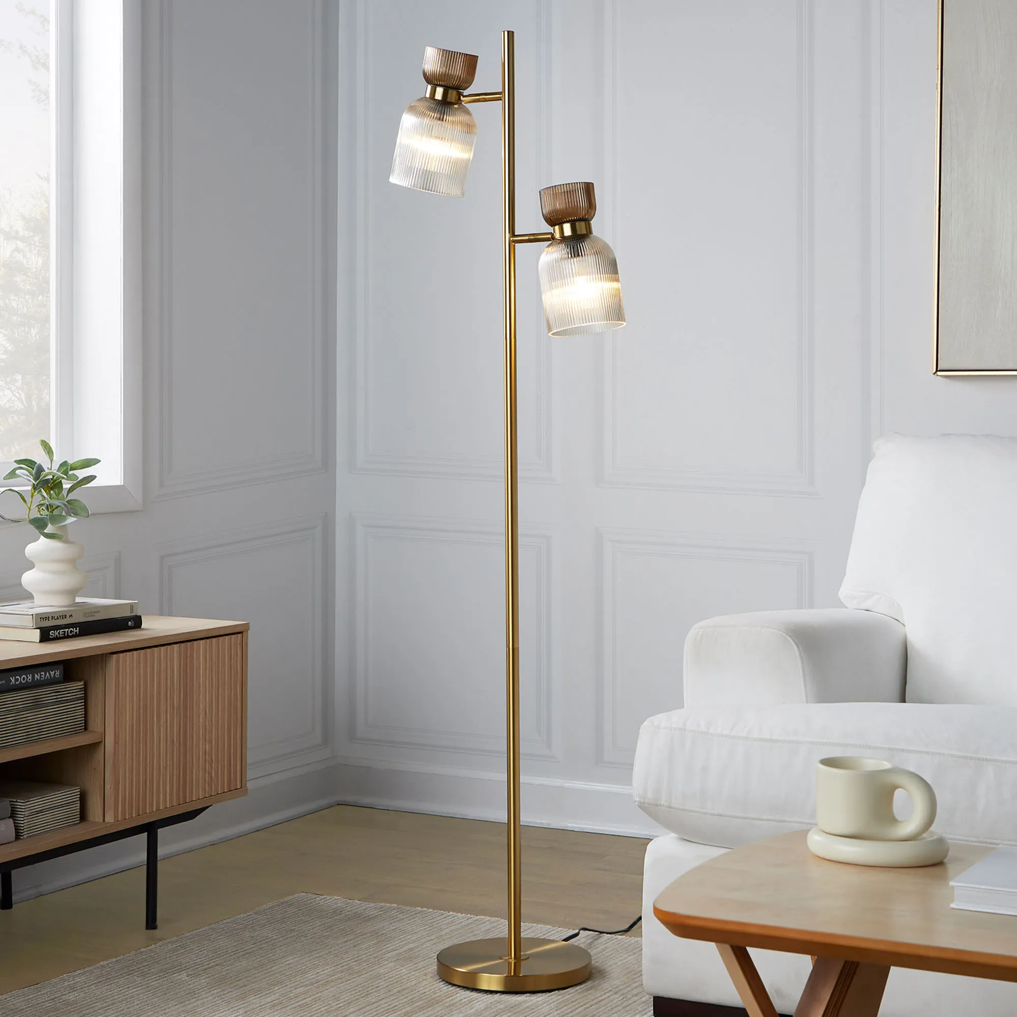 Marcella Gold Metal Floor Lamp with Two Smoked Glass Shades