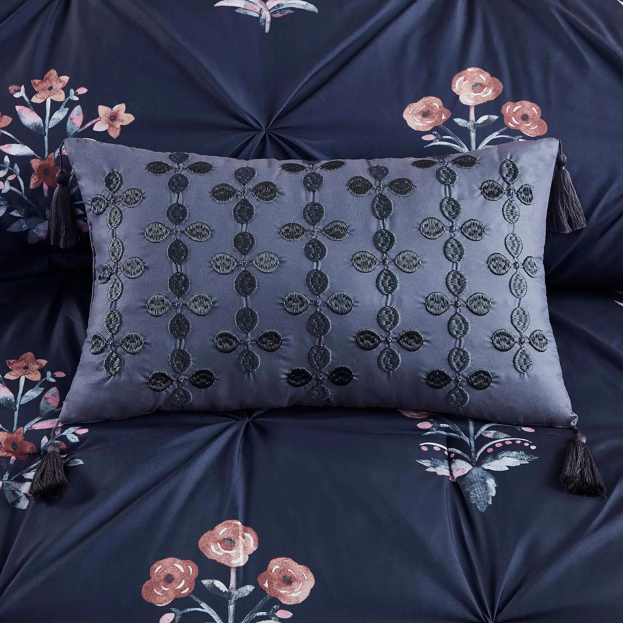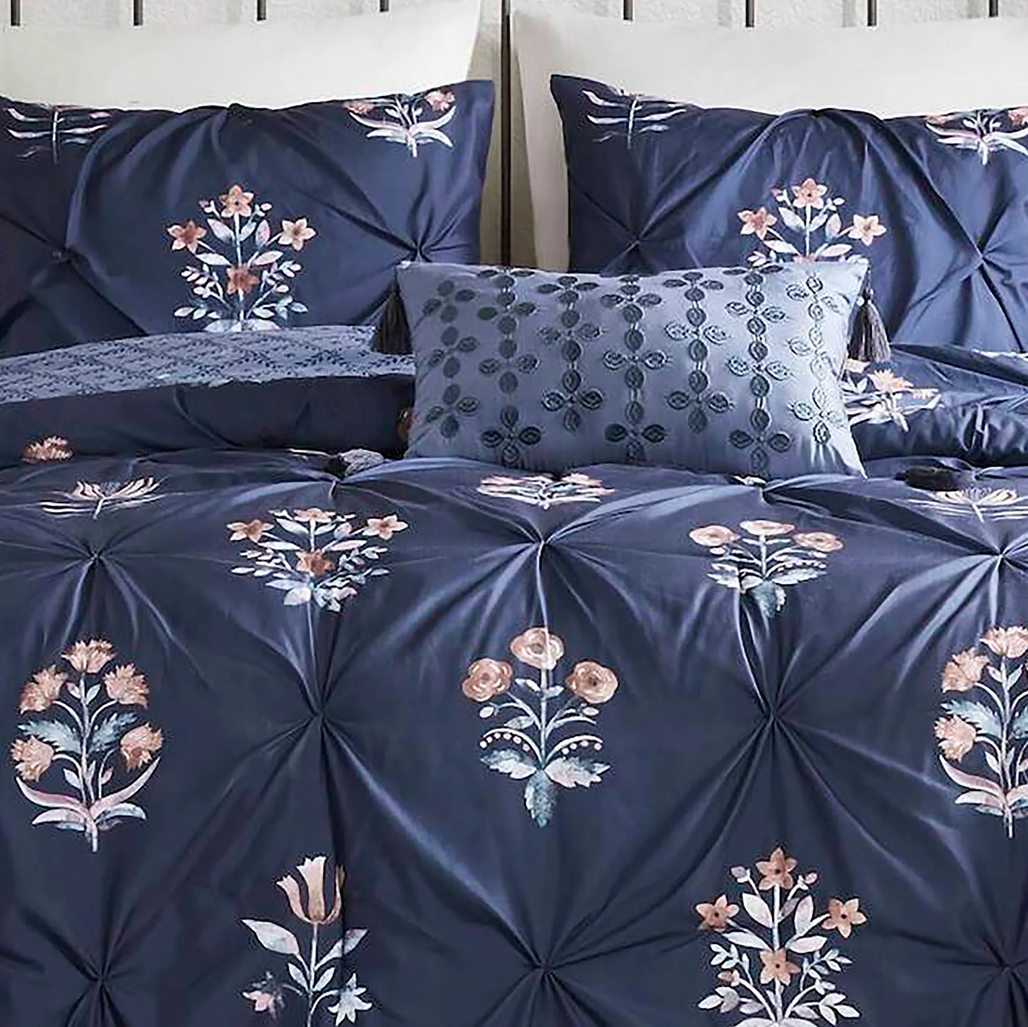 • Charming navy floral bedding