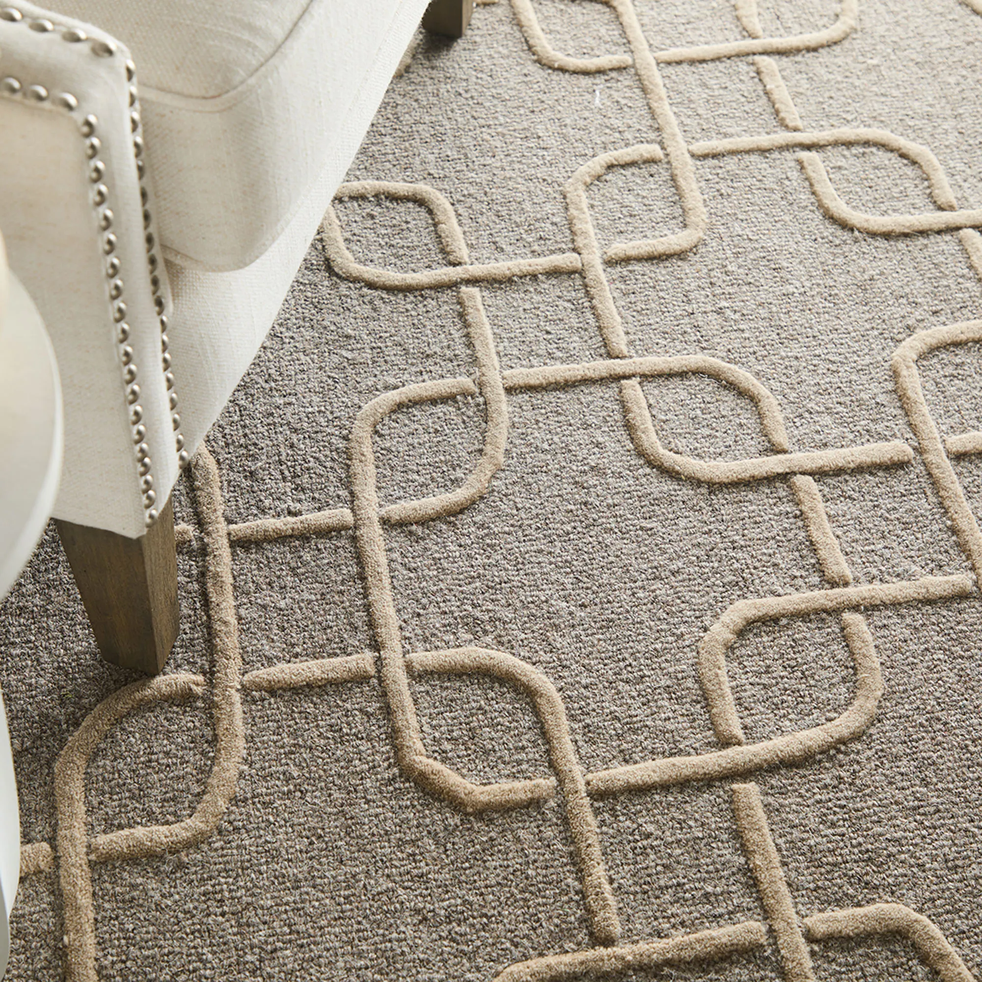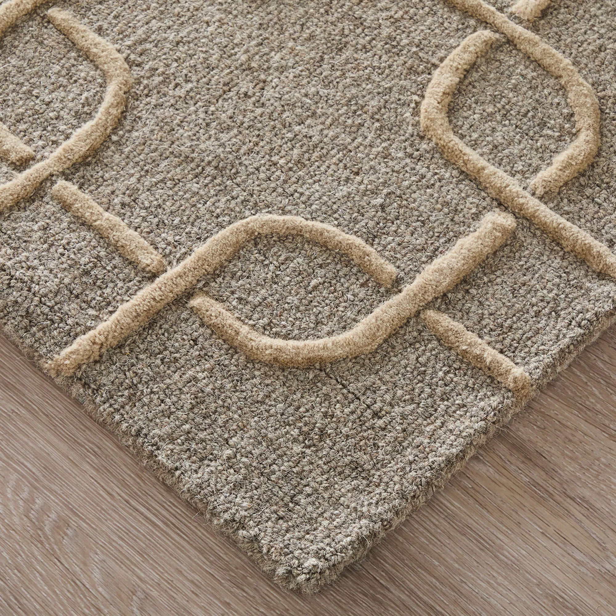 Casual charm styles the Margaux Area Rug with an inviting appeal. Hand-hooked from wool, the .67" thick rug features an interlocking geometric latticework that adds dimensional texture throughout the hi-low pile. The beige motifs pop from the gray background to create a neutral-toned beautiful floorcovering. Backing is cotton. We recommend professional cleaning by a rug cleaner. Imported.