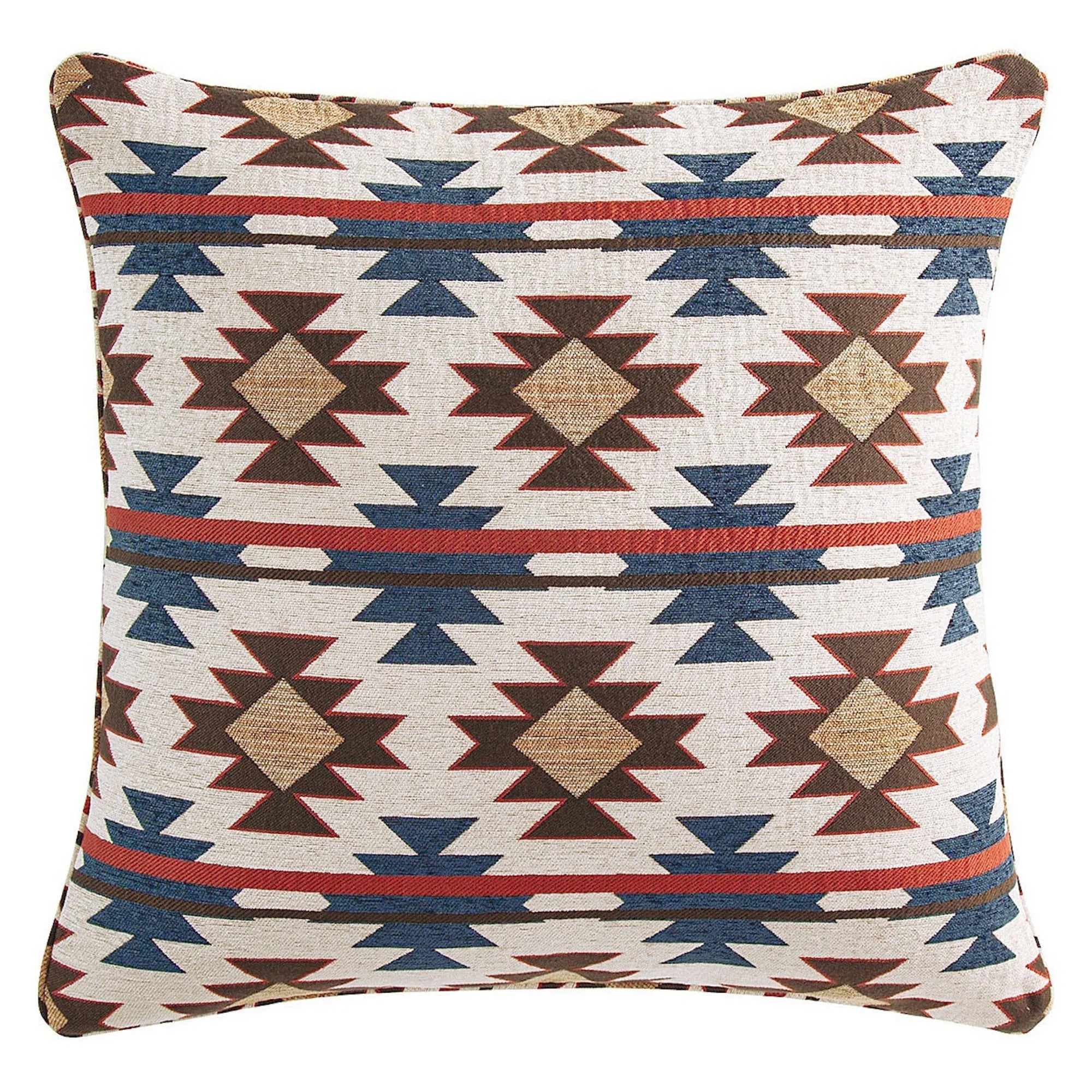 The reversible European Sham has woven chenille Southwestern motifs on ivory chenille, piped ends, and a zipper closure.