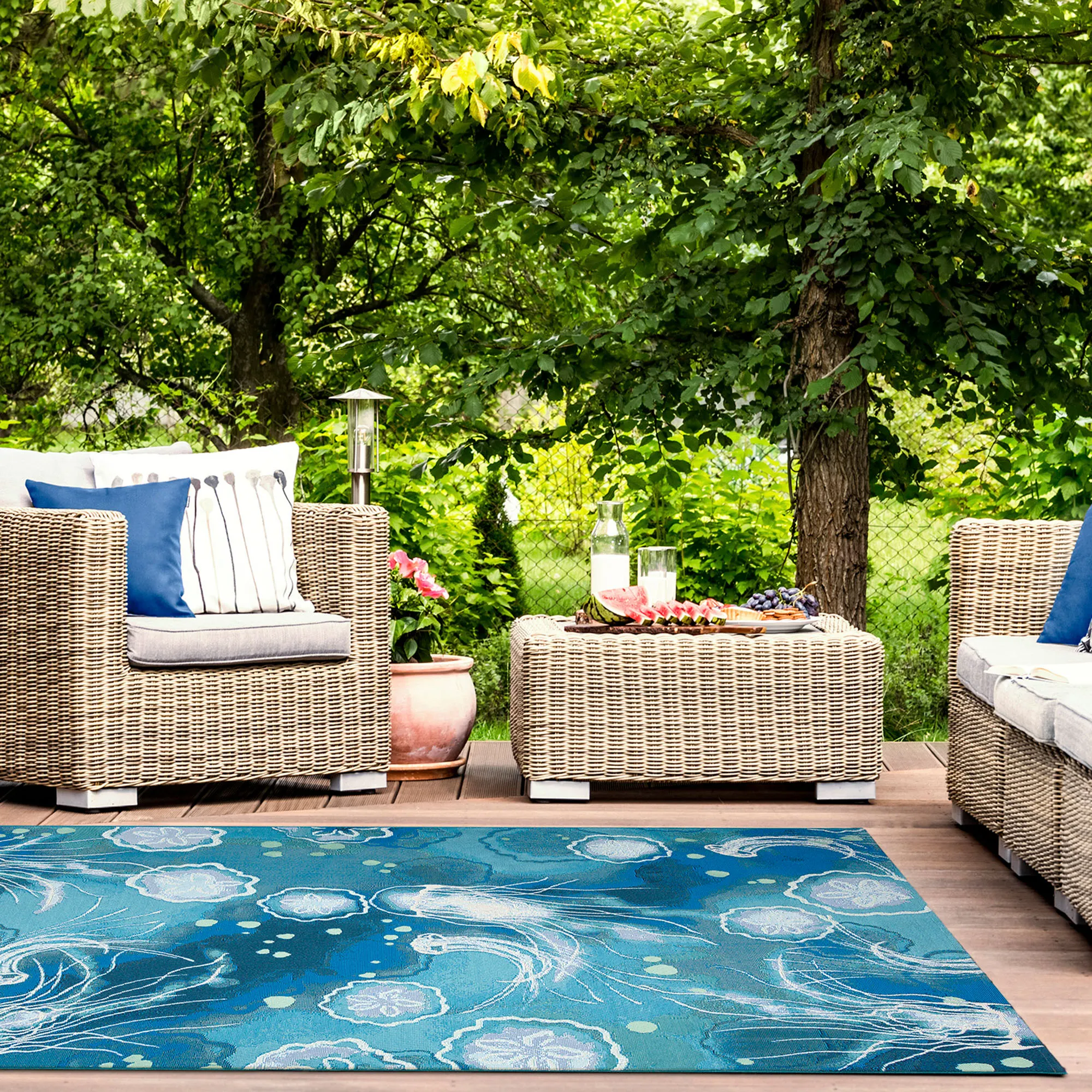 Marina Blue Jellyfish Indoor Outdoor Rugs