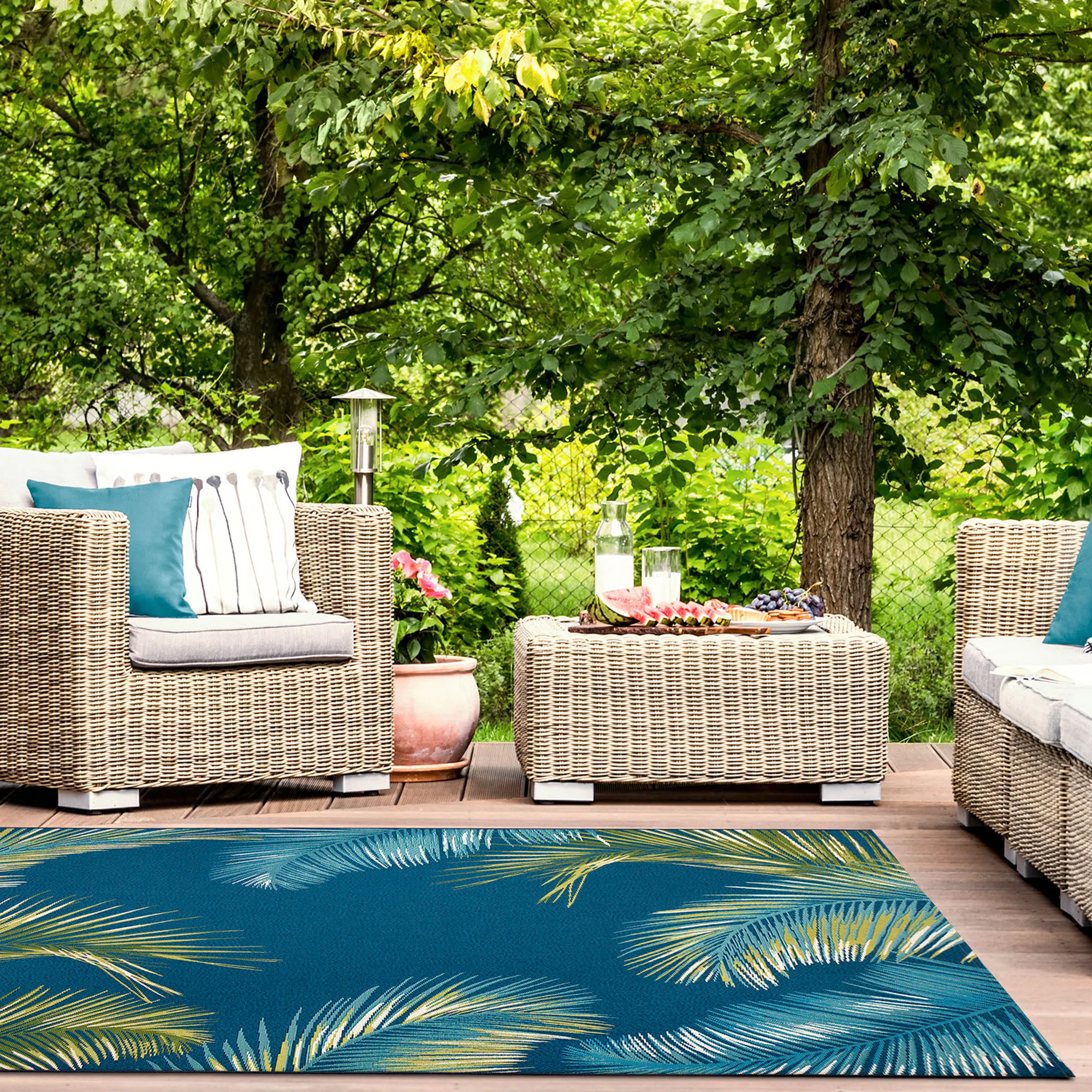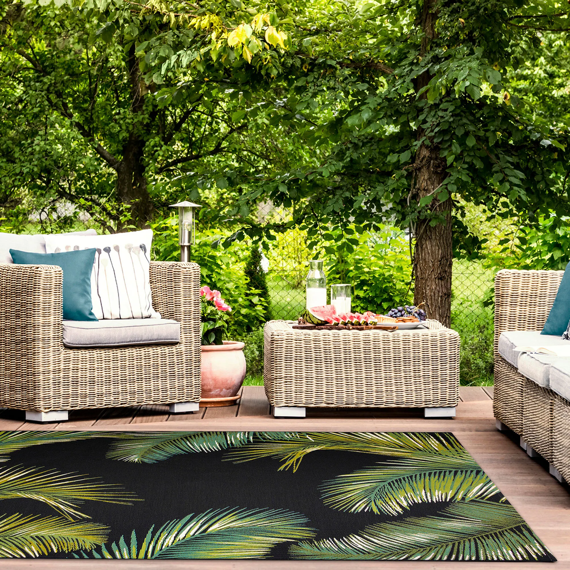 • Polypropylene/polyester tropical area rug