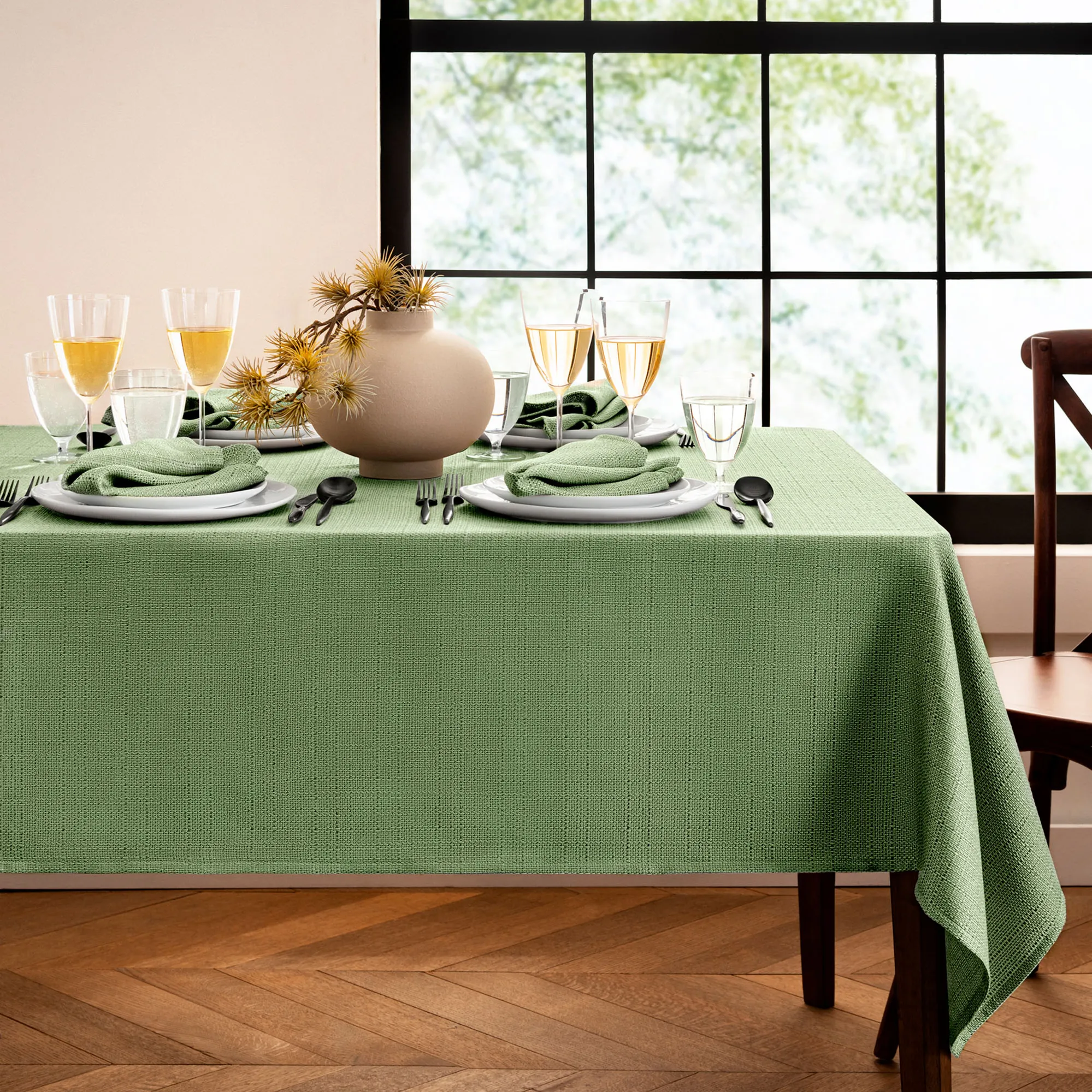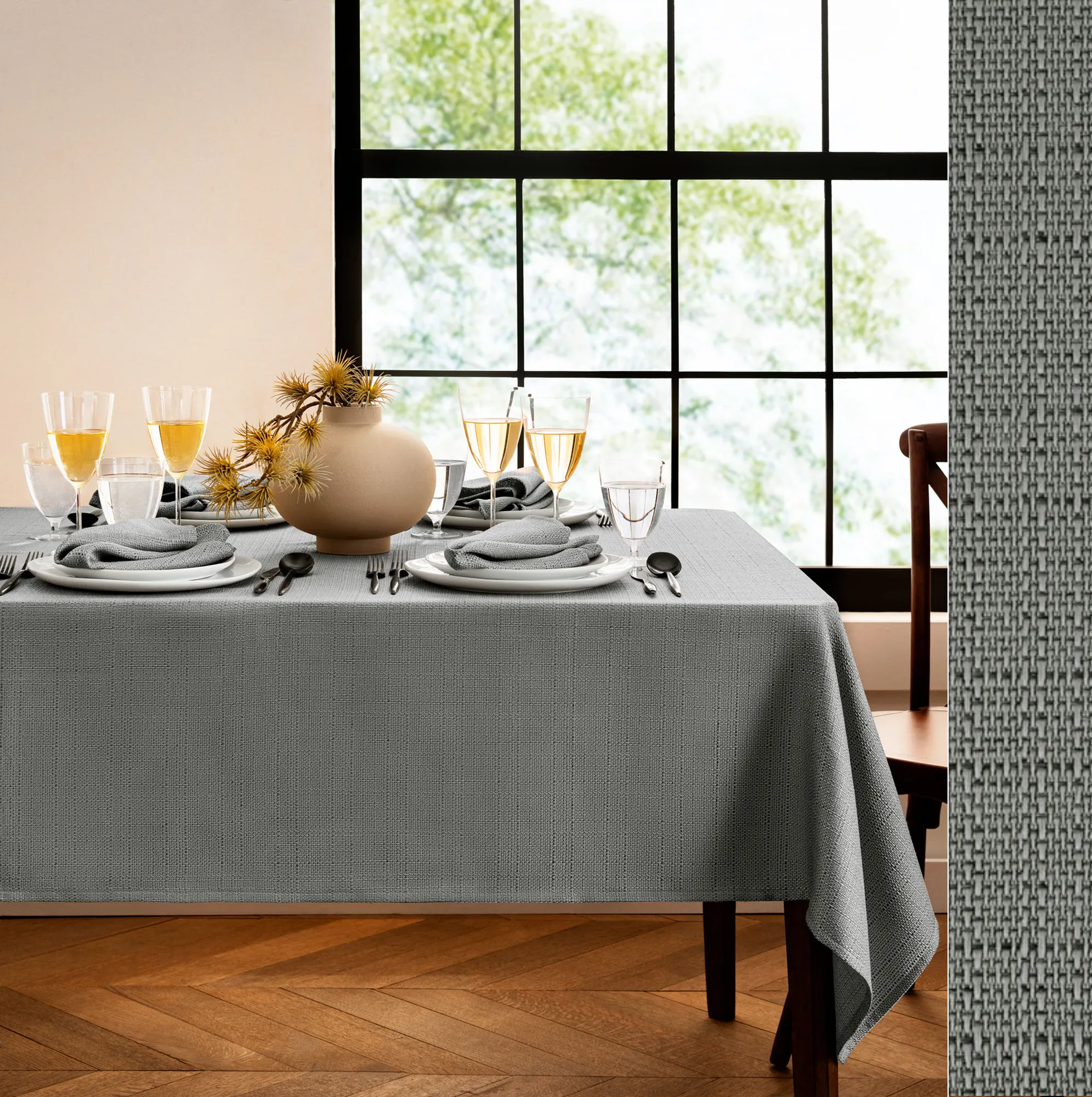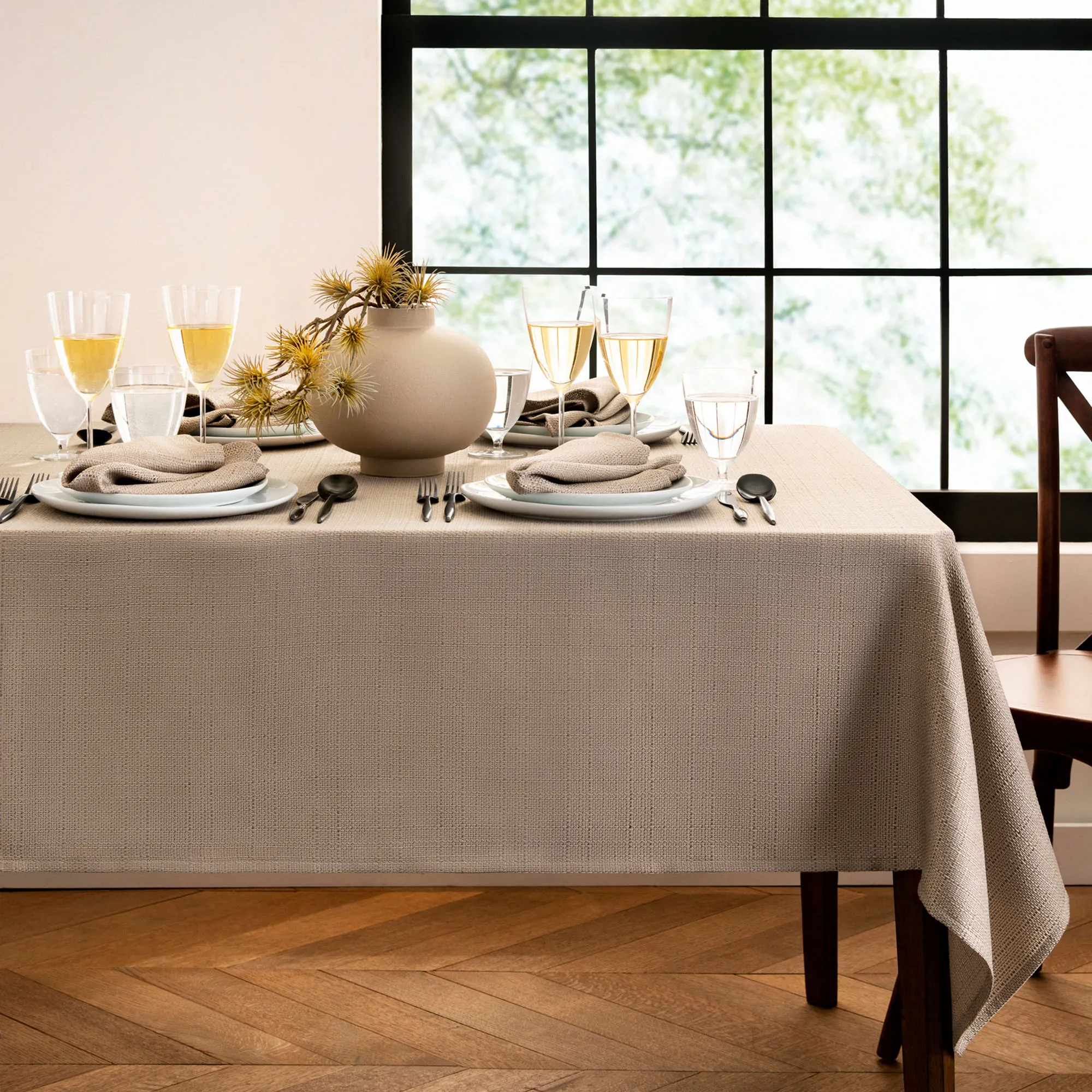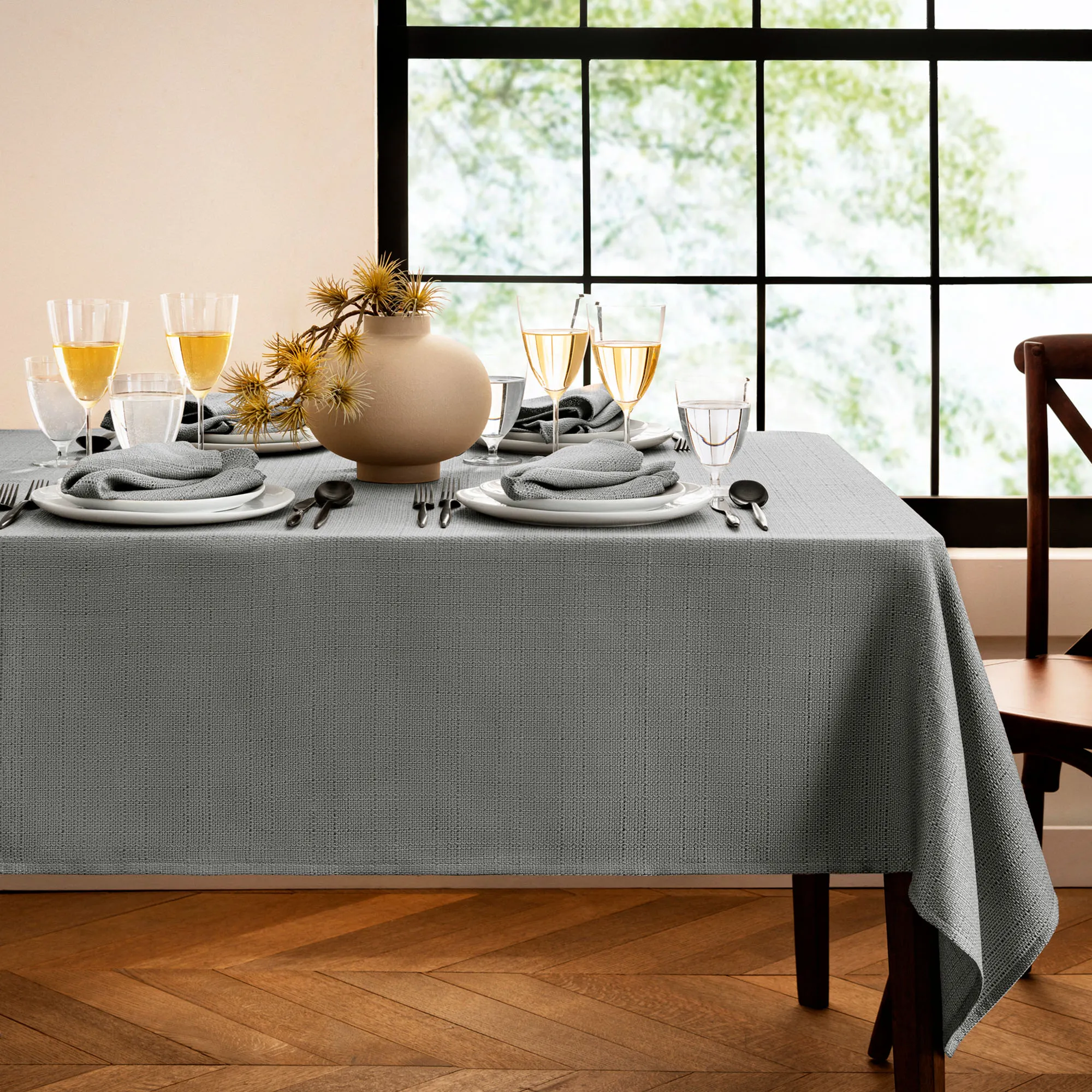 Marlie Stain Resistant Textured Rectangle Tablecloth and Table Linens
