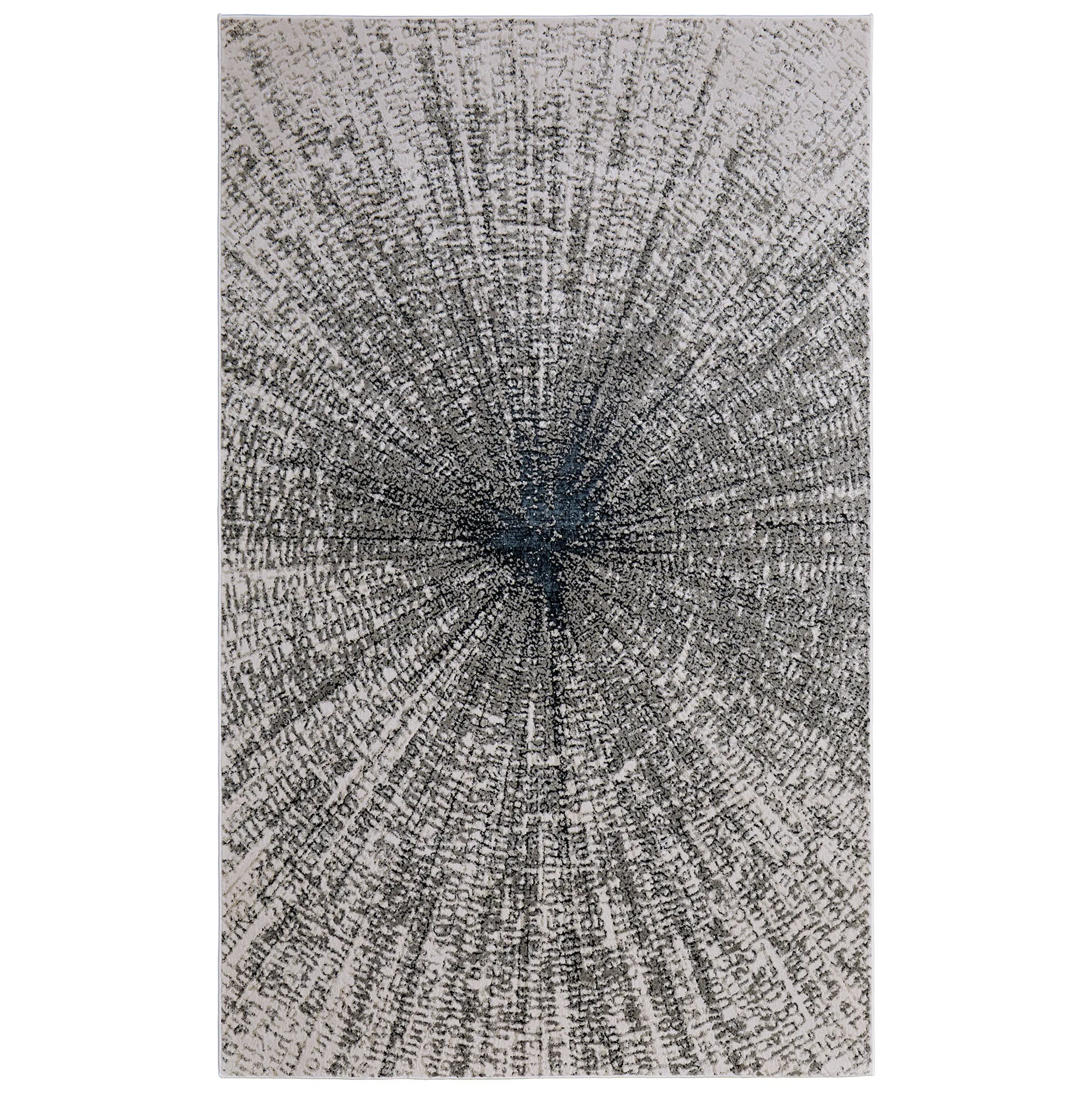Marshall Ivory and Gray Radiating Burst Design Modern Abstract Area Rugs